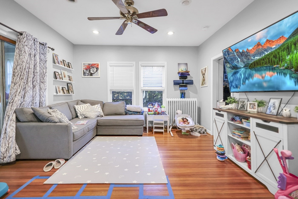 spacious 3 family in desirable Library area. This home is close to downtown Methuen, Highways and Salem NH. The property features a first floor unit with Hardwood floors, large main bedroom and an additional smaller bedroom or office. Second floor unit has 2 bedrooms a large eat in kitchen and a living room. Third unit is a 1 bedroom with vinyl plank living room and eat in Kitchen. Recent updates include 3 newer heating systems by gas and recessed lighting in the apartments.