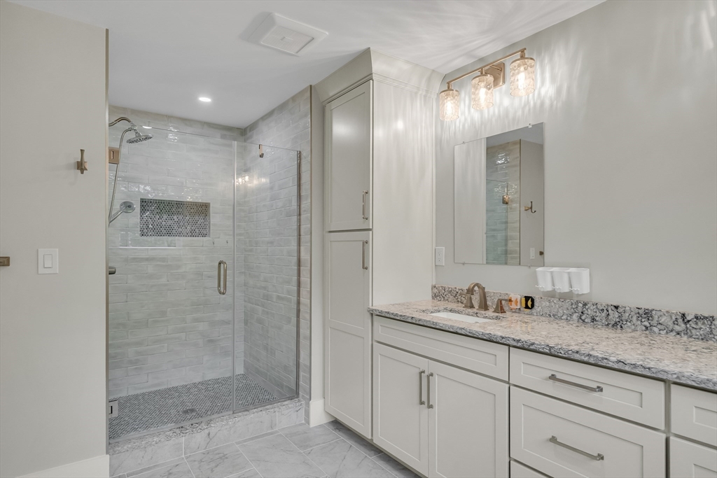 48 Perry Road in Barnard Hill Estates! This stunning Craftsman-inspired colonial sits on over an acre of land, perfectly positioned on one of the most desirable cul-de-sac lots in the community. The exterior offers exceptional outdoor living with deck, complemented by beautifully designed professional landscaping. the open-concept main level is designed to impress. The chef’s kitchen features an oversized quartz island, stainless steel appliances, and an abundance of natural light. The great room showcases a gas fireplace and custom built-ins, with a sun-filled sitting room just off to the side. A formal dining room with wainscoting and a private office complete the first floor. The first floor primary suite is truly exceptional, offering walk-in closets. Upstairs secondary bedrooms has its own great size en-suite bath and two additional good size bedroom. The fully finished lower level extends the living space with a recreation area, gym, and an additional full bathroom.