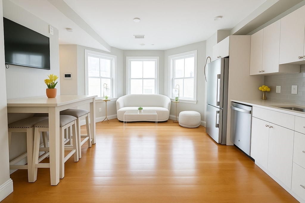 One Bedroom Townhouse in the Heart of East Boston. Welcome to your quintessential Bostonian Brownstone, an exceptional 1 bedroom, 1 bath Townhouse offering 3 levels of living space making it feel like a true home. Built from the ground up wi/ energy efficiency & modern comfort in mind, this home features stainless steel appliances, security features, & stylish custom finishes throughout. The sun-drenched kitchen is perfect for both cooking & entertaining, flowing seamlessly into the cozy living space. You'll love the in-unit laundry, generous closets, custom built-ins, spa-inspired bathroom with a deep soaking tub, & designer blinds that add both function & flair. Add a roof deck w/rights or enjoy the common outdoor patio that evokes the charm of a hidden retreat in Italy. Located just minutes from the MBTA Blue Line, Logan Airport, East Boston’s beloved parks, local pubs, dog parks, & vibrant mom & pop eateries. This is city living at its best w/ growth & opportunity around