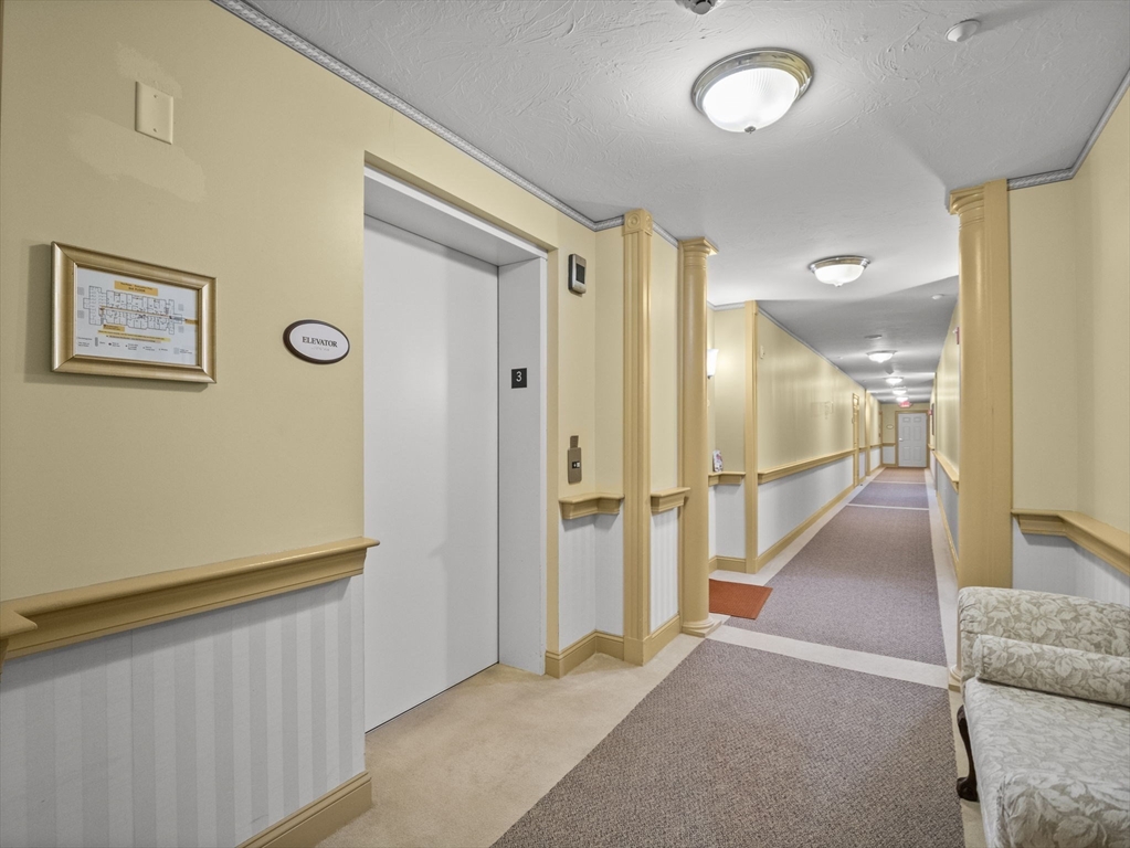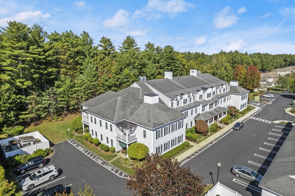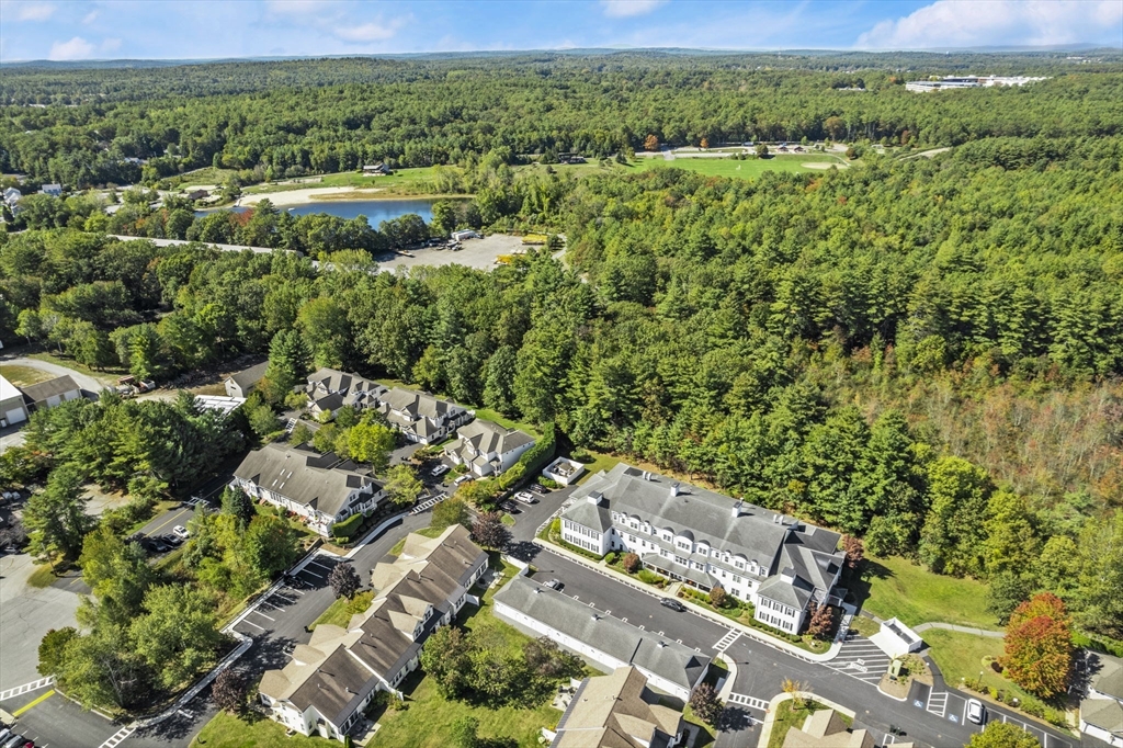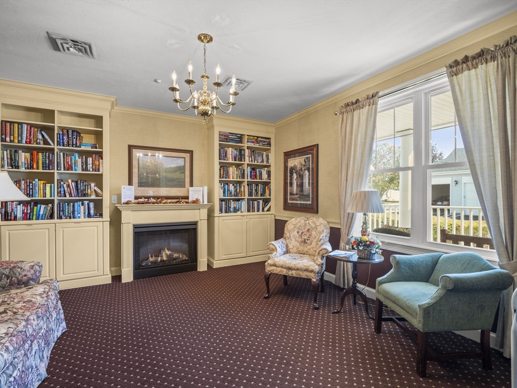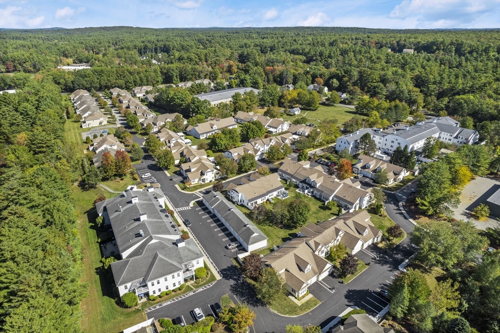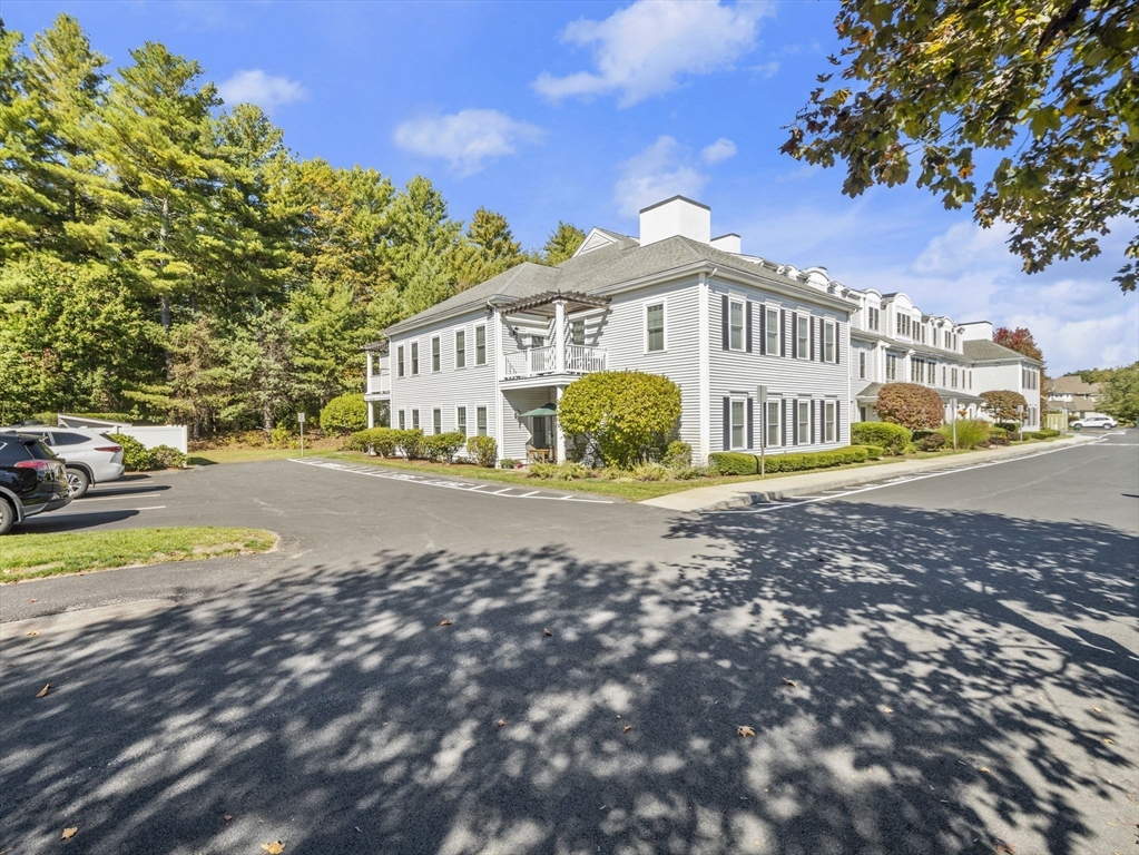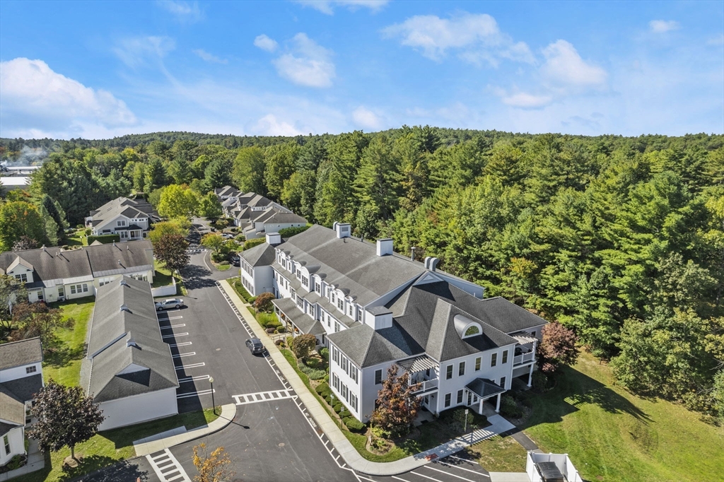 Welcome to the PINES AT ROBBINS BROOK a 55+ community in a peaceful, scenic country setting. You will feel safe in a secure, handicap accessible building, with an elevator for easy access. There is a common area library/sitting room, a large community room with a kitchen & a furnished outdoor patio for parties and a beautiful front porch. Nearby is The Bruce Freeman Rail Trail with a 1/4 mile walk to NARA Park for summer concerts, picnics and swimming, plus Quail Ridge CC (golf, pickle ball, pool). Just two miles away is Butter Brook Golf Club & many shops and restaurants. Enjoy One-level living in this EAST-FACING home. The pristine kitchen has Corian Counters and is fully applianced w/maple cabinets. The unit bosts a large bright dining - living room open floor plan, There is a large master bedroom suite with a large walk in closet & a handicap accessible bathroom with a walk-in shower. An ample sized Bedroom 2 for a guest, hobby, or office with an adjacent 1/2 bath. MOVE IN READY