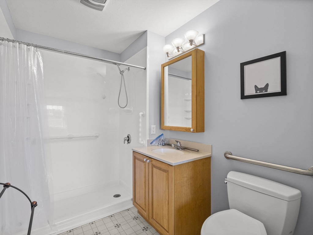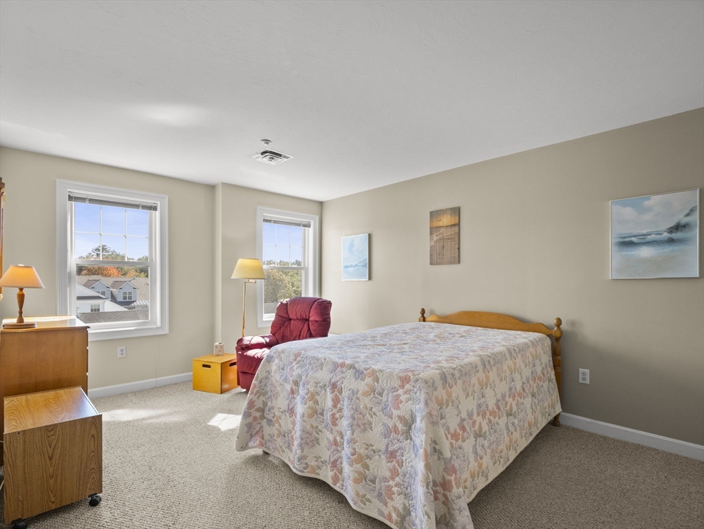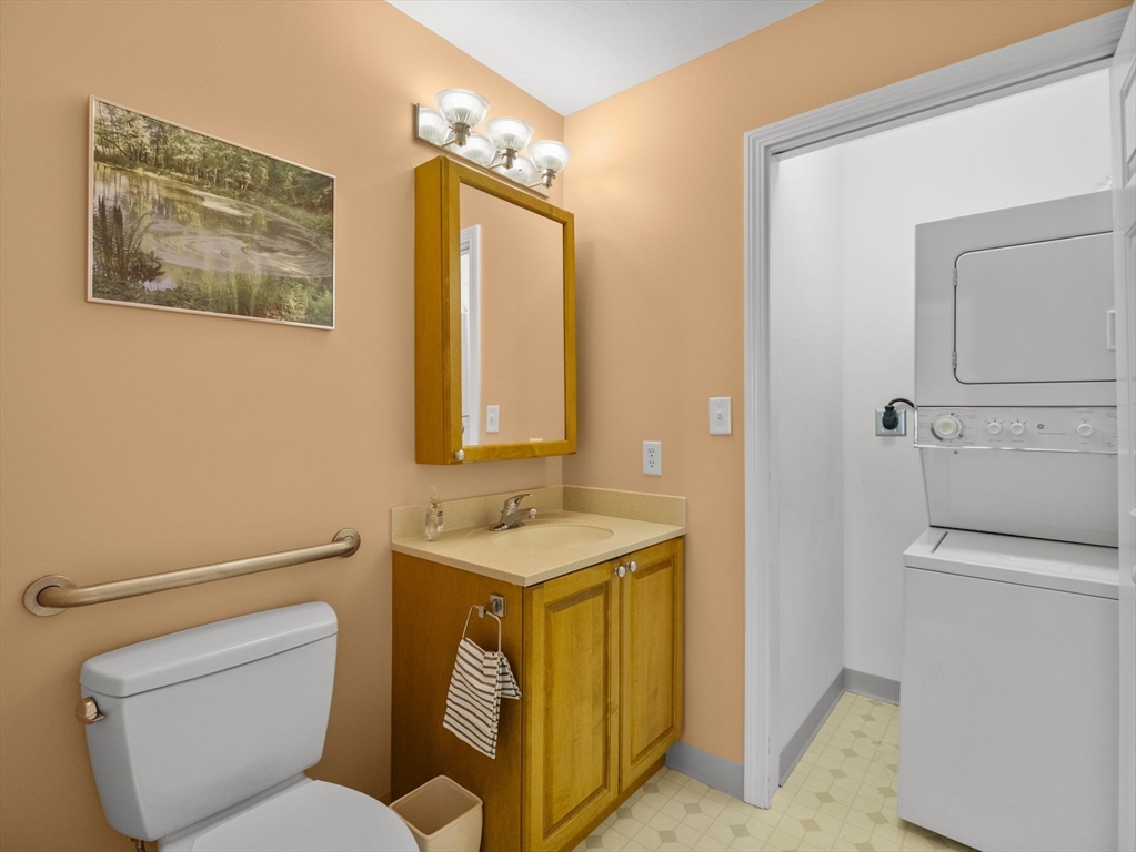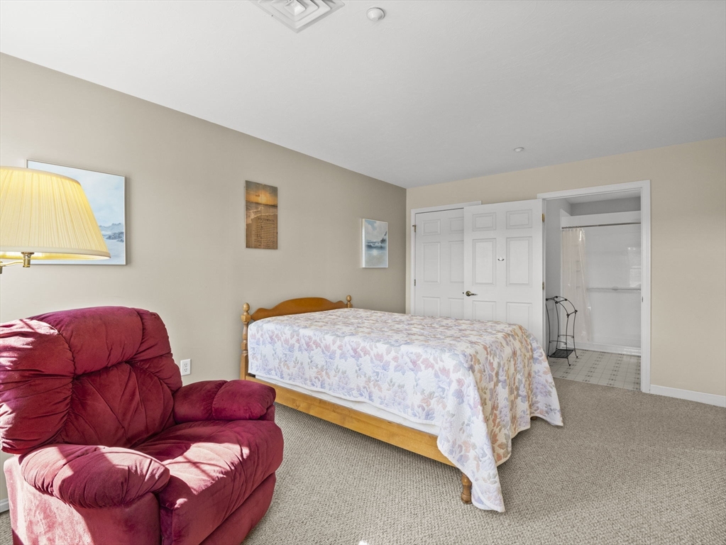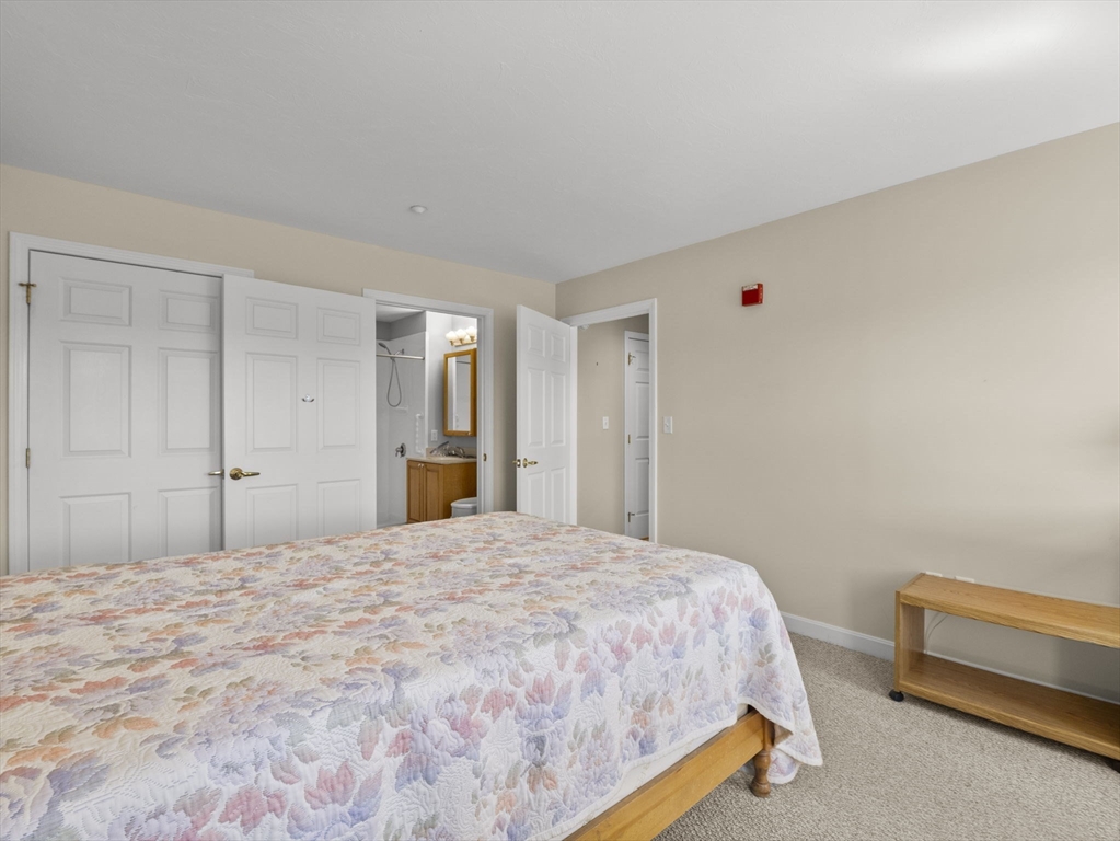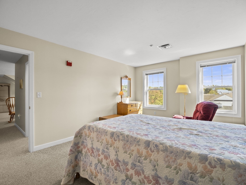 Welcome to the PINES AT ROBBINS BROOK a 55+ community in a peaceful, scenic country setting. You will feel safe in a secure, handicap accessible building, with an elevator for easy access. There is a common area library/sitting room, a large community room with a kitchen & a furnished outdoor patio for parties and a beautiful front porch. Nearby is The Bruce Freeman Rail Trail with a 1/4 mile walk to NARA Park for summer concerts, picnics and swimming, plus Quail Ridge CC (golf, pickle ball, pool). Just two miles away is Butter Brook Golf Club & many shops and restaurants. Enjoy One-level living in this EAST-FACING home. The pristine kitchen has Corian Counters and is fully applianced w/maple cabinets. The unit bosts a large bright dining - living room open floor plan, There is a large master bedroom suite with a large walk in closet & a handicap accessible bathroom with a walk-in shower. An ample sized Bedroom 2 for a guest, hobby, or office with an adjacent 1/2 bath. MOVE IN READY