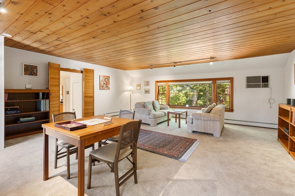 Set on more than a third acre, this 3,000+ sq ft ranch in the heart of Jason Heights is a rare offering. This 4 bedroom, 2.5 bath home offers plenty of space – both inside and out – and the convenience of one-level living. This sunny home features an open floor plan and inviting details: living room with working fireplace and picture window, dining room with skylights and access to the screen porch, and a kitchen with plenty of counter space and cabinets. The primary bedroom suite has a sitting room and half bath, and is on the opposite side of the house from the other 3 bedrooms. The finished basement has a family room with fireplace, large bath with soaking tub, laundry room, even a sauna! Outdoor living is ideal: the fenced in backyard has a beautifully maintained inground pool, patio, screen porch, and deck. Features include 2-car garage, solar panels, and central air. Stony Brook Rd is a private way, and this home is just a block from Menotomy Rocks Park. Truly a unique home!