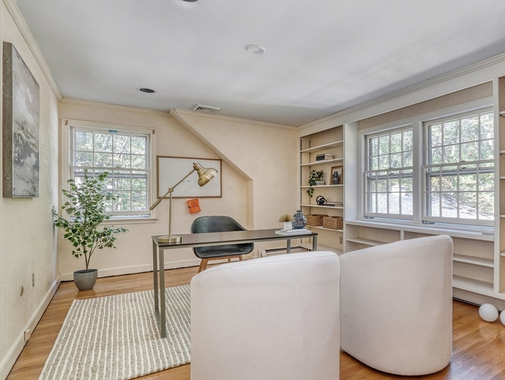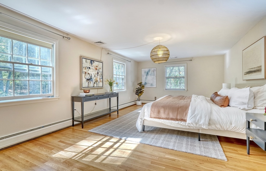 Nestled in a quiet neighborhood near Walden Pond, find this five bedroom gem with ample space and pleasing updates! This house offers so much to love: Bright, spacious bedrooms, office options, entertaining and casual spaces, tons of storage, and even a detached additional two car garage/shop! The interior flow is ideal, centering the kitchen without losing the formality of a large living room and separate dining room. The sunroom just off the kitchen -- with its slider out to the back deck, skylights, and private views -- is where you want to be in all seasons. Upstairs, there's a half-flight of separation between four bedrooms and a bath, and the primary suite with its own office. From here, take your pick of miles trails through Lincoln's conservation land, including a short stroll to Walden Pond. Lincoln's newly rebuilt preK-8 campus is only a few miles away, as is the commuter rail station, Concord Center, all with super-easy access to Rte. 2.