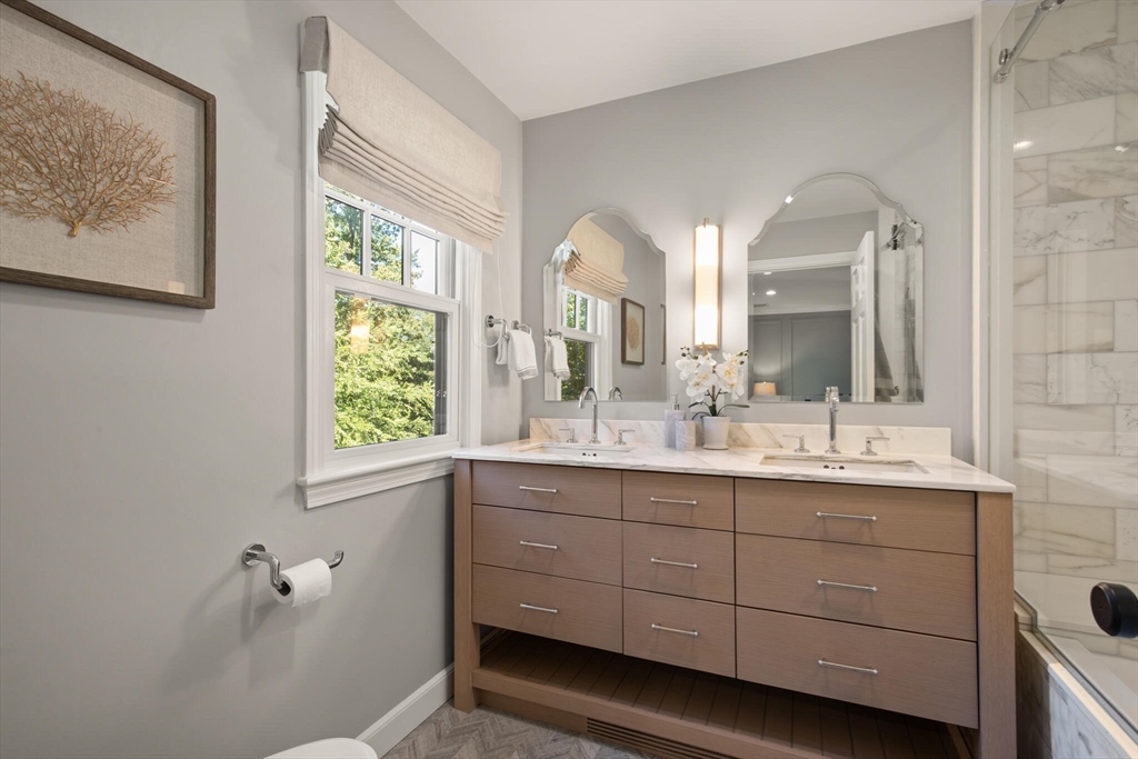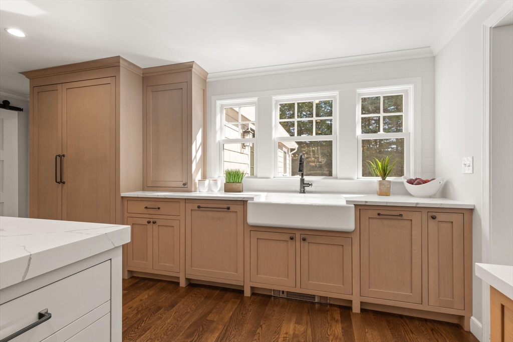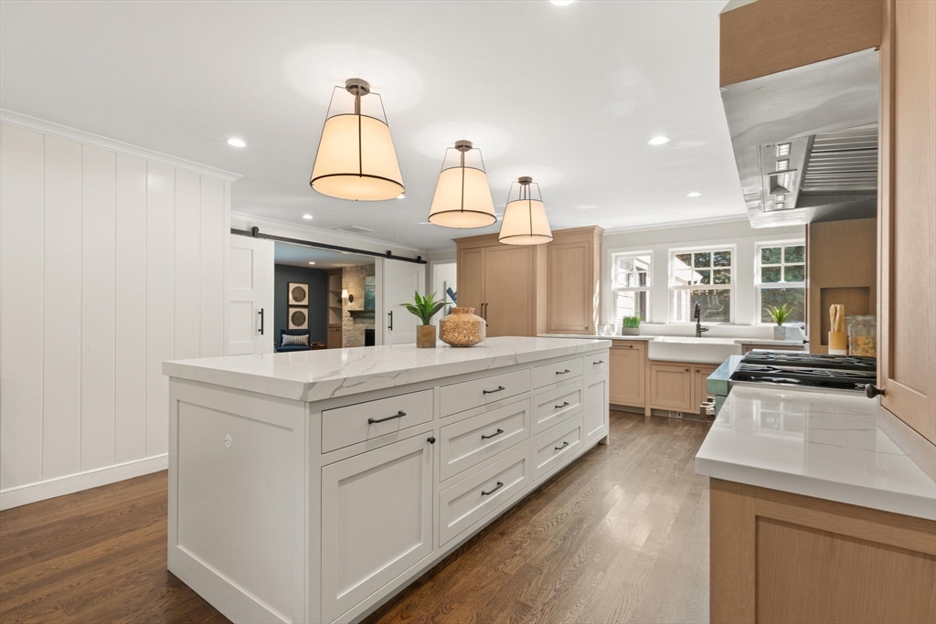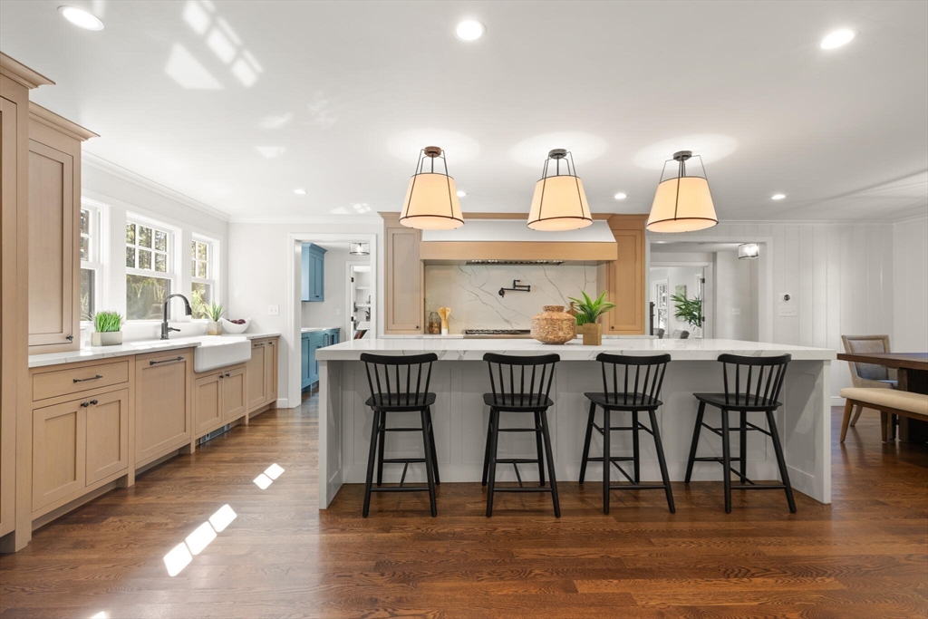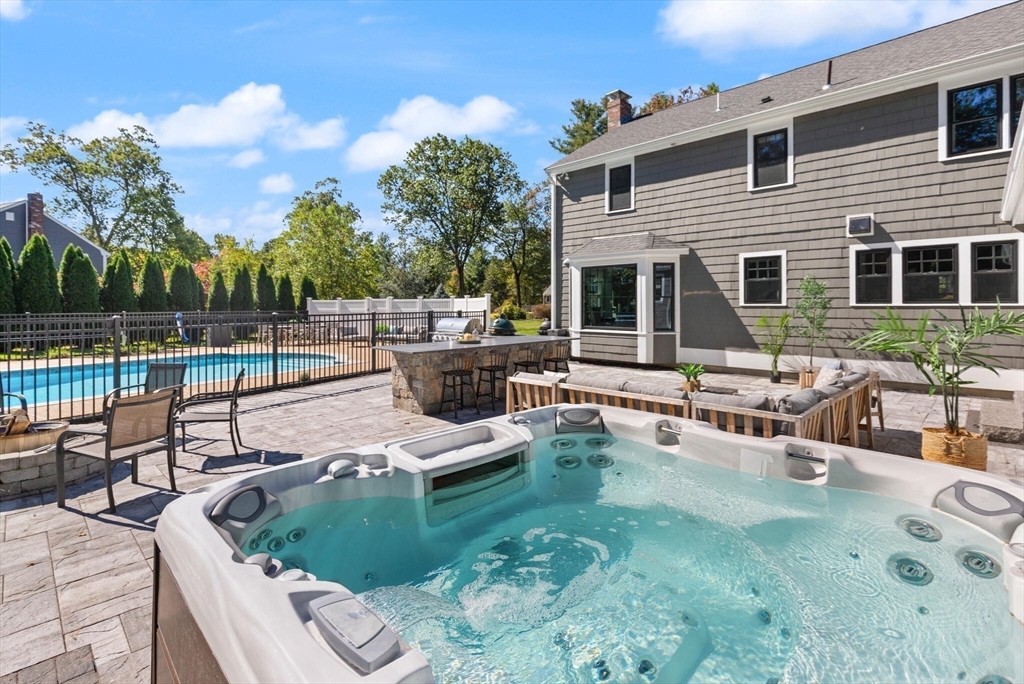 Don't mistake this home for a "Classic Colonial"; this property has been completely transformed inside and out through a meticulous and custom renovation. The result is a stunning residence featuring warm woods, crisp whites, and coastal hues. The entire property feels like a Shangri-La, set in a peaceful and welcoming neighborhood. Key features include a one-acre parcel, four-bay garage with EV charger, 5 bedrooms on the upper level, along with a guest suite on the first floor that includes a full bath and a walk-in closet. You’ll also find 2 laundry rooms, 2 walk-in pantries, 2 dishwashers, and a large mudroom, among many other incredible amenities. Entertain friends and family in your own paradise, complete with an inground heated swimming pool, hot tub, fire pit, outdoor kitchen plumbed with a 36" gas grill and a built-in Big Green Egg! Plus, you'll have plenty of space for outdoor activities in your expansive yard! There's nothing to do here but move right in. A remarkable home!