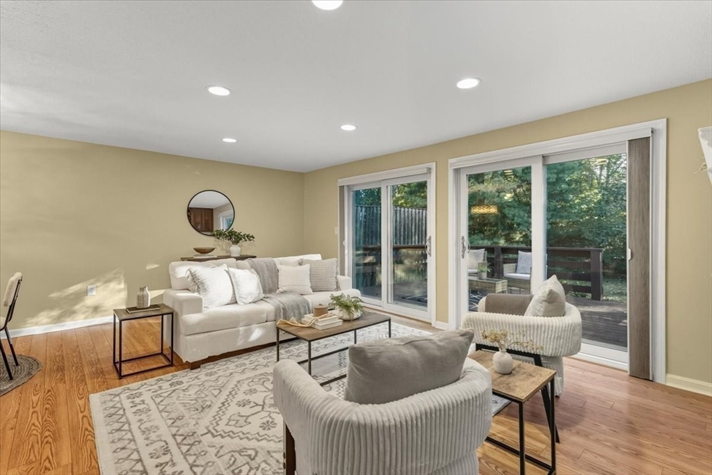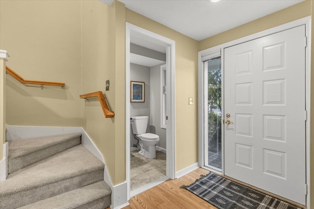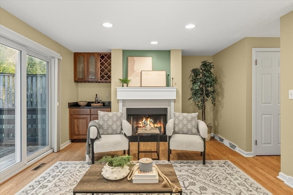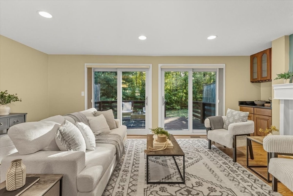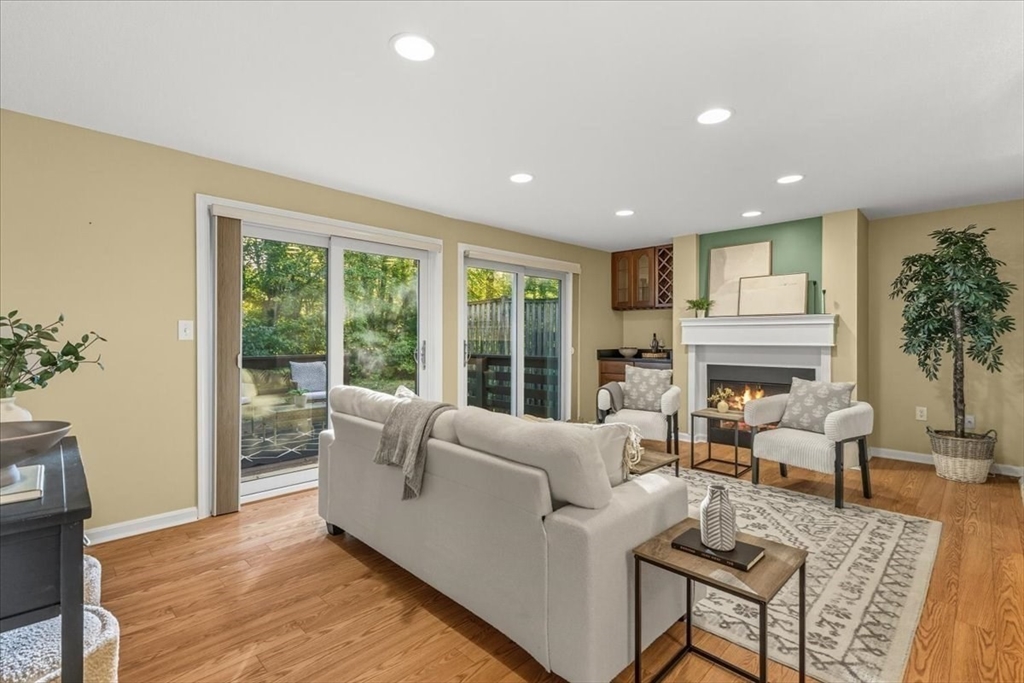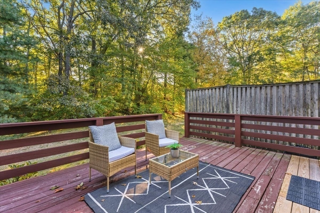 Nicely updated and sunny townhome features many extras including beautiful flooring, fireplace, dry bar, upgraded kitchen, custom shutters, closet systems, and more! Eliminate stress knowing your home has several recently replaced big-ticket items: 2024 roof, 2024 siding, 2017 furnace, 2017 air conditioning, 2017 sliders, and 2017 windows! Relax outdoors with the peaceful and coveted view of the woods from your back deck. This home also offers the convenience of a garage, second floor laundry, and a primary bedroom with en-suite bathroom and walk-in closet! Residents can enjoy use of the clubhouse, swimming pool, pickleball courts, and basketball courts in this pet friendly community. Clean and spacious lower level offers the potential for future living quarters. Easy access to route 140 and 495 make commuting a breeze! Open house Saturday Oct 4th from 1-3pm