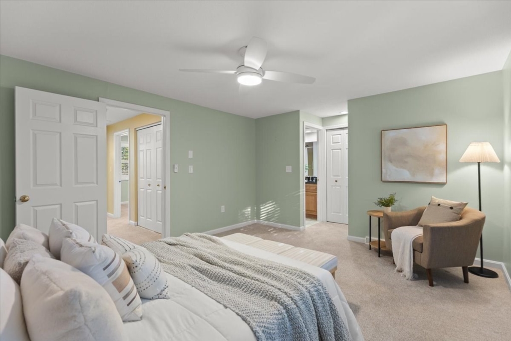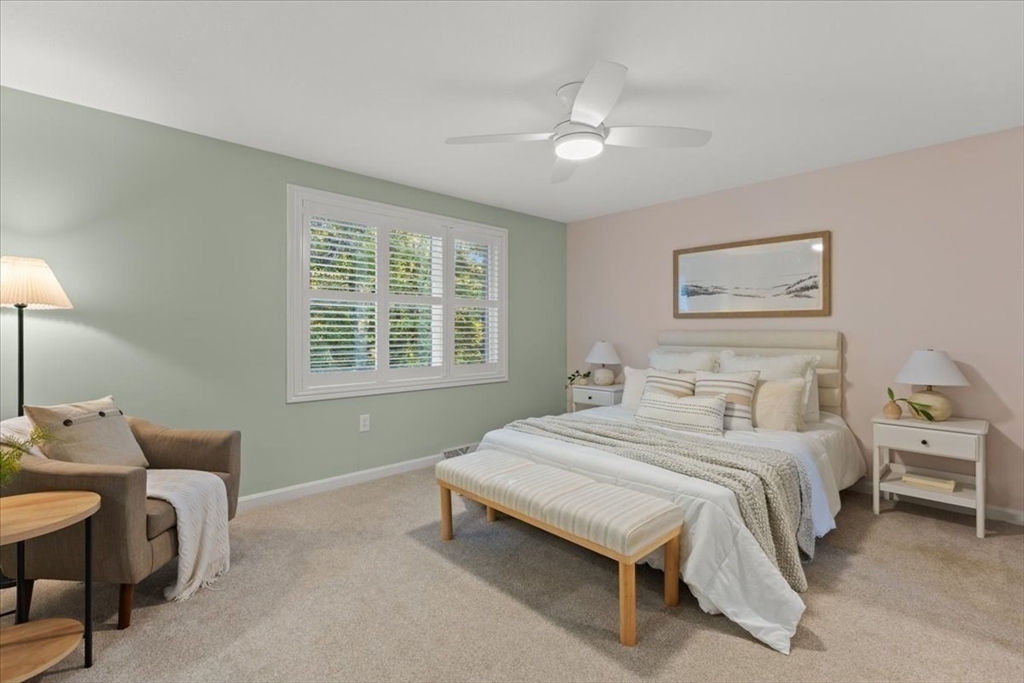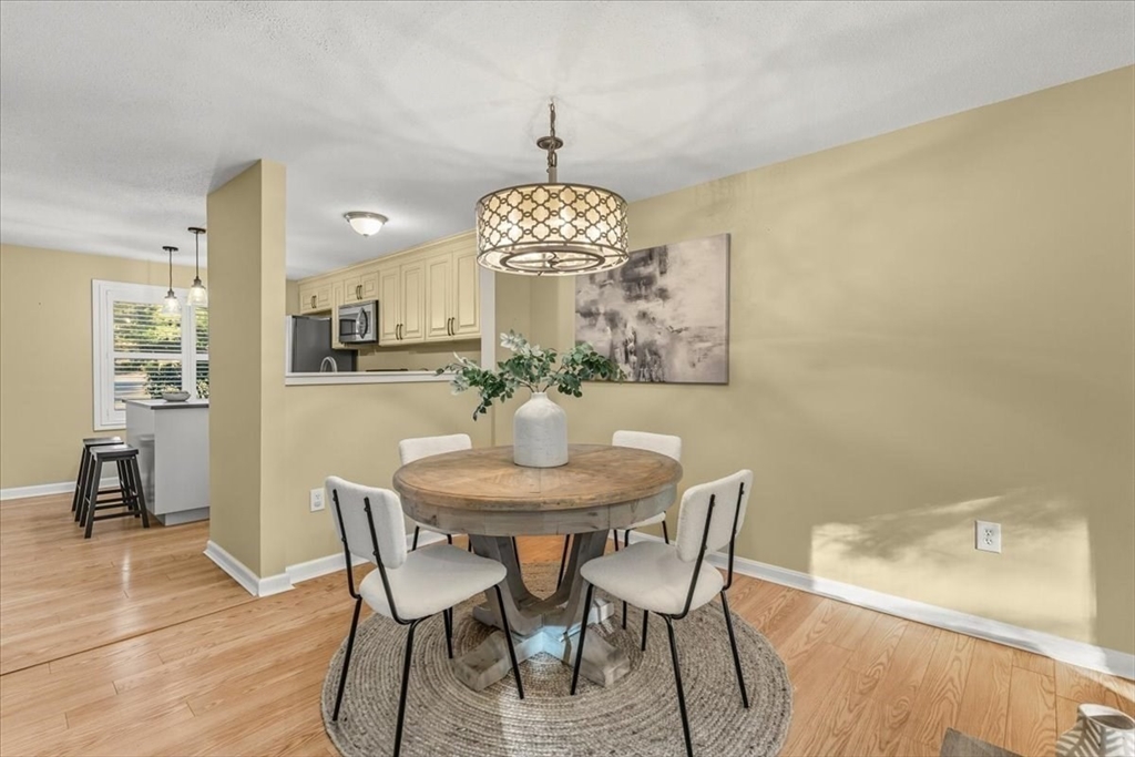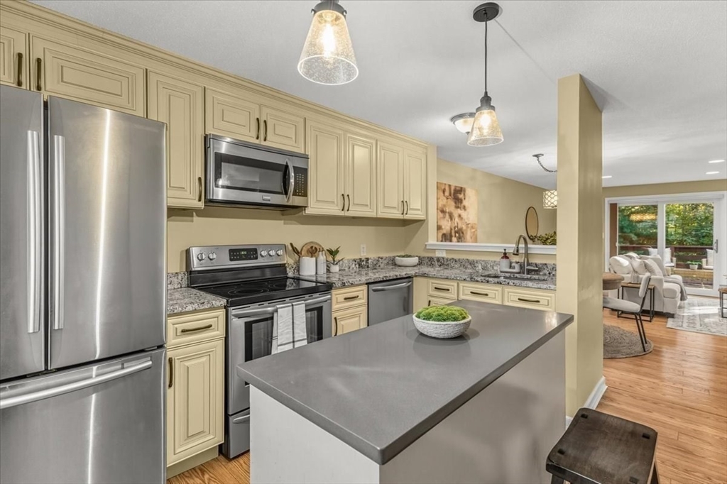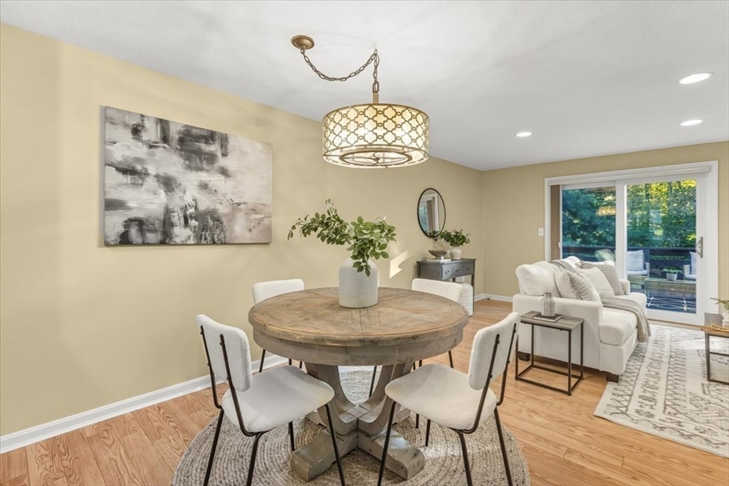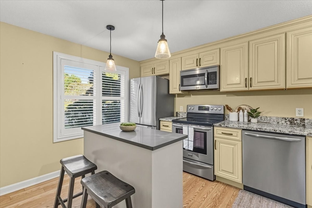 Nicely updated and sunny townhome features many extras including beautiful flooring, fireplace, dry bar, upgraded kitchen, custom shutters, closet systems, and more! Eliminate stress knowing your home has several recently replaced big-ticket items: 2024 roof, 2024 siding, 2017 furnace, 2017 air conditioning, 2017 sliders, and 2017 windows! Relax outdoors with the peaceful and coveted view of the woods from your back deck. This home also offers the convenience of a garage, second floor laundry, and a primary bedroom with en-suite bathroom and walk-in closet! Residents can enjoy use of the clubhouse, swimming pool, pickleball courts, and basketball courts in this pet friendly community. Clean and spacious lower level offers the potential for future living quarters. Easy access to route 140 and 495 make commuting a breeze! Open house Saturday Oct 4th from 1-3pm