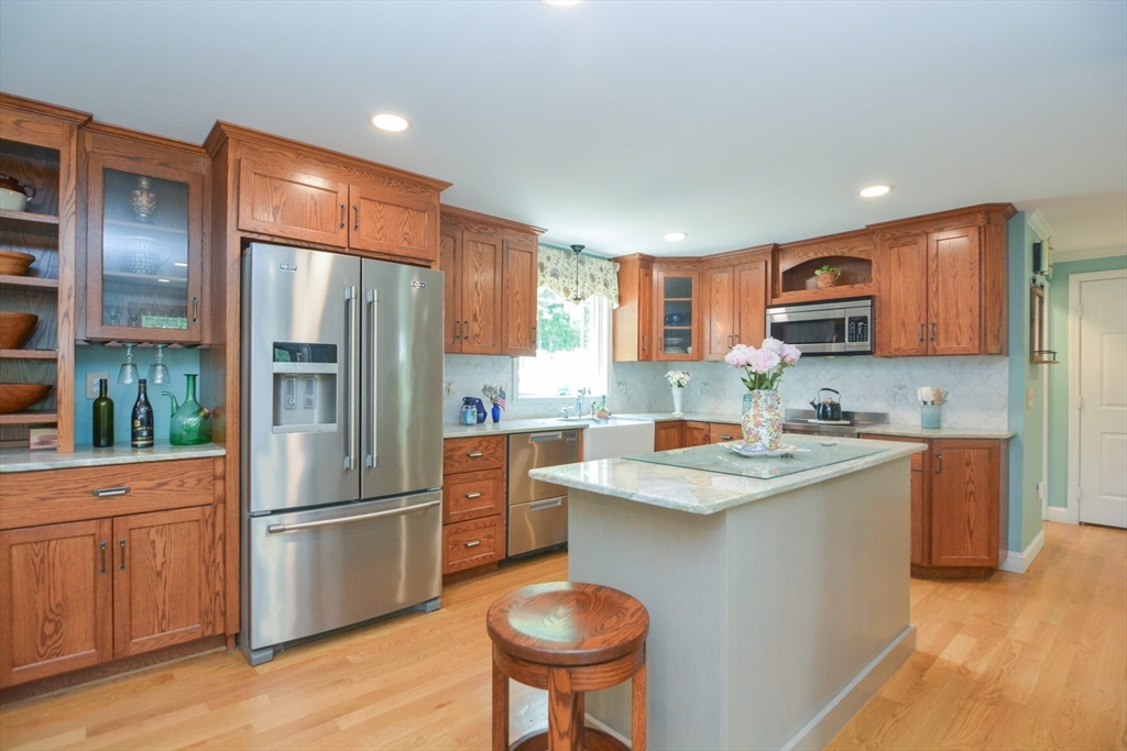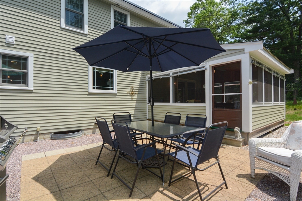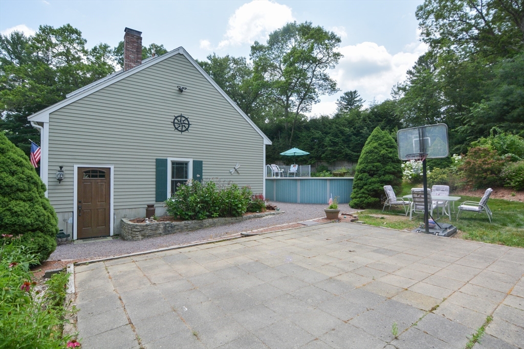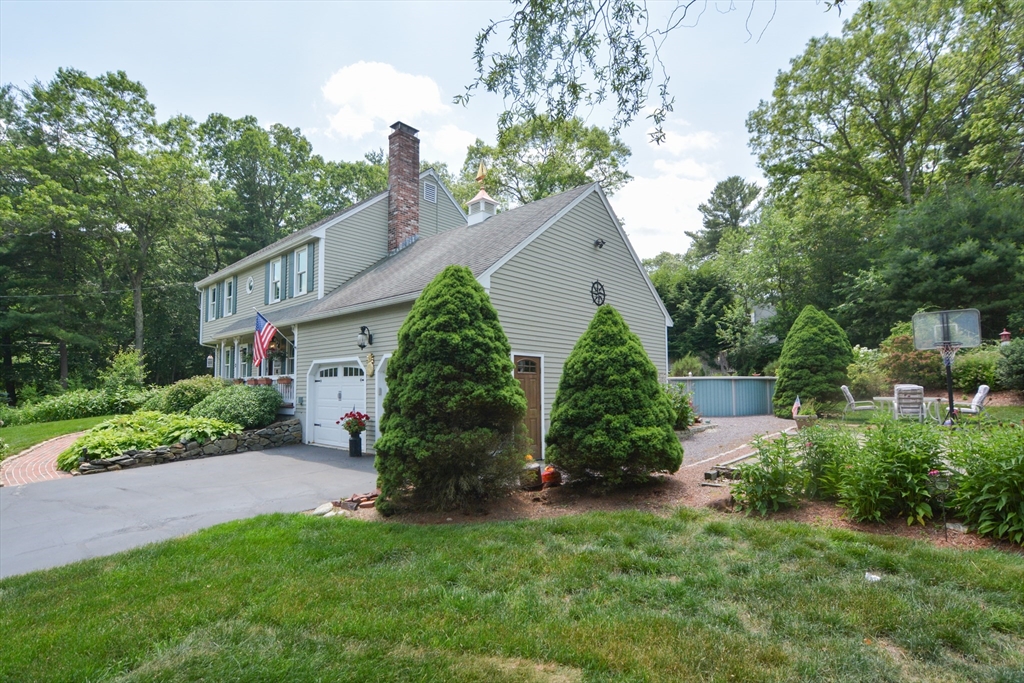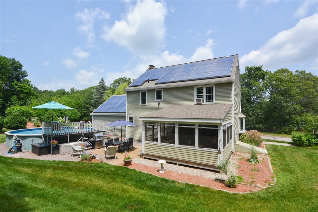 This beautifully maintained WGB-built Colonial has everything you've been looking for! From the brick walkway, granite steps, & charming farmer’s porch, you'll feel right at home. Inside, the spacious 3-bed, 2-bath layout includes a remodeled kitchen with Corian countertops, marble back splash, hardwood floors, & upgraded cabinets—perfect for entertaining. Relax by the fireplace in the cozy family room or host gatherings in the oversized dining room. Enjoy summer fun in the expansive 3-season porch overlooking a professionally landscaped yard complete with an above-ground pool, firepit, basketball court, & shed. Don't forget the amazing finished basement, two-car garage with workshop, EV charger, backup generator, SolarCity panels, leaf filter gutters & Anderson Windows add to the home's impressive features. Located in one of Mendon's most desirable neighborhoods near parks, trails, & top-rated schools, this home blends comfort, style, & energy efficiency—ready for you to move right in
