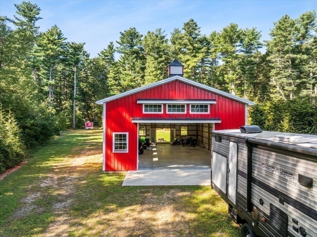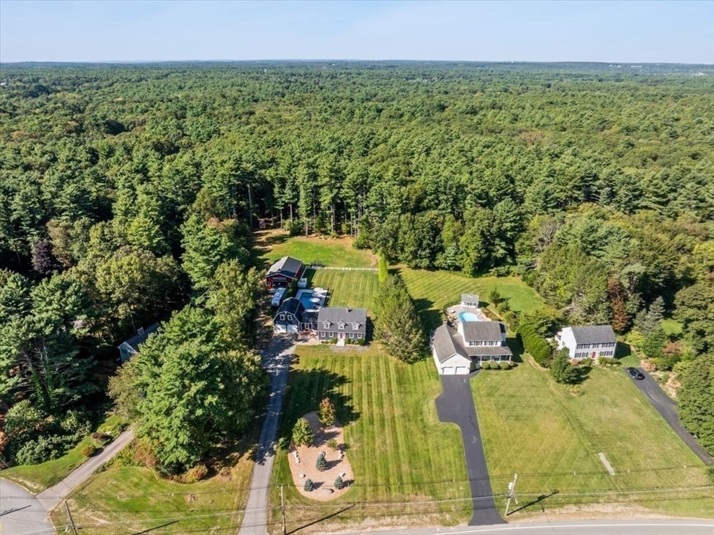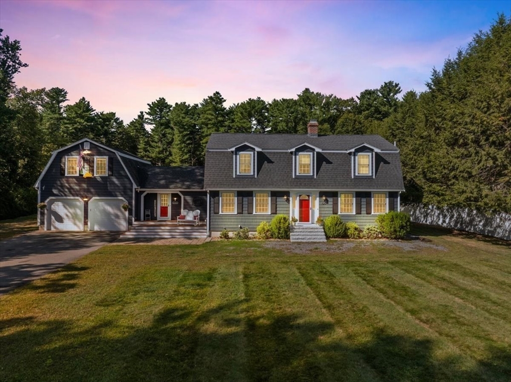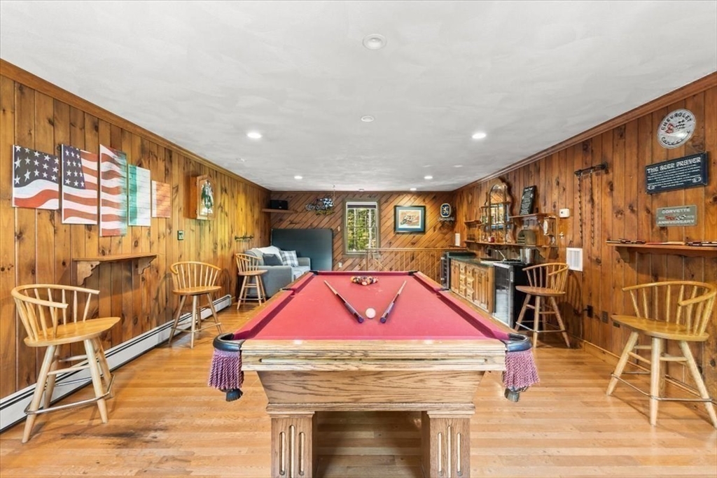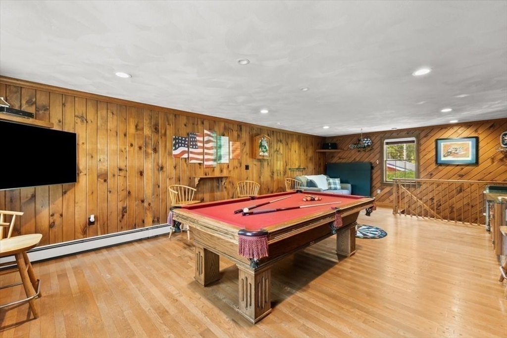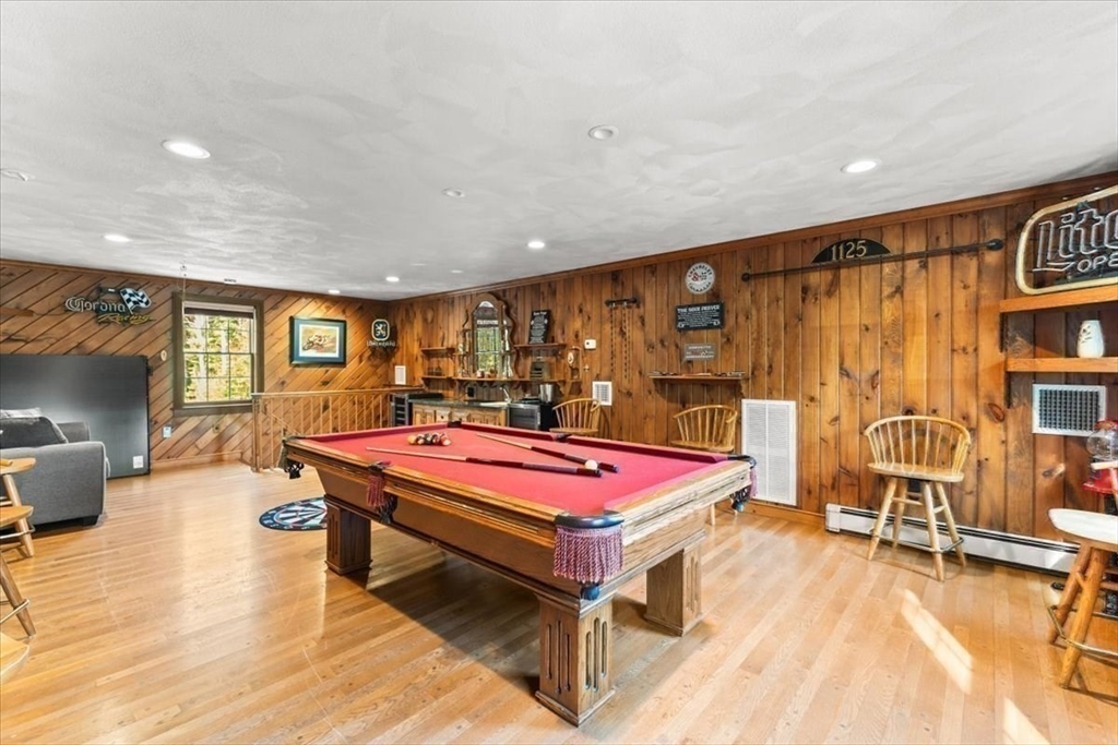 Exceptional 3BR, 2.5BA home on 3+ acres with resort-style amenities. Features include hardwood floors, a front-to-back living room with bow window overlooking manicured grounds, formal dining, and an eat-in kitchen with farm sink, KitchenAid appliances, and rich mahogany island. An oversized mudroom with drop zones and first-floor laundry adds convenience. The primary suite offers two walk-in closets, including a custom dressing room. Spacious secondary bedrooms and an updated guest bath complete the upstairs. Above the garage, a furnished game room with included pool/ping pong table provides the perfect retreat. A 60x30 barn with lean-to offers incredible space for landscapers, hobbyists, or collectors. Over an acre is cleared and landscaped; wooded trails are ideal for ATVs and dirt bikes. The backyard is built for entertaining with a heated saltwater pool, hot tub, expansive patio, & composite deck. Two-car garage, unlimited parking, minutes to commuter rail, shops, and top schools!