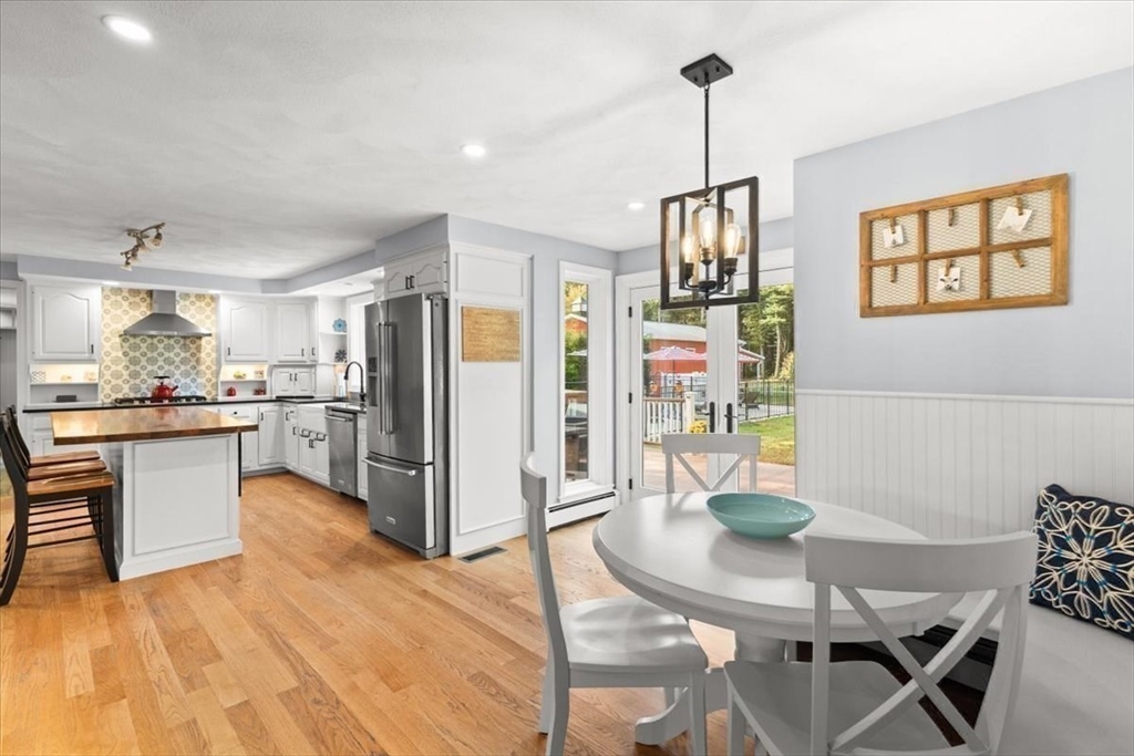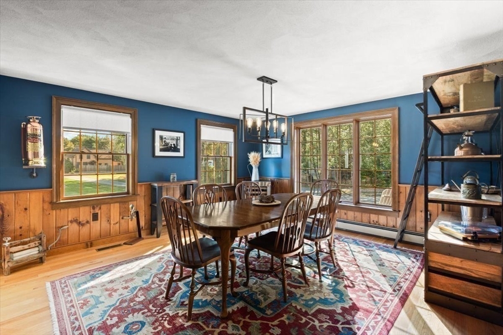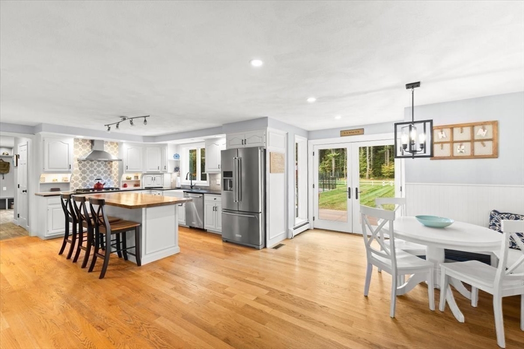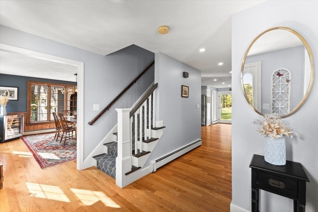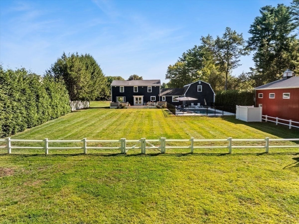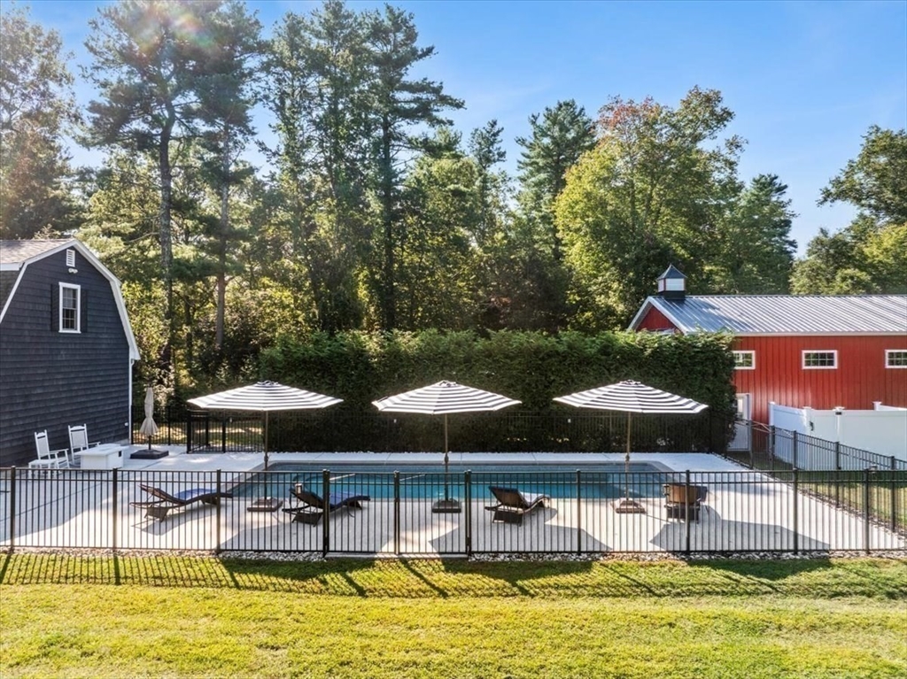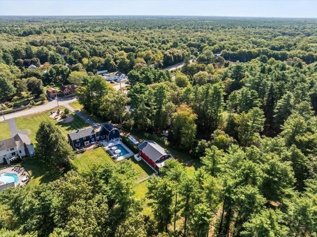 Exceptional 3BR, 2.5BA home on 3+ acres with resort-style amenities. Features include hardwood floors, a front-to-back living room with bow window overlooking manicured grounds, formal dining, and an eat-in kitchen with farm sink, KitchenAid appliances, and rich mahogany island. An oversized mudroom with drop zones and first-floor laundry adds convenience. The primary suite offers two walk-in closets, including a custom dressing room. Spacious secondary bedrooms and an updated guest bath complete the upstairs. Above the garage, a furnished game room with included pool/ping pong table provides the perfect retreat. A 60x30 barn with lean-to offers incredible space for landscapers, hobbyists, or collectors. Over an acre is cleared and landscaped; wooded trails are ideal for ATVs and dirt bikes. The backyard is built for entertaining with a heated saltwater pool, hot tub, expansive patio, & composite deck. Two-car garage, unlimited parking, minutes to commuter rail, shops, and top schools!