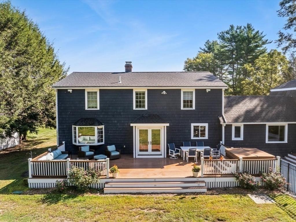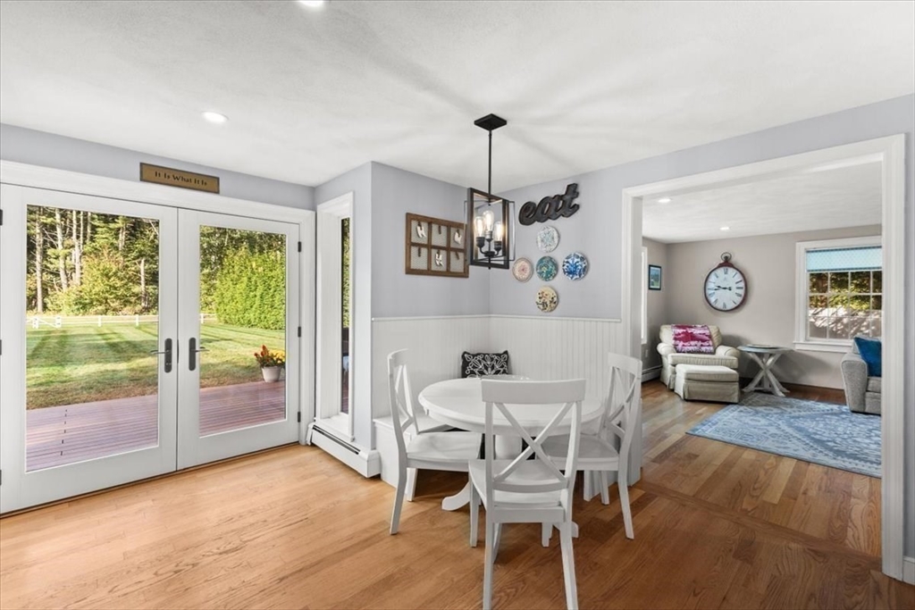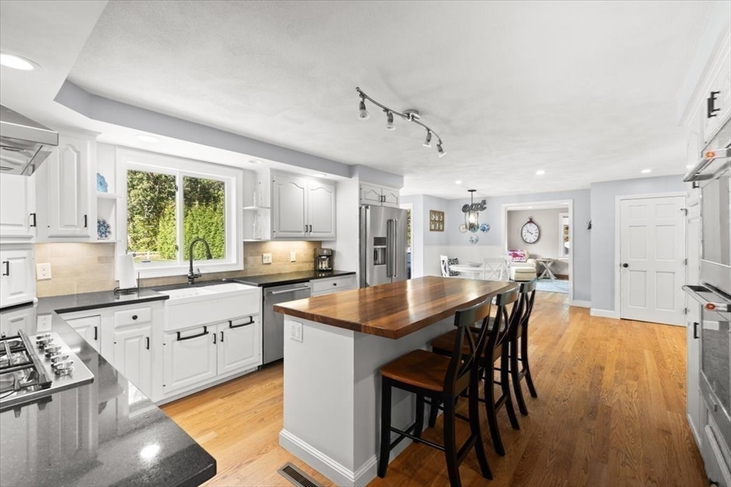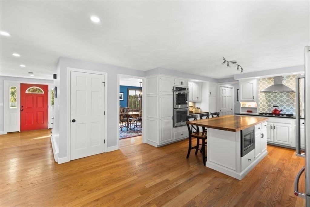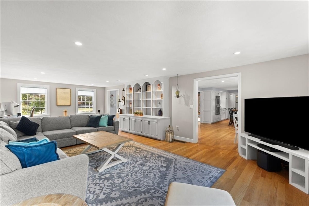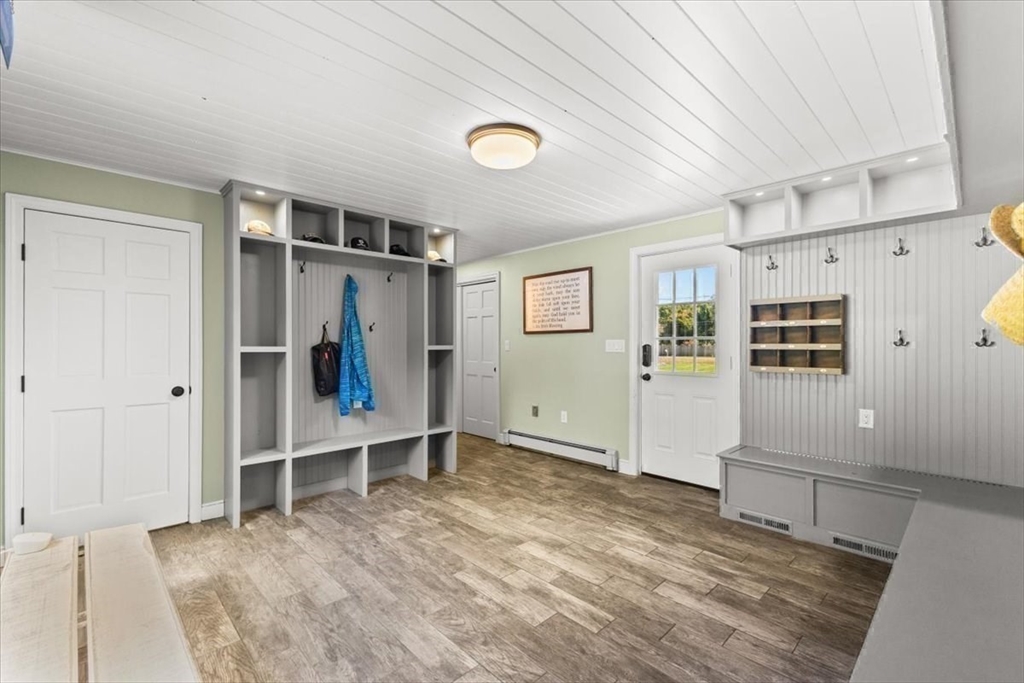 Exceptional 3BR, 2.5BA home on 3+ acres with resort-style amenities. Features include hardwood floors, a front-to-back living room with bow window overlooking manicured grounds, formal dining, and an eat-in kitchen with farm sink, KitchenAid appliances, and rich mahogany island. An oversized mudroom with drop zones and first-floor laundry adds convenience. The primary suite offers two walk-in closets, including a custom dressing room. Spacious secondary bedrooms and an updated guest bath complete the upstairs. Above the garage, a furnished game room with included pool/ping pong table provides the perfect retreat. A 60x30 barn with lean-to offers incredible space for landscapers, hobbyists, or collectors. Over an acre is cleared and landscaped; wooded trails are ideal for ATVs and dirt bikes. The backyard is built for entertaining with a heated saltwater pool, hot tub, expansive patio, & composite deck. Two-car garage, unlimited parking, minutes to commuter rail, shops, and top schools!