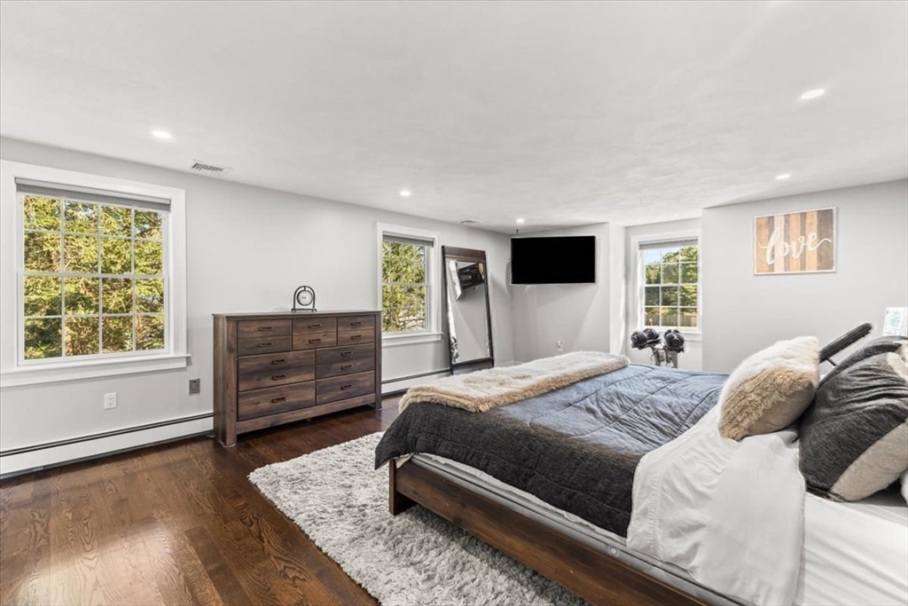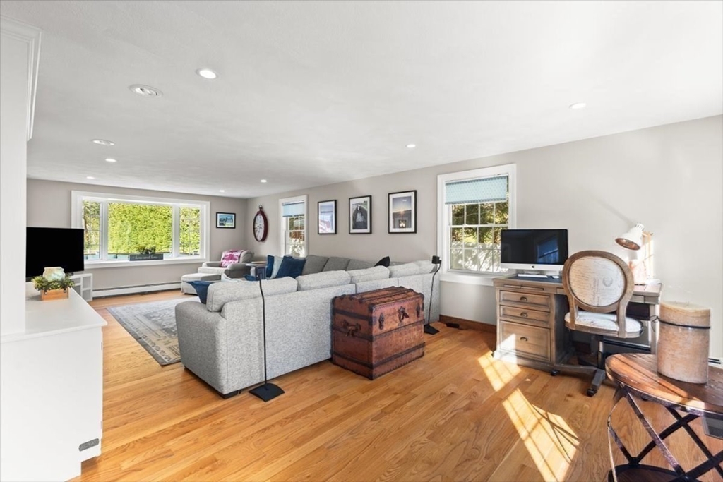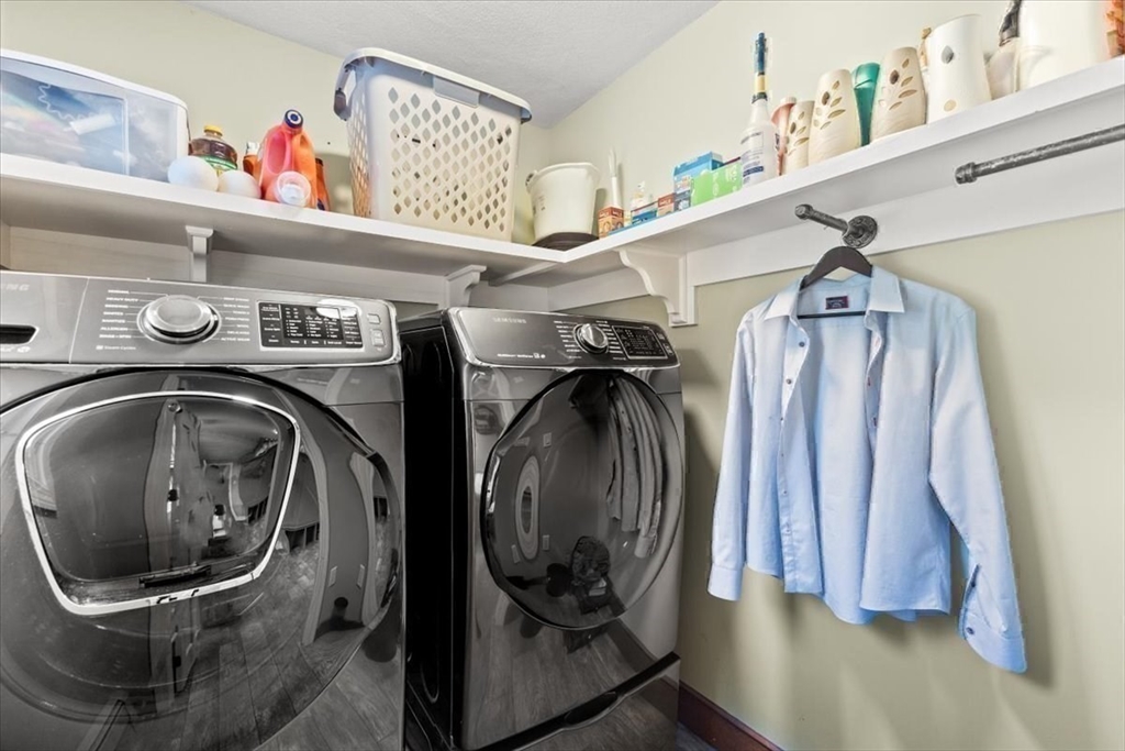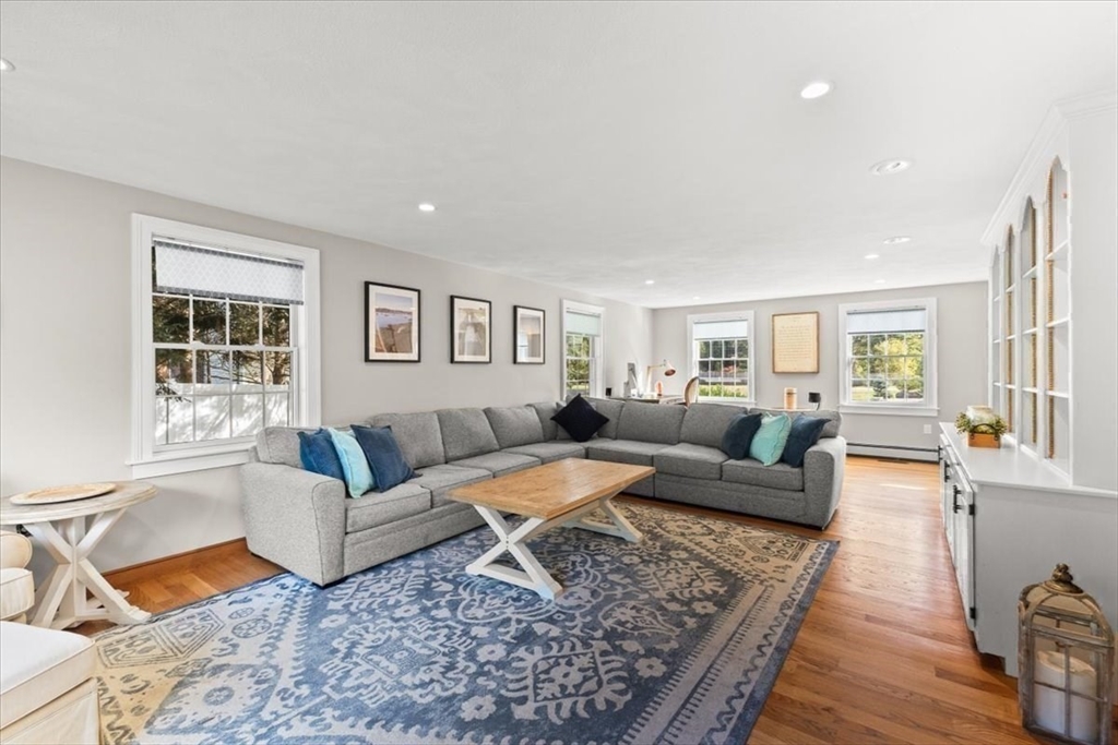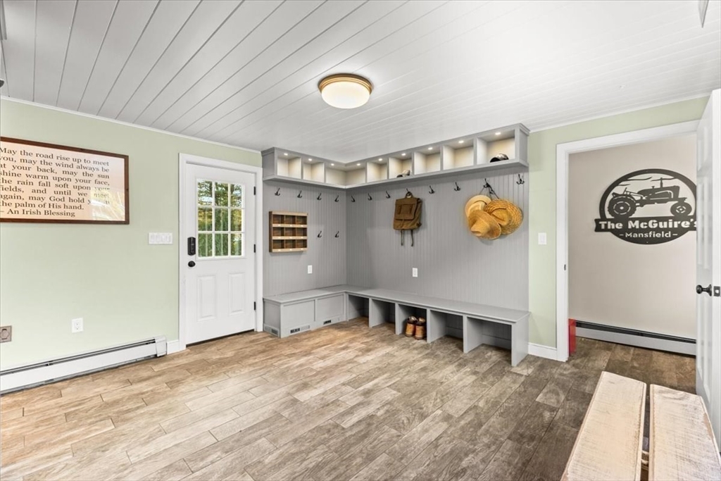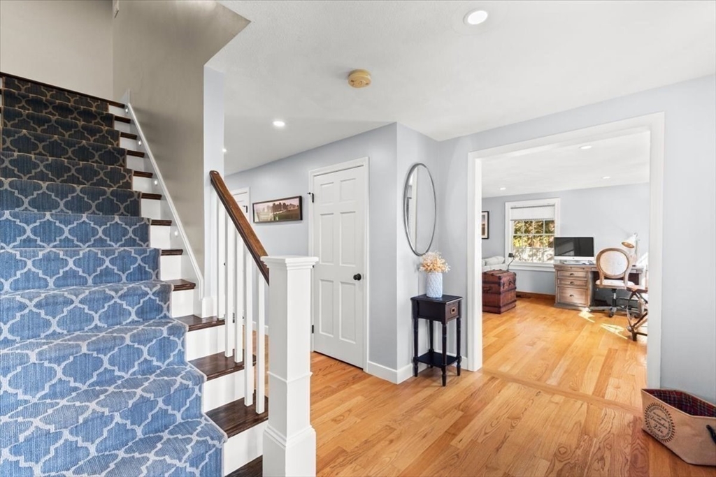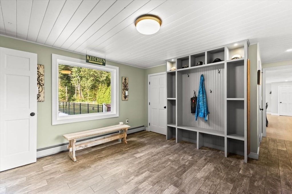 Exceptional 3BR, 2.5BA home on 3+ acres with resort-style amenities. Features include hardwood floors, a front-to-back living room with bow window overlooking manicured grounds, formal dining, and an eat-in kitchen with farm sink, KitchenAid appliances, and rich mahogany island. An oversized mudroom with drop zones and first-floor laundry adds convenience. The primary suite offers two walk-in closets, including a custom dressing room. Spacious secondary bedrooms and an updated guest bath complete the upstairs. Above the garage, a furnished game room with included pool/ping pong table provides the perfect retreat. A 60x30 barn with lean-to offers incredible space for landscapers, hobbyists, or collectors. Over an acre is cleared and landscaped; wooded trails are ideal for ATVs and dirt bikes. The backyard is built for entertaining with a heated saltwater pool, hot tub, expansive patio, & composite deck. Two-car garage, unlimited parking, minutes to commuter rail, shops, and top schools!