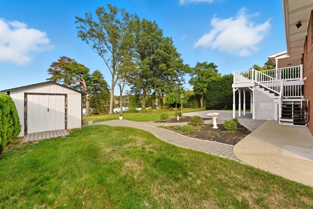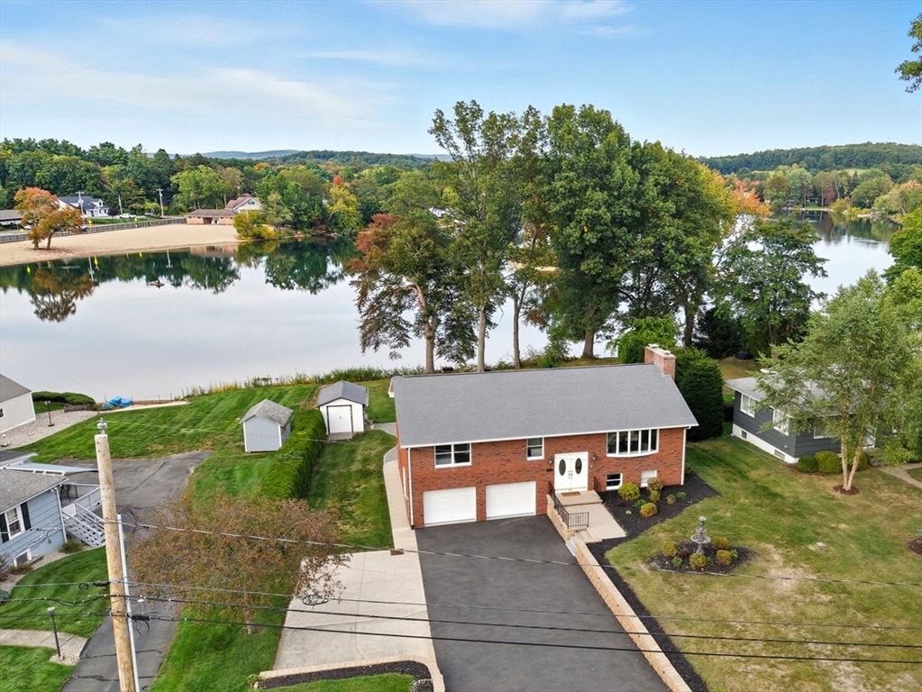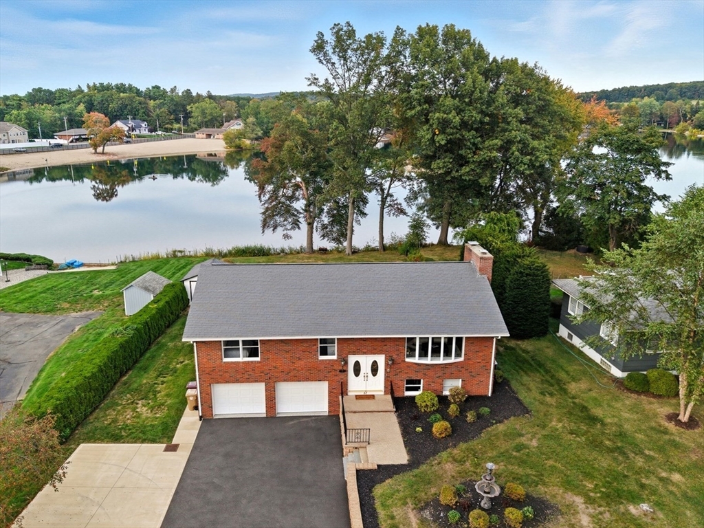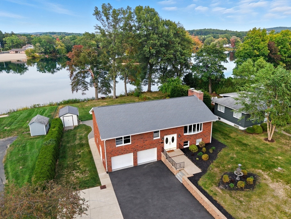 WATERFRONT LIVING AT ITS FINEST! Nestled on one of the most desirable lots along Haviland Pond, this meticulously maintained all-brick home offers year-round serenity & stunning water views. Wake up to the peaceful beauty of the pond from your primary suite, then enjoy your morning coffee on the expansive 12x23 composite deck overlooking the water. Inside, you'll find a beautifully remodeled kitchen, a newer furnace (installed 10/21), and thoughtful updates throughout. The finished walkout basement features a full bath & flexible space—perfect for a guest suite, home gym, or entertaining after a day of swimming, boating, or kayaking. An oversized garage provides ample space for storage or a workshop, complemented by an outdoor storage shed and a beautifully designed paver patio ideal for gatherings. Located just minutes from the Mass Pike & downtown shopping, this home perfectly blends convenient access with the tranquility of lakeside living. Don't miss this rare opportunity!