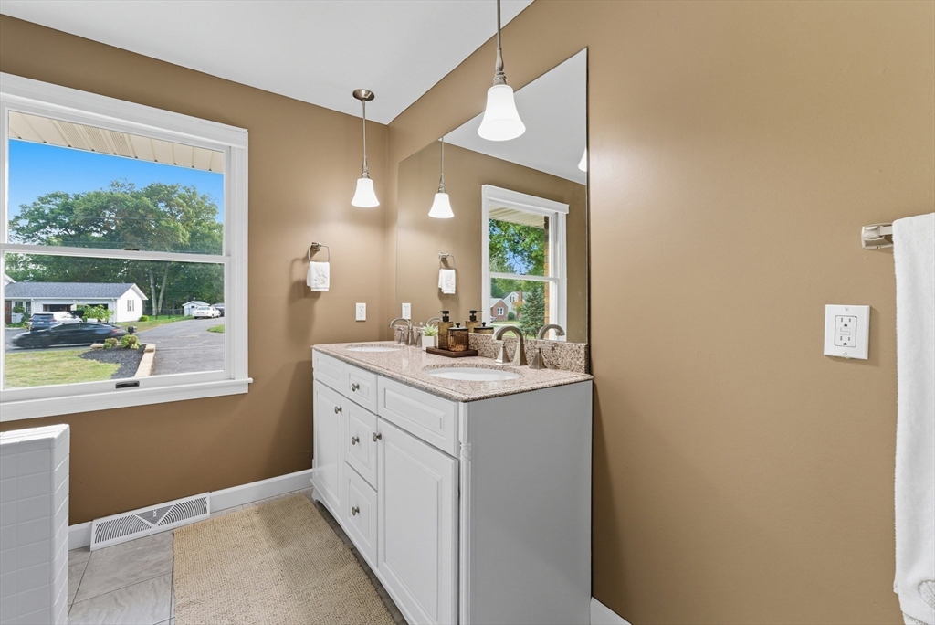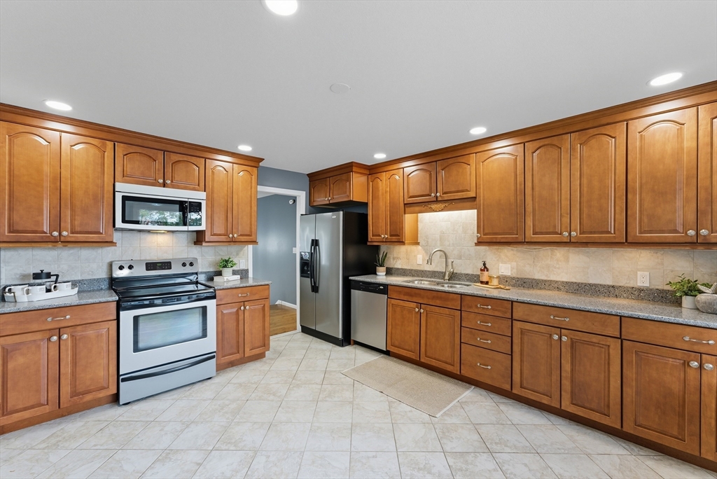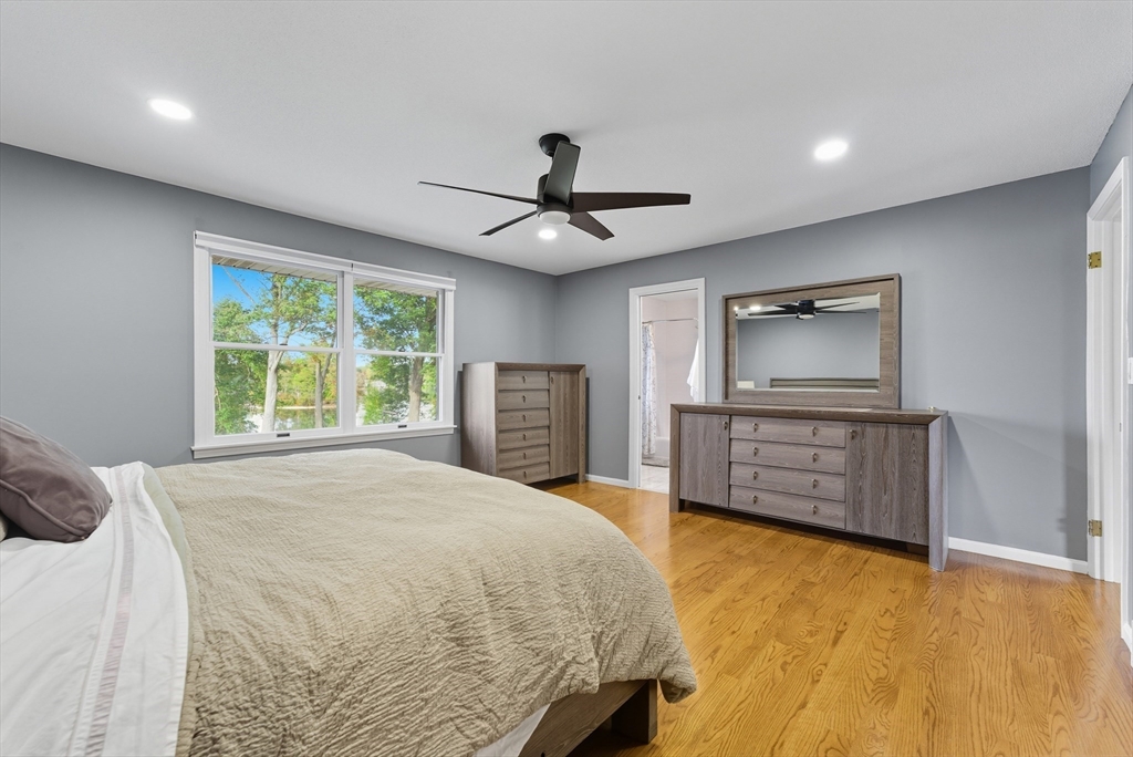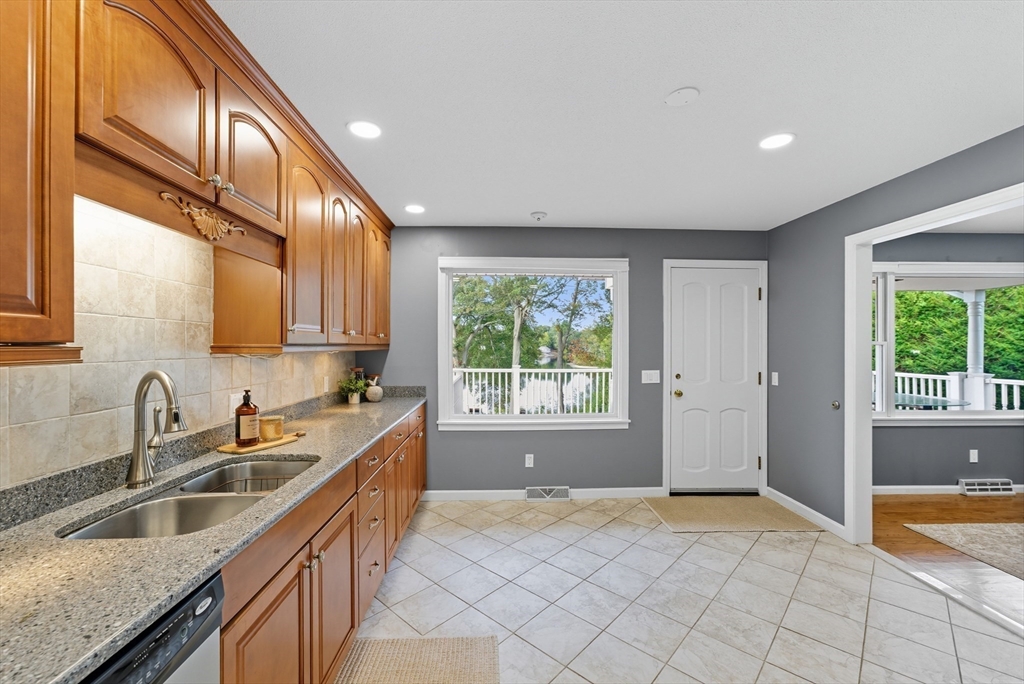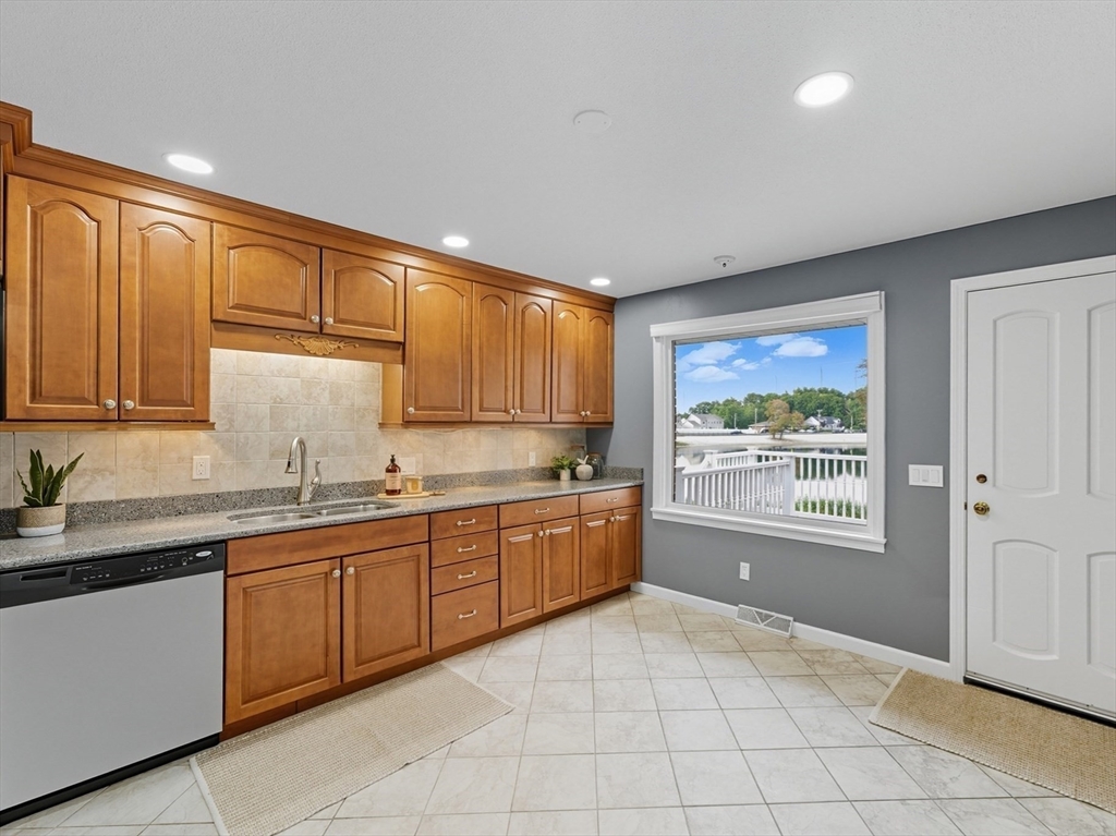 WATERFRONT LIVING AT ITS FINEST! Nestled on one of the most desirable lots along Haviland Pond, this meticulously maintained all-brick home offers year-round serenity & stunning water views. Wake up to the peaceful beauty of the pond from your primary suite, then enjoy your morning coffee on the expansive 12x23 composite deck overlooking the water. Inside, you'll find a beautifully remodeled kitchen, a newer furnace (installed 10/21), and thoughtful updates throughout. The finished walkout basement features a full bath & flexible space—perfect for a guest suite, home gym, or entertaining after a day of swimming, boating, or kayaking. An oversized garage provides ample space for storage or a workshop, complemented by an outdoor storage shed and a beautifully designed paver patio ideal for gatherings. Located just minutes from the Mass Pike & downtown shopping, this home perfectly blends convenient access with the tranquility of lakeside living. Don't miss this rare opportunity!