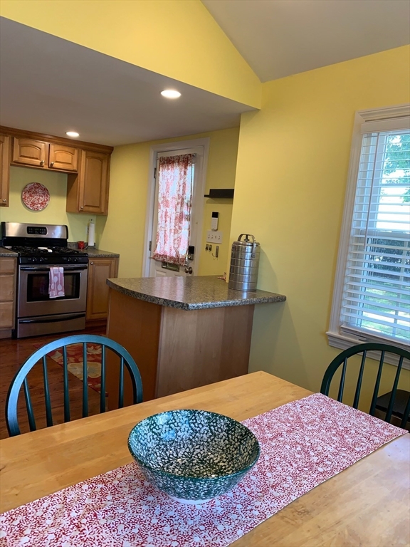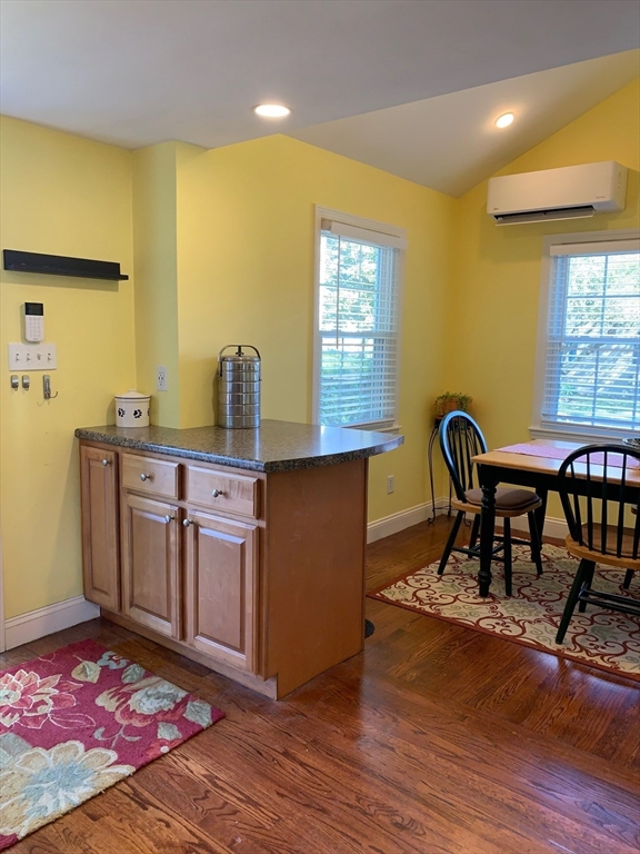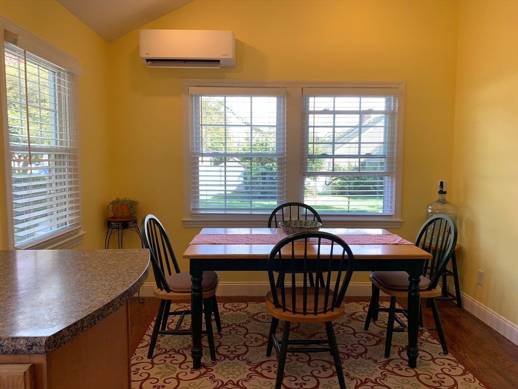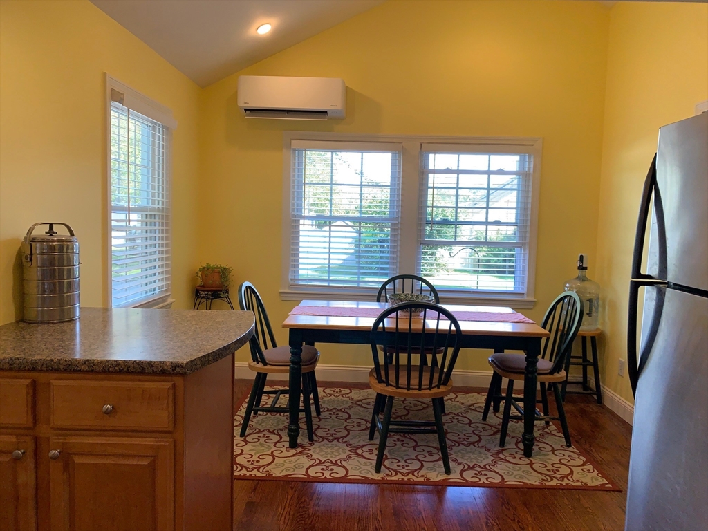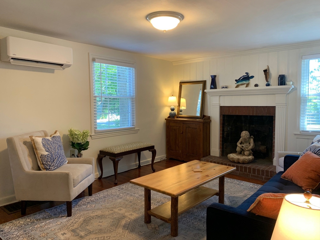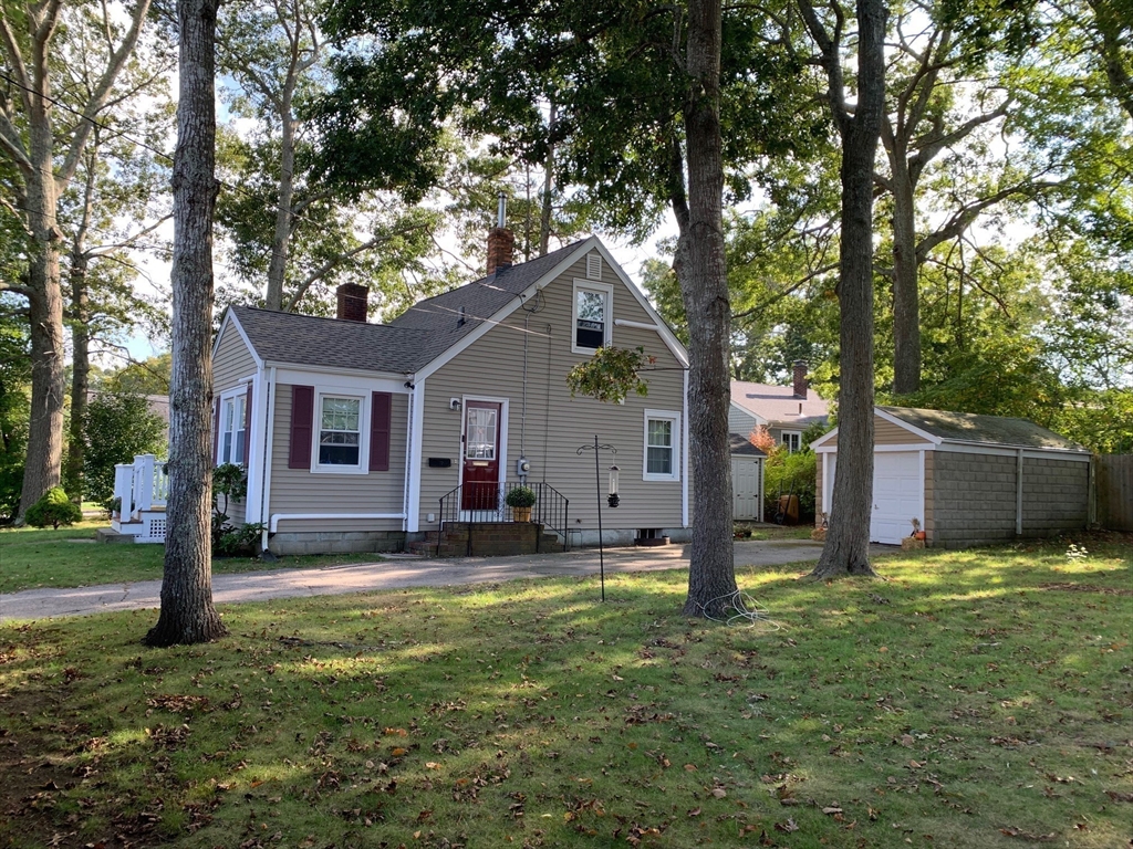 Classic New England Cape situated on a corner lot with trees and hedges lining the yard. A short walk to Buttonwood Park which has a Zoo, duck pond, playground, tennis/pickleball courts, sidewalks and walking paths. Once you enter the front door and pass through the entry hall, you will be greeted by a graciously sized living room with a fireplace. Adjacent to the living room is the well appointed kitchen with access to the driveway & spacious side yard with detached garage and storage shed. There is a raised ceiling above the dining area making it extra inviting. Two bedrooms & a full bathroom on the first floor make one floor living easy. The second floor has two well sized bedrooms. MANY UPGRADES by the current homeowner include DUCTLESS MINI-SPLITS in every room (except bathroom), BRAND NEW ROOF in 2024, the WOOD FLOORS were REFINISHED and the interior was painted in 2022. Great location for easy access to Rte 140 and Rte 195.