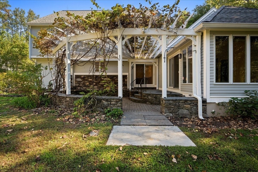 ~ Welcome to this beautiful, modern 4-bed Colonial, lovingly cared for by the same owners for 38 years! Set back from the road on a nearly 1-acre private lot, this home greets you with lush landscaping & a long driveway ~ The foyer opens to a cozy living room on one side & a formal dining room on the other, perfect for gatherings ~The updated kitchen features high-end cabinetry, Corian counters, center island & sliders to a gorgeous stone patio with grapevine arbor ~ Off the kitchen, a fireplaced great room w/ loft & a sunroom overlook the backyard oasis, plus a private office adds flexibility ~ Upstairs, the spacious front-to-back primary suite boasts a spa-like bath & walk-in closet, while 3 additional bedrooms & a full bath complete the 2nd floor ~ The partially finished lower level offers more living space, laundry & storage ~ Enjoy privacy, outdoor living and room for everyone in this updated home, all minutes to shopping, dining & major routes! ~ Be in for the Holidays! ~
