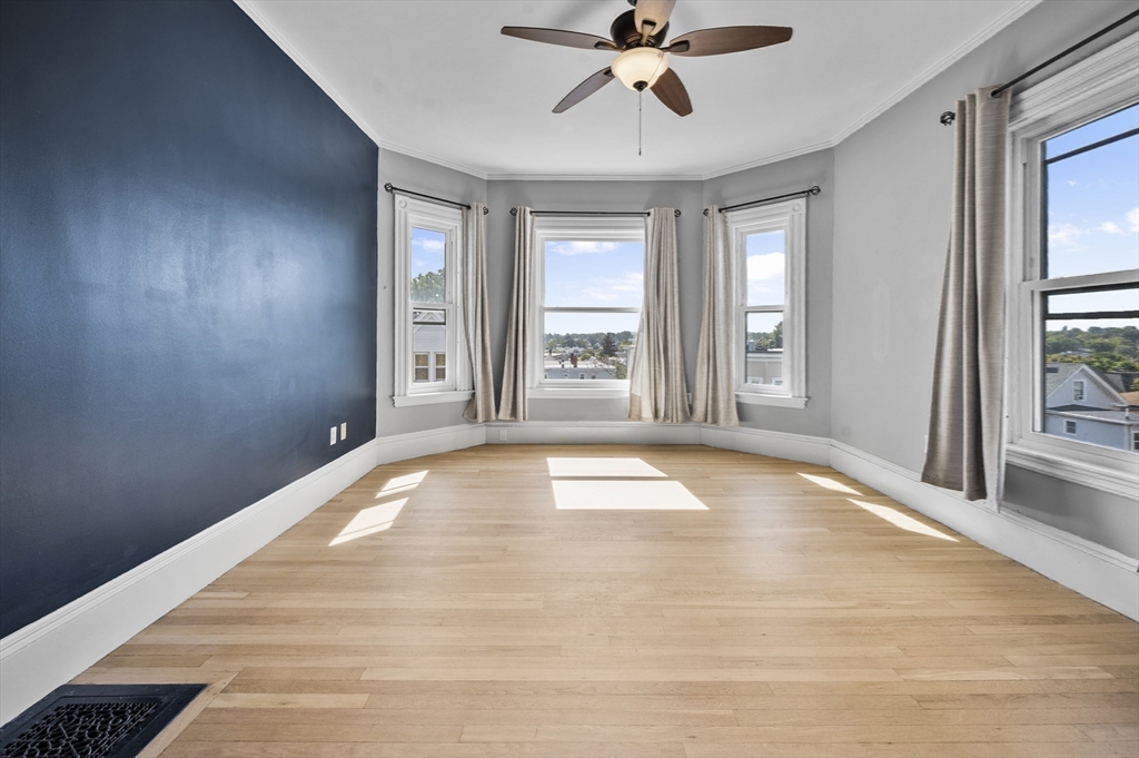 Welcome to Unit 3 at 43 Robinson Street, a stunning top-floor condo nestled in the heart of Meeting House Hill—one of Dorchester’s most desirable neighborhoods. Overlooking Ronan Park, this beautifully renovated home offers the perfect blend of classic charm and modern comfort. Renovated in 2021, this unit combines thoughtful design with high-quality finishes, including central air conditioning, a custom kitchen, and private outdoor space with park views. There are three spacious bedrooms with hardwood floors throughout, a custom kitchen featuring stainless steel appliances, stone countertops, and a large walk-in pantry! The stylish bathroom has shiplap walls, double sinks, and designer fixtures. There is a private rear deck overlooking Ronan Park — perfect for relaxing or entertaining! Two tandem parking spots, designated storage space in the basement, along with shared laundry. Roof / drain replaced in '21. Hot water tank '22. Healthy Reserves!