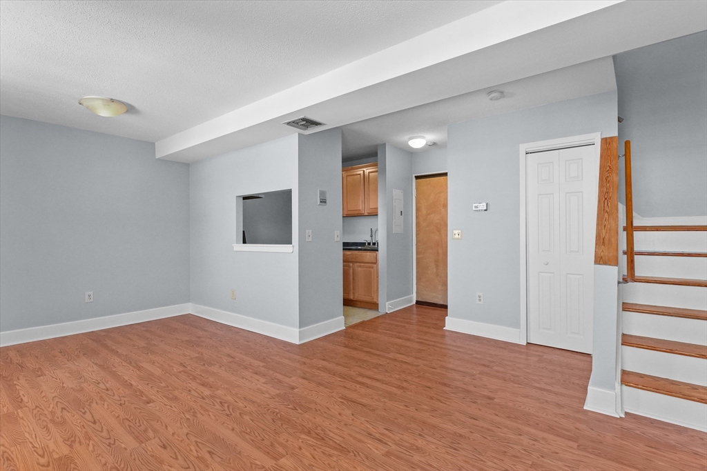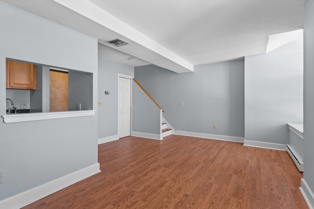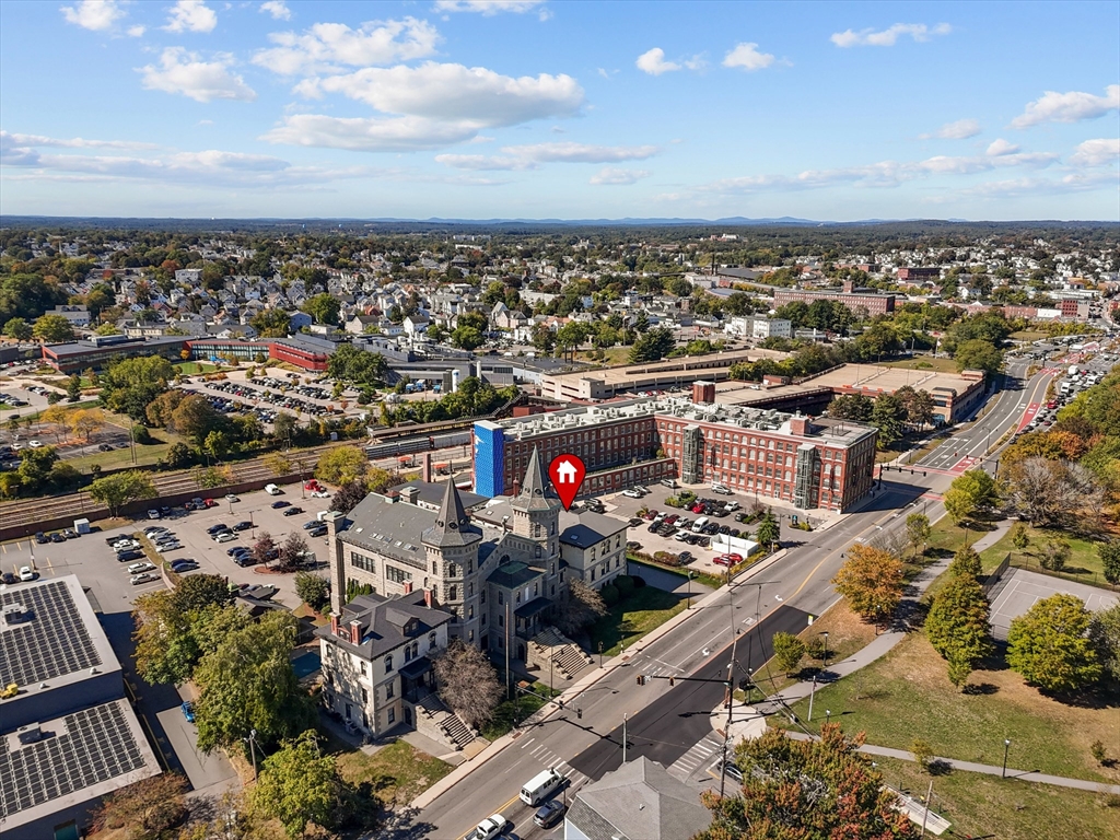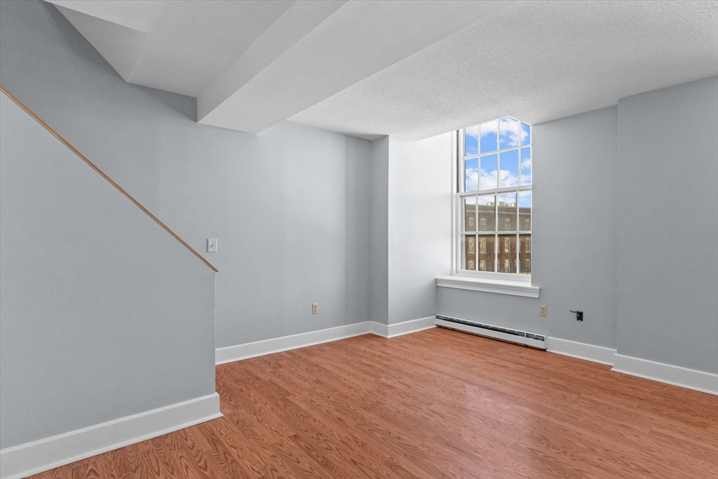 Located in the historic Keith Academy, this two-bedroom, one-bathroom, two-story condo offers a wonderful opportunity to build sweat equity. Freshly painted throughout, the home features laminate flooring in the living and bedroom areas and tile flooring in the kitchen. High ceilings and oversized windows fill the space with natural light, creating an open and airy feel. Full bath with tile flooring and central air complete the condo. Community amenities include a swimming pool, laundry facilities, basement storage, and plenty of parking. Ideally situated near highways, the Commuter Rail, the YMCA and Downtown Lowell, this condo combines historic character with excellent convenience—perfect for buyers ready to add their personal touch and make it their own.