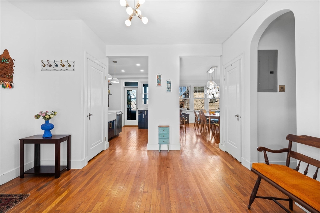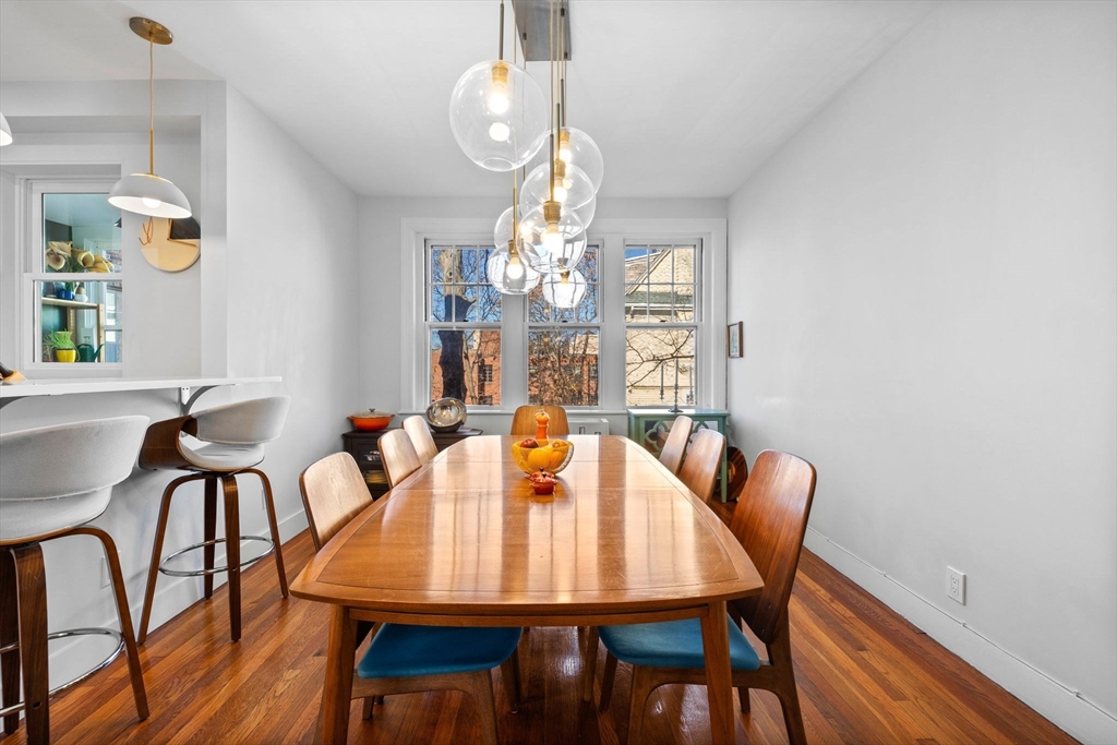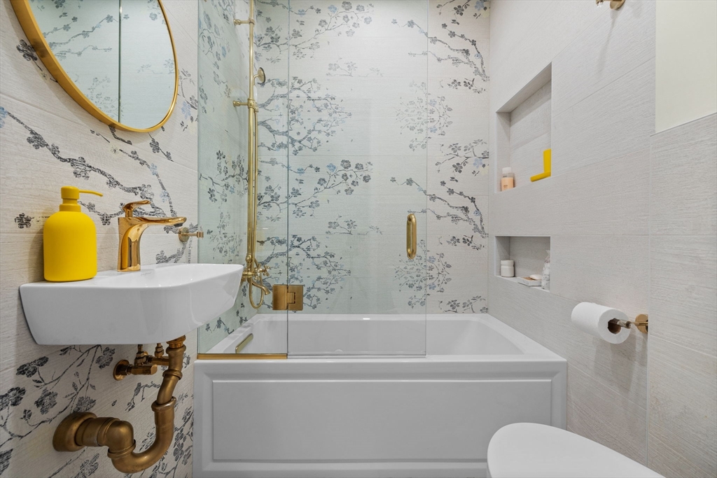 Welcome to 325 Tappan Street Unit 4, located in the heart of Brookline! This stunning, recently renovated, modern 2-bedroom, 2-bathroom condo spans 1,356 SF & offers an abundance of natural light with windows on all sides, tall ceilings, & gleaming hardwood floors throughout. The chef's kitchen is a culinary delight, featuring high-end Thermador® appliances & premium quartz countertops, perfect for those who love to cook & entertain. Two well-appointed bathrooms provide comfort & luxury. Enjoy the convenience of a dedicated off-street parking space, & an enclosed porch w/ wall-sized windows for an outdoor feel! Additional features include in-unit Miele® W/D, & a landscaped common area courtyard. Heat & Hot water are included! The unit's prime location puts you just moments away from local restaurants & 2 Green lines, making commuting & dining out a breeze. Experience the perfect blend of serenity & style in this beautiful home. Available Jan 1st.