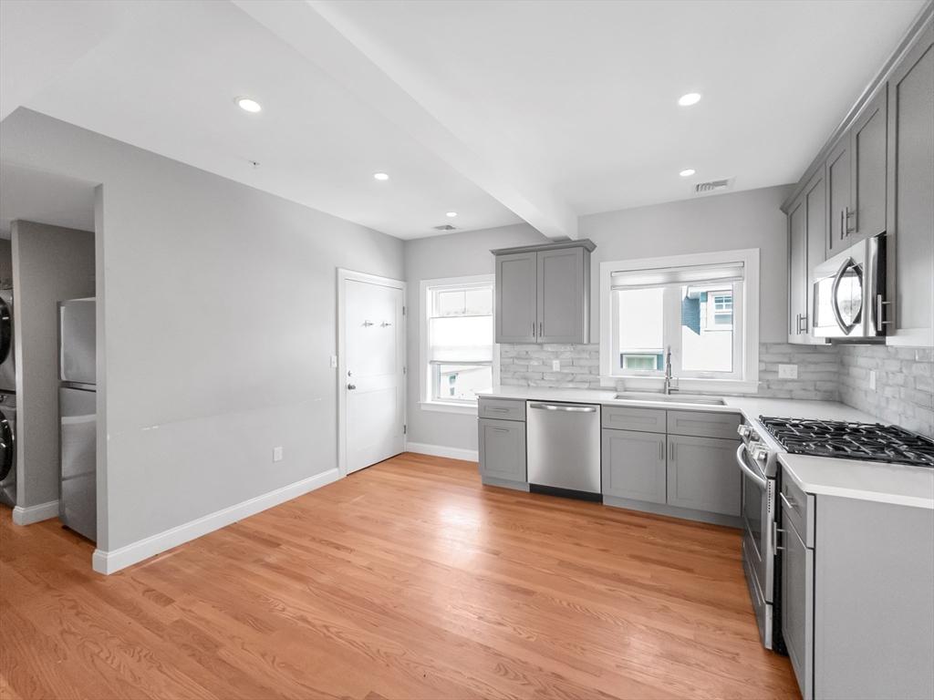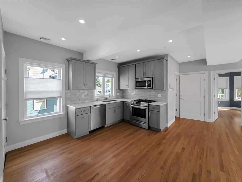 Available October 15th! | FIRST, LAST, RENEWABLE LEASE UNTIL 5/31 | This beautifully renovated 2.5 bedroom is SIGHT! Features custom remodeled kitchen with quartz counters and updated appliances, two FULL SIZE bathrooms (one with tub and shower), two spacious bedrooms, dining space with barn-style sliding doors, laundry IN UNIT, gas heat, updated electrical, recessed lighting, gleaming hardwood floors, beautiful shared yard and off-street parking for one car in the driveway included. Lovely! Close to great local Roslindale amenities and various bus routes. Why wait? Text NOW to schedule an appointment and see the virtual tour.First, Last, Full Renewable Lease until 5/31/2024 (with option to renew for 12 months) required. Small pet friendly with references.