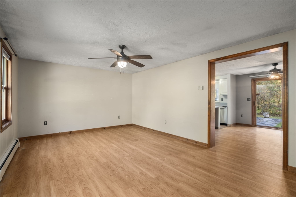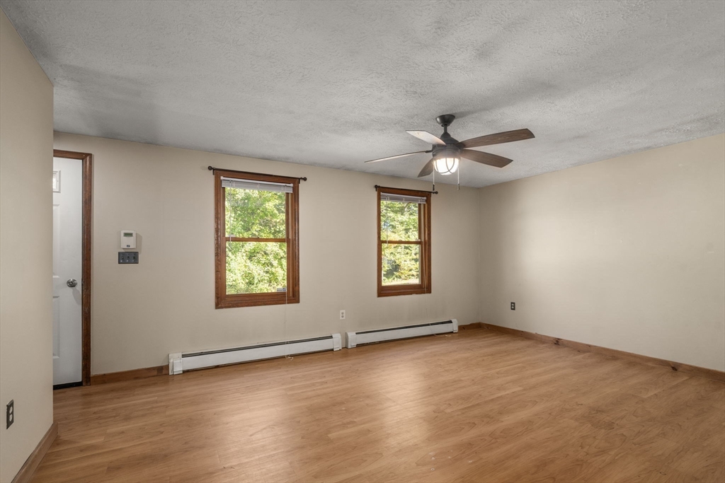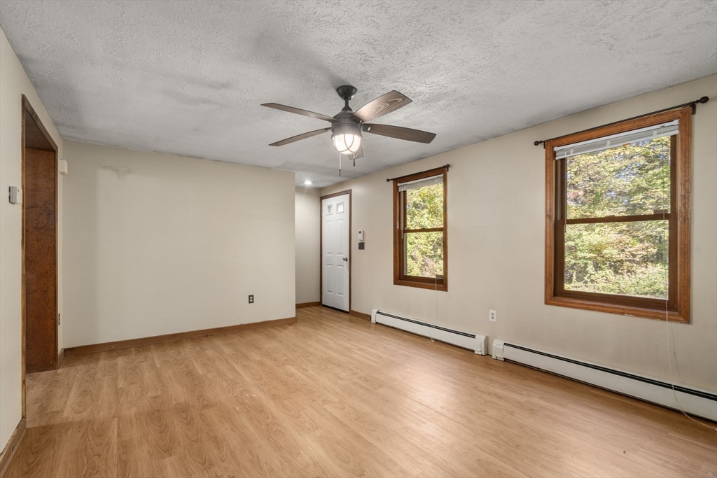 Amazing opportunity to own a two-family home on nearly 2 acres! The first unit spans two levels, featuring a fireplaced living room, kitchen with dining area, office, den, and full bath on the main floor, plus one bedroom, full bath, and bonus space upstairs. The second unit is a single-level ranch style with 2 bedrooms, 1 bath, kitchen, dining area, and living room. Both units share access to an attached secure 2-car garage. Each has its own unfinished basement with laundry, and all appliances remain. With both units currently vacant, you can choose your own tenants—or move right in and enjoy a built-in mortgage helper!
