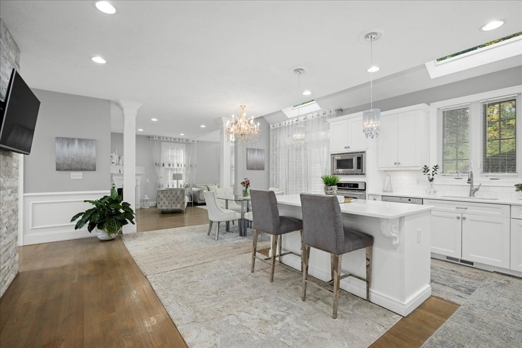 Dramatic, Outstanding, Mint Condition Transitional Colonial w/decidedly Modern look & feel located on a Cul De Sac*Welcoming Foyer w/Designer Chandelier sets the stage*Incredible renovated custom White Kitchen w/upscale Quartz counters, tiled backsplash, Center island w/Corbels, stunning Natural Stone decorated Wall & eating area enjoys sun from Skylights, Slider & transom windows*Lovely Open Floor the Kitchen opens to impressive Cathedral Ceiling Family Rm w/Fireplace & Skylights*Multi-Generational Option Living w/Office or First Floor Bedroom w/Walk in closet & private Full Bath*Romantic Primary Suite w/Vaulted Ceiling Sitting area, sumptuous bath w/Jetted tub & Walk In Closets*3 Additional Bedrooms & Full Bath located on the Upper Level*Impressive Designer Chandeliers, 8ft Doors on 1st Floor & Plethora of Recessed Lighting*Extensive Landscaping has been completed w/Walkways, Professional Landscaping Lights, Flower Beds, 40+ Emerald Green Arborvitaes & Storage Shed*Don't Miss Out*