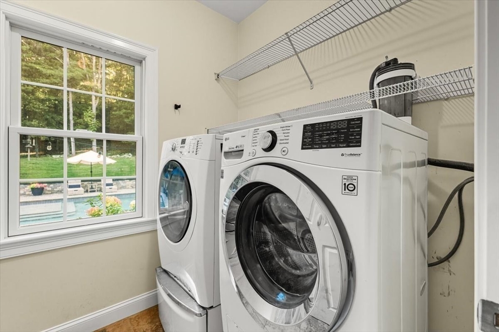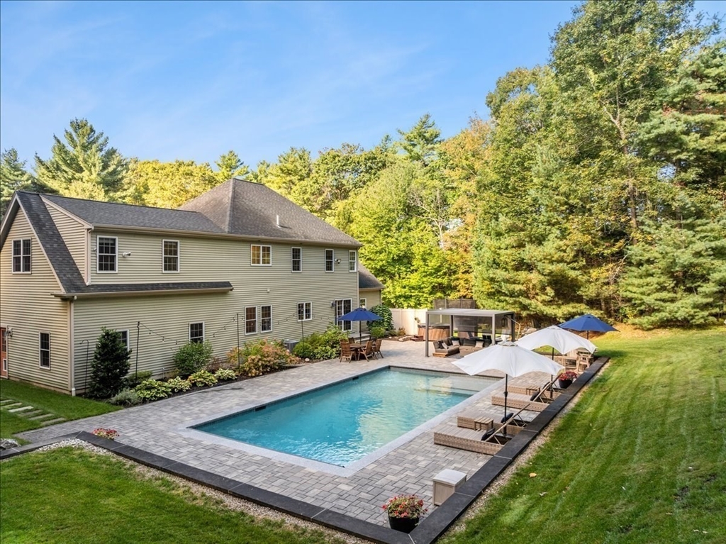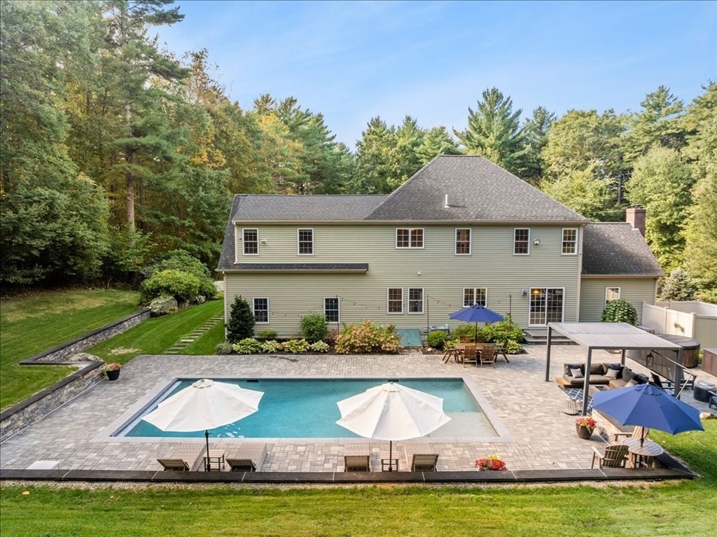Luxury Woodland Estate – A Private 5-Acre Retreat Lot Oasis Experience refined living in this exceptional 4-bedroom, 3.5-bath estate, set on 5 acres of pristine wooded landscape. This elegant home welcomes you with a grand open foyer and soaring cathedral ceilings, sunlit palladium window, creating a sense of space and sophistication. The chef’s kitchen is a masterpiece, featuring granite countertops, stainless-steel appliances, and a premium Viking oven—perfect for culinary enthusiasts. A cozy fireplace anchors the living room space, while first-floor laundry adds everyday convenience. The finished basement offers in-floor heating and a full bath, ideal for a luxurious guest suite or entertainment haven. Step outside to your resort-style backyard, complete with a heated gunite saltwater pool with automatic cover, hot tub, encased in custom stone walls, designer patio deck, designated fire pit area—all surrounded by lush woods for ultimate privacy and tranquility, truly a must see!