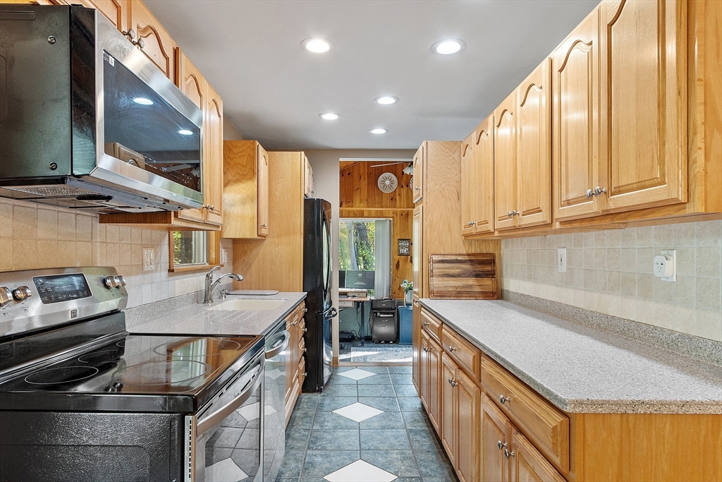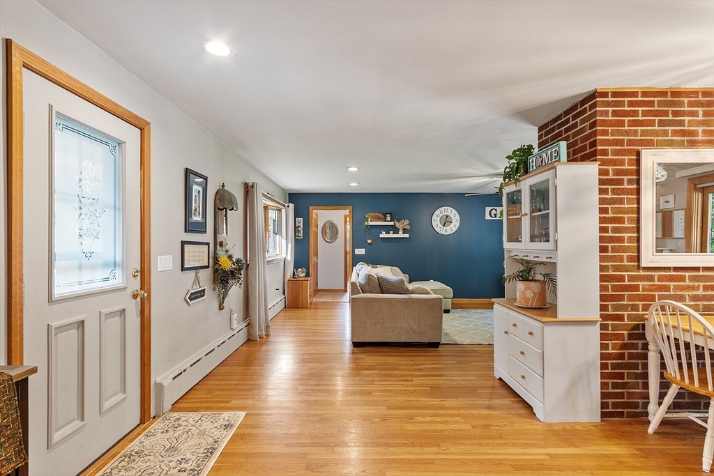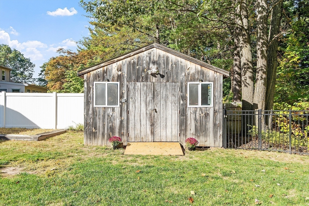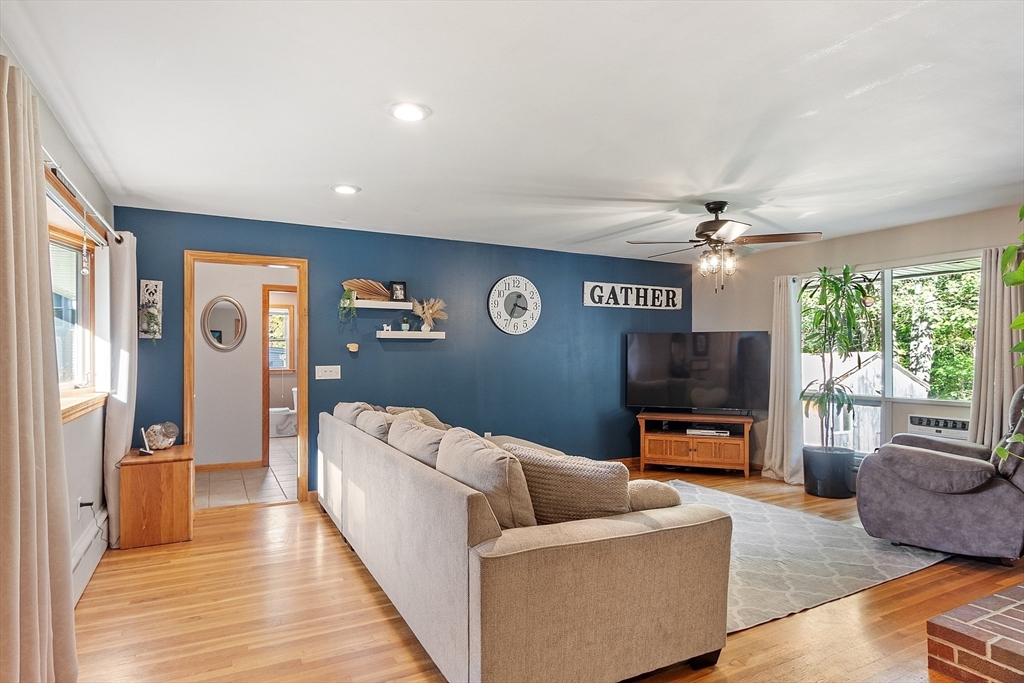 Welcome to this remodeled 2-bedroom, 1-bath ranch nestled at the end of a dead-end street abutting Coggshall Park—a serene setting where you can enjoy peaceful views and glimpses of wildlife. The open floor plan flows from the sun room, to kitchen, dining area and to the living room, creating an inviting space for both everyday living and entertaining. Hardwood floors run throughout, with tile in the kitchen and bath. A walk-out basement offers expansion potential or convenient storage. Thoughtful updates include a yearly maintained heating system, newer windows, generator connection, newer driveway, new hot water tank and motion-sensor yard lighting. Outside is a mature landscaped yard with perennials and bulbs, garden area and fully fenced in yard. Oversized shed with electricity. A wonderful opportunity to own a home in a private location while still being close to local amenities, commuter routes, and recreation!
