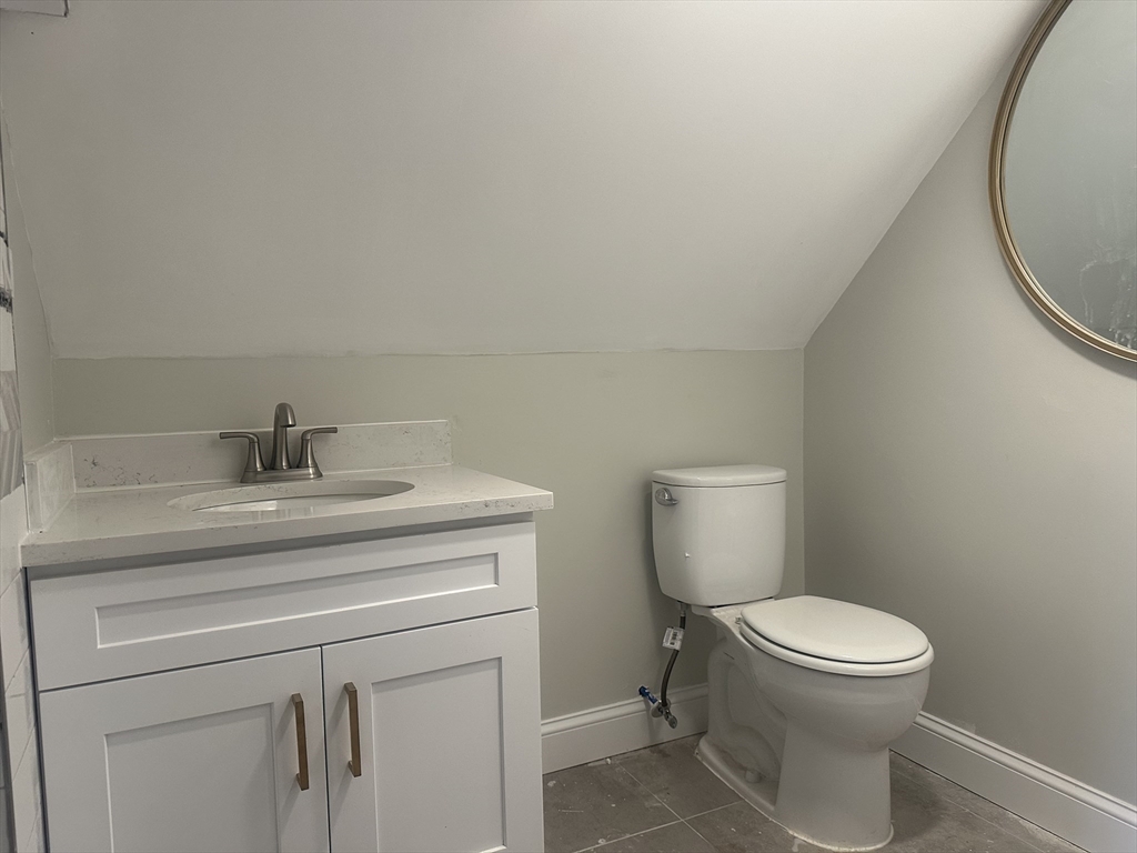 Completely renovated 3-bedroom, 3-full-bath home featuring a primary suite, open floor plan, quartz countertops, stainless steel appliances, hardwood flooring, and dining room with slider to private deck. Includes mini-split heating and cooling, in-unit washer/dryer, basement storage, and parking for up to 4 vehicles. Conveniently located near commuter rail, restaurants, shops, and major highways.