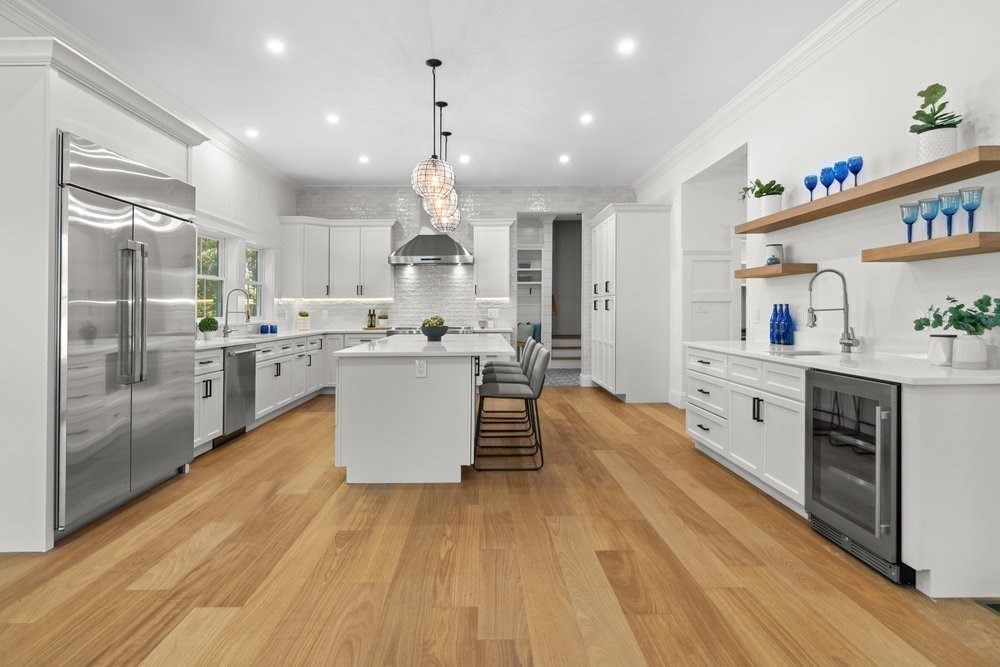 An exceptional NEW 6-bedroom, 5.5-bath modern farmhouse colonial, perfectly positioned in one of Lexington’s most coveted neighborhoods. Thoughtfully designed for both everyday comfort and sophisticated entertaining, this sun-drenched, southern-facing home showcases refined craftsmanship and timeless architectural details. Inside, wide-plank white oak floors, soaring ceilings, and elegant millwork create a sense of warmth and sophistication. At the heart of the home, the chef’s kitchen impresses with a large center island, premium appliances, wet bar, service pantry, and a sun-filled breakfast room opening to a private deck. A first-floor suite with ensuite bath offers flexibility for guests or a home office. Upstairs, the serene primary suite features a spa-like bath, dressing room, and views of the private yard. Sited on a large, tranquil lot, with mahogany porch & deck, and 3-car garage, this home blends modern luxury with classic New England charm—a rare Lexington gem.