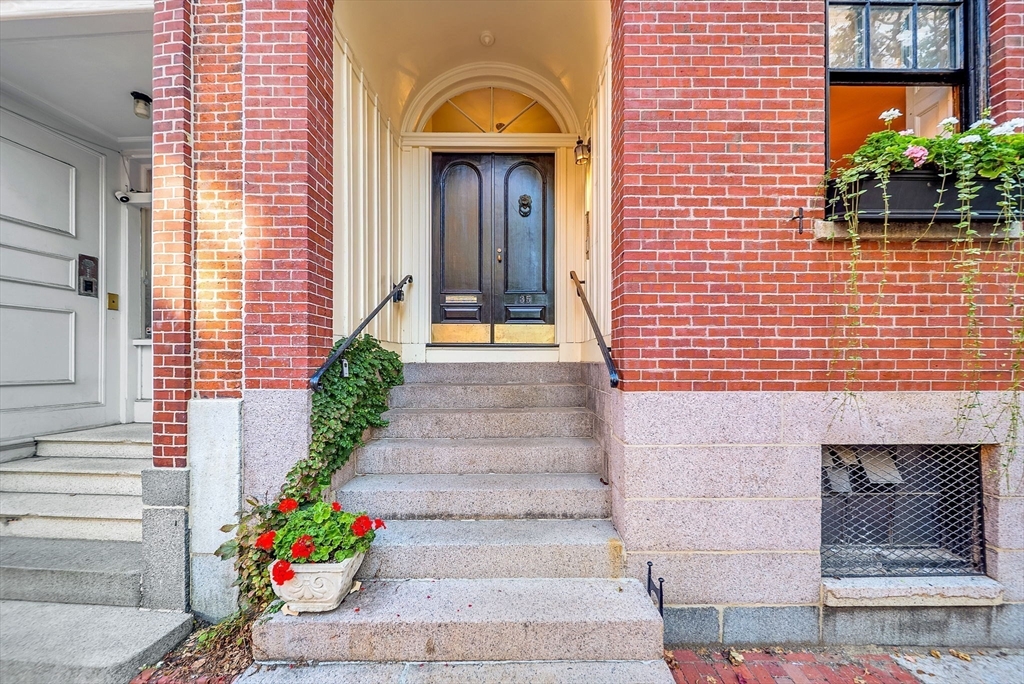 Experience the perfect blend of classic charm and modern comfort in this inviting 2-bedroom, 1.5-bath south-facing duplex in the heart of Beacon Hill! Thoughtfully designed, the upper level boasts two spacious bedrooms with soaring ceilings and a full bathroom featuring an oversized bathtub, while the lower level offers a granite and maple kitchen, open living and dining areas, in-unit laundry, a half bath, and a walk-out to a large tranquil patio—ideal for entertaining, gardening, or relaxing outdoors. Hardwood floors, recessed lighting, numerous built-ins, and three fireplaces add warmth and timeless character throughout. Sunlight pours in through a dramatic floor-to-ceiling window with a transom skylight, enhancing the inviting ambiance of the lower level. Shared basement storage. Perfectly located just one block from Boston Common and right behind the State House, the home directly overlooks the meticulously maintained State House side yard, with glimpses through to Boston Common.
