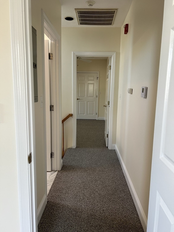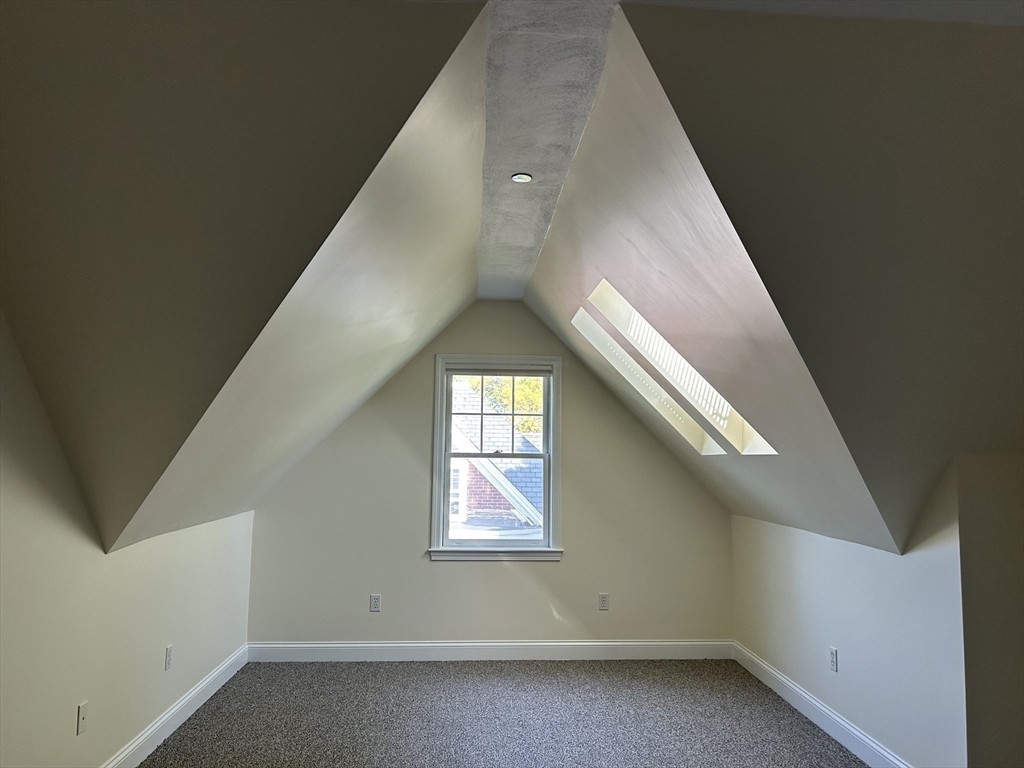 Rare opportunity to rent this 2 bedroom, 1.5 bath townhome located on the 2nd & 3rd floor of a 6-unit enclave. The unit's 1st floor features hardwood throughout. It offers an updated eat-in kitchen with granite countertops, generous cabinet space, stainless steel appliances, 2 pantries & a wall of windows. Both the formal dining room & the living room with gas fireplace & ceiling fan, have an abundance of oversized windows that create a bright & sunny space. A half bath is tucked away. The 2nd floor is newly carpeted & features a primary bedroom with a partially vaulted ceiling & skylights as well as a spacious 2nd bedroom. Both offer generous closet space. A full bath has been updated & has a tiled combination tub/shower. Freshly painted throughout. Coin-Op laundry & assigned storage in the basement. 1 car off street parking. Special bonus: the common yard with beautiful landscaping. Welcome home to Salem!