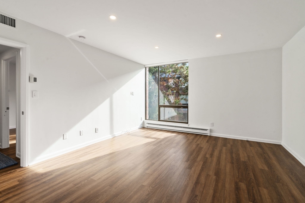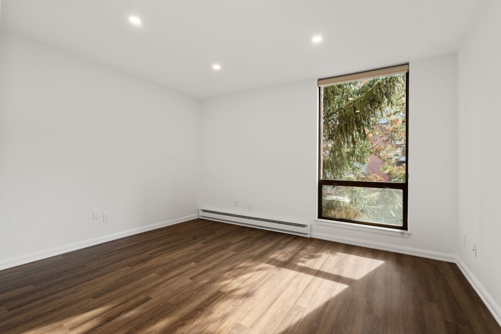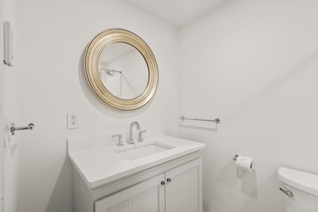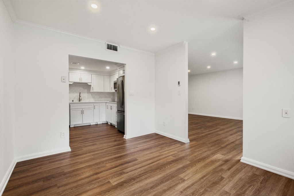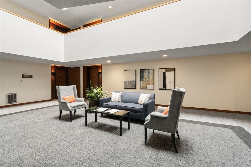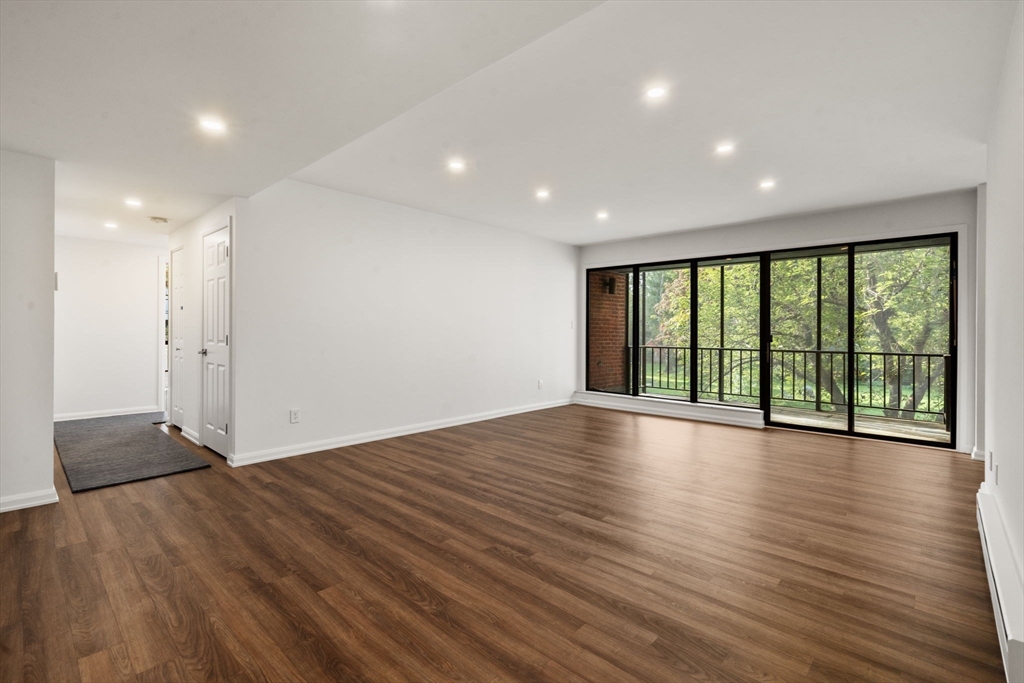 Complete transformation! Incredible renovation to this corner unit! Light and bright kitchen with new white kitchen with quartz counters and stainless appliances. Casual dining space is part of the extended kitchen area. Large living room that opens to balcony with beautiful views. Dining room area with full wall of built-ins. Mudroom and entry area is also full of great closet space. Main bedroom with new bathroom and large walk-in closet. Guest room/den plus a 2nd new bathroom. Move right into this one floor living incredible unit. New flooring and paint. Extra bonus with 2 indoor garage parking spaces. Carefree lifestyle with heated pool, access to the amazing Brook Path and all the conveniences of Wellesley Center- shops, restaurants and train. Showings begin Sunday afternoon!