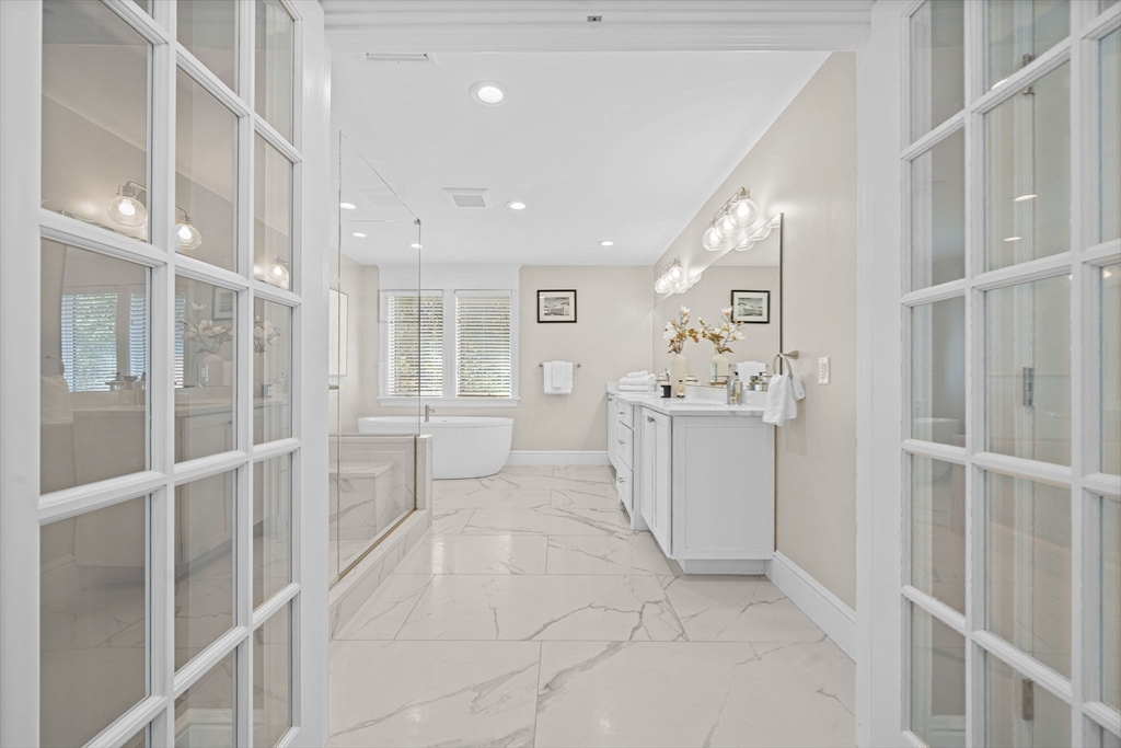 New built, 2018, shows pride of ownership with its appeal and charm. From the moment you pull up, you will be impressed with the quality of workmanship.The grand foyer will WOW you with its curved staircase, high ceilings, and crystal chandelier. LR has a tiled fireplace, coffered ceilings, HW floors throughout, custom CHEF's kitchen with MIELE appliances, huge island, QUARTZ stone, walk-in pantry, breakfast/eating area and exterior access to the composite deck and in-ground, heated pool. An office, formal DR, currently being used as a family room, and 3/4 bath with shower complete this floor. Upstairs, an extraordinary PRIMARY offers his and hers walk-in closets, spa-bath with stand alone tub, double vanity and much more. 3 Other bedrooms with ensuite baths and big closets, laundry room, and walk-up finished attic. Walk-out basement has a gym, movie room and mudroom, 3 car garage, oasis backyard, pool, poolhouse, gabana, fenced yard, close to 95 and RT 1, great schools, won't last!
