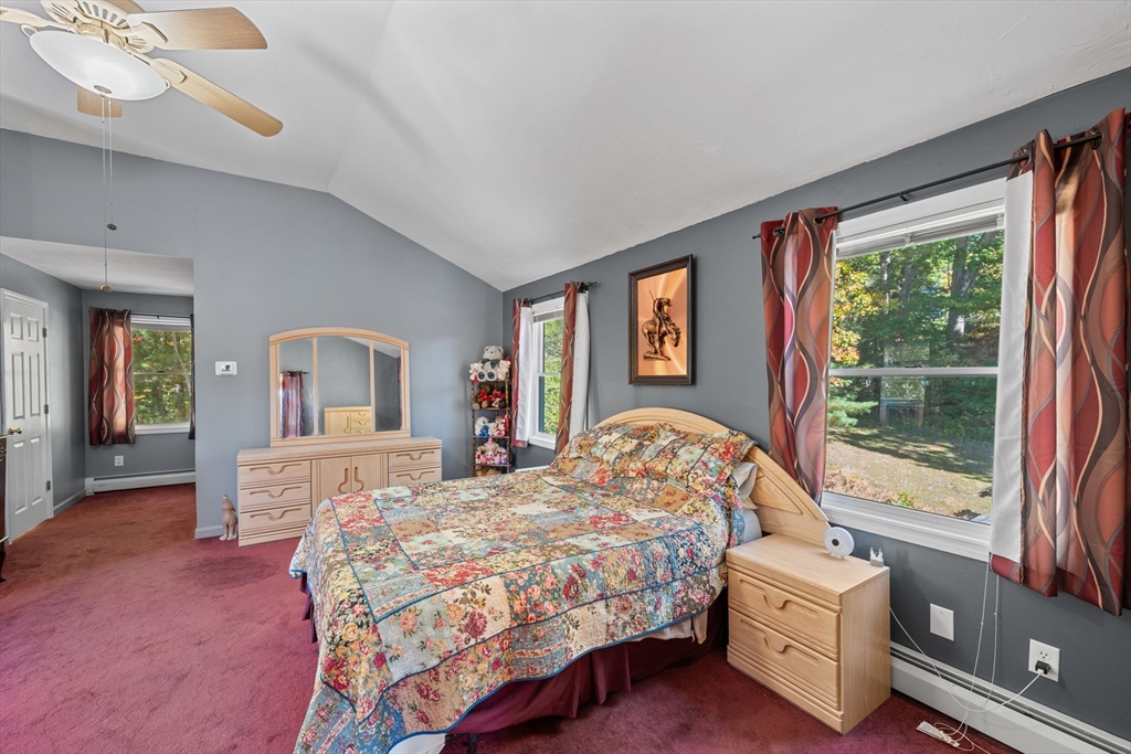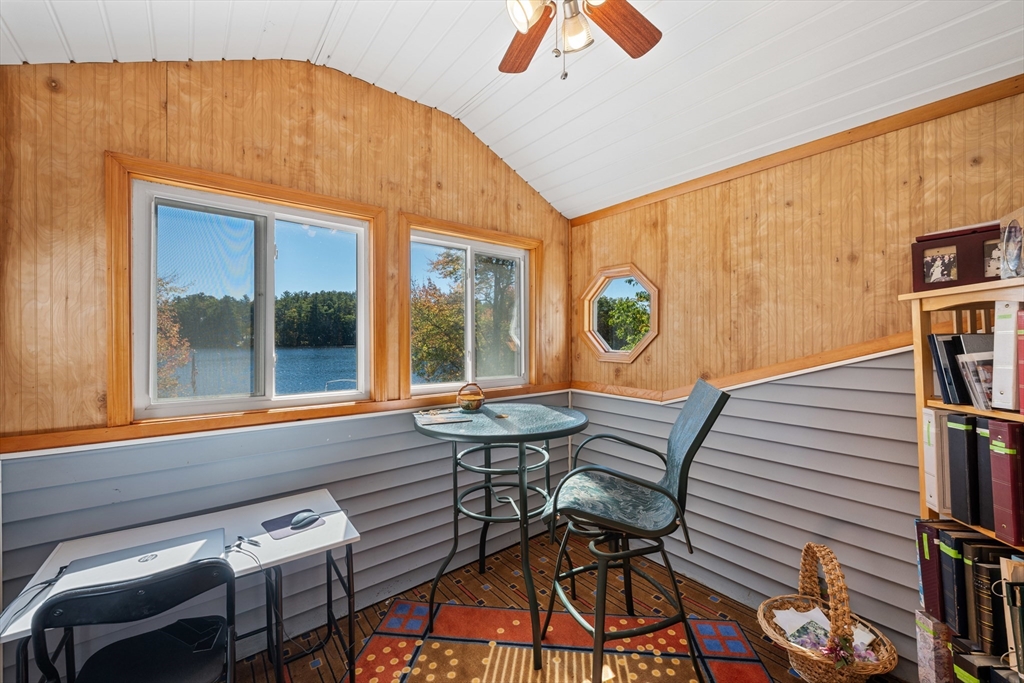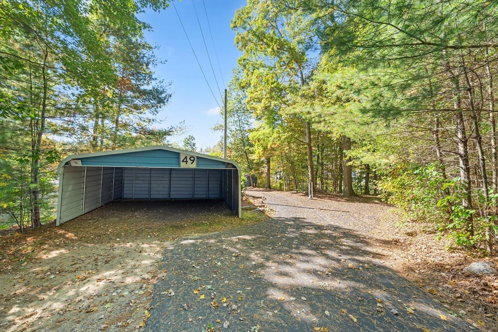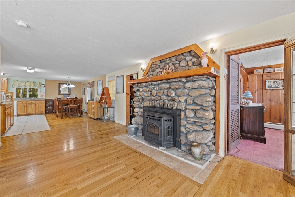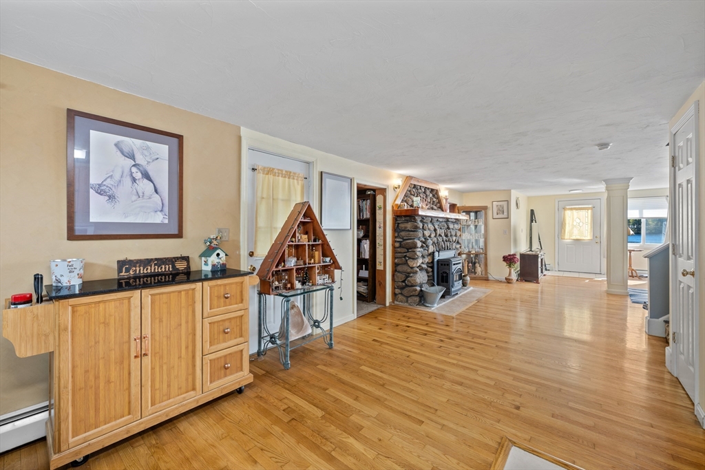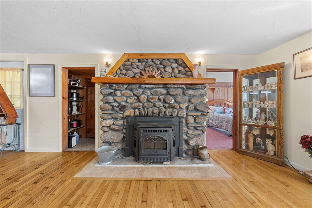 Waterfront Retreat on Dean Pond - Southern Exposure– 130 feet of PRIVATE water frontage, just 15 miles from Worcester! This home offers the perfect year-round escape for boating, kayaking, and fishing enthusiasts. With Title 5 in hand, the property is ready for immediate enjoyment. The open floor plan features Kitchen with Dining Area and spacious Living Room with stunning Water Views. Hardwood floors and an original stone fireplace with pellet stove add charm and warmth. The first floor includes a bedroom with pine finishes, a full bath with laundry, and walk-in storage. Upstairs, the private main suite boasts a cathedral ceiling, 3-season sitting room with more Water Views, a jet tub bath, and a walk-in closet. Additional perks include a 2-bay carport and a screened porch for outdoor relaxation. Start planning your waterfront adventures today—this home offers the perfect blend of comfort and nature. Welcome home!