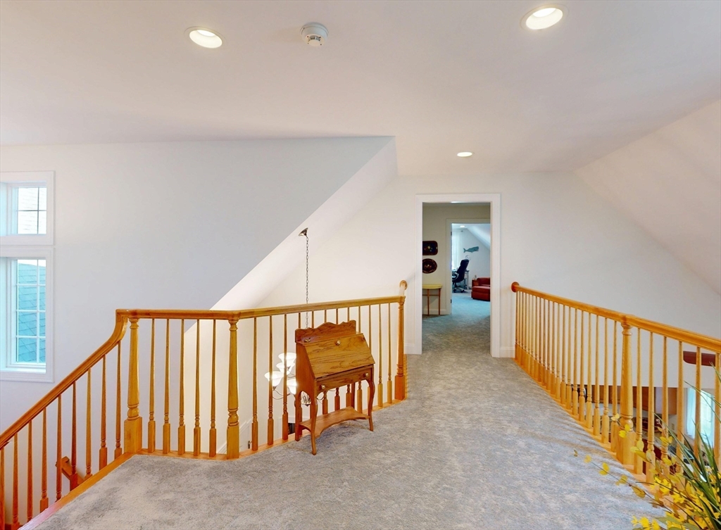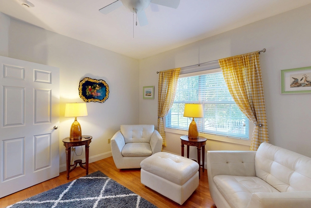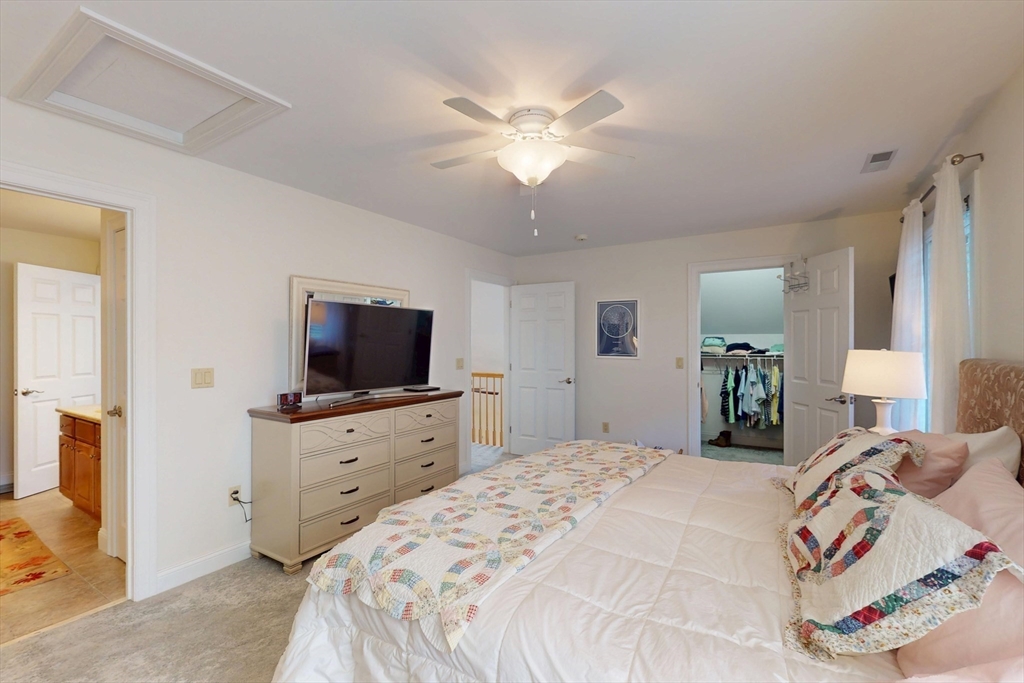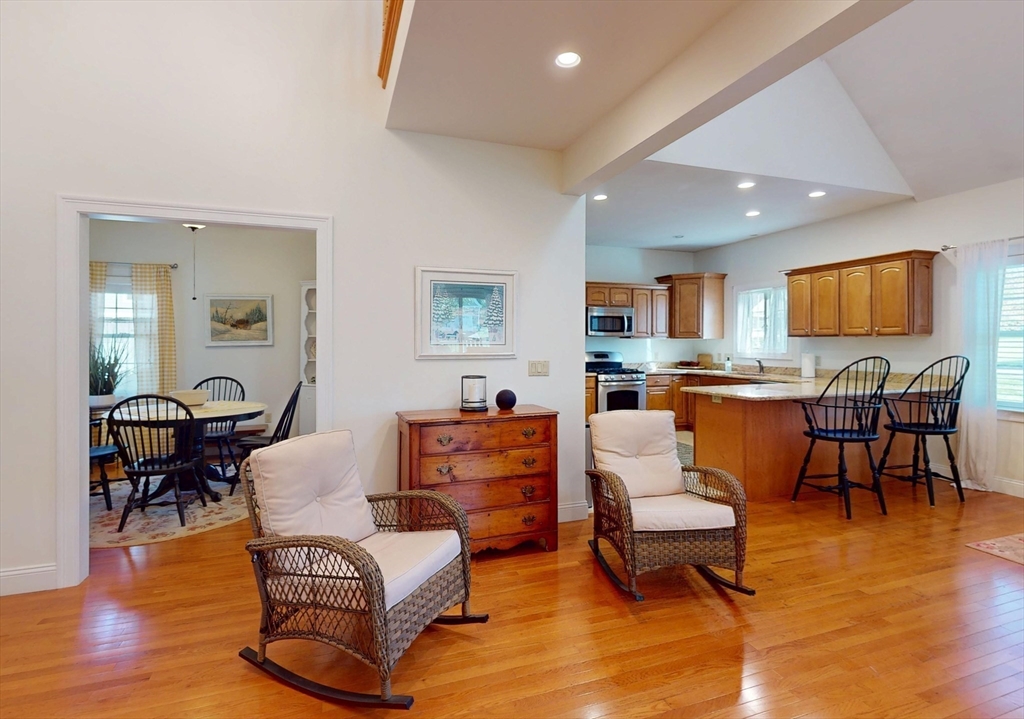 Own this beautiful and desirable end unit in Orchard Villas, a 55+ community. Among the features of this impressive unit are skylights, vaulted ceilings, a propane gas fireplace, screened porch off of the living room, and central vacuum. A lovely open floor plan graces the first level, with the kitchen open to the living room so the cook can enjoy company and ambiance of the fireplace along with everyone else. The primary bedroom with bath, dining room and half bath with laundry round out the first floor. Choose the location for your primary bedroom-first floor primary with main bath, the second floor has a sizable bedroom as well currently used as the primary bedroom, also with a full bath attached. The second floor also boasts a bonus room with two large closets and skylight. Plenty of living space, plenty of storage space, and all beautifully maintained. Two car garage! Don't miss this pristine home. Start your worry-free condo living today!