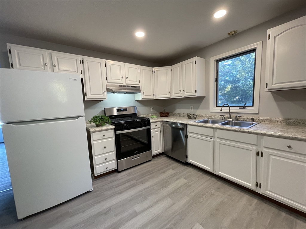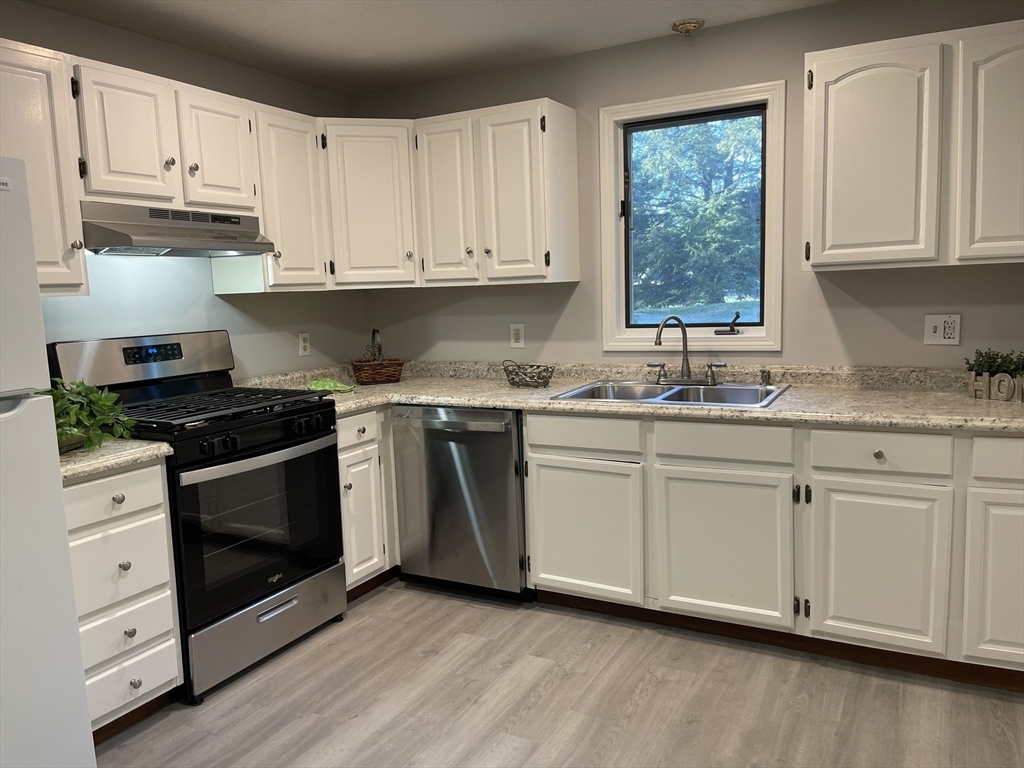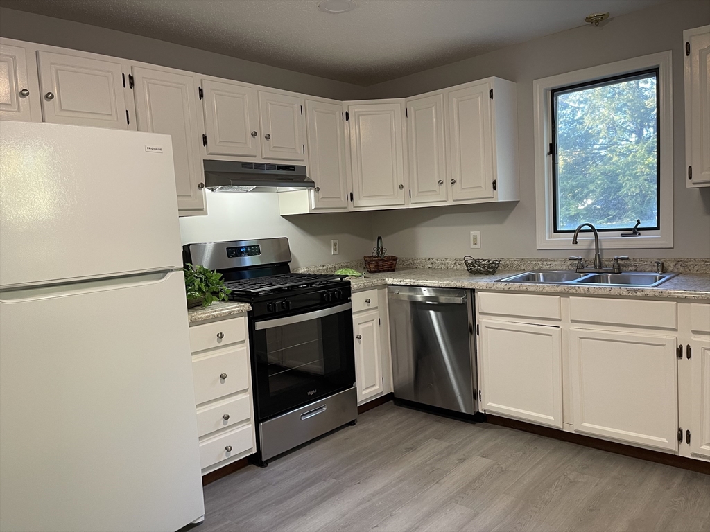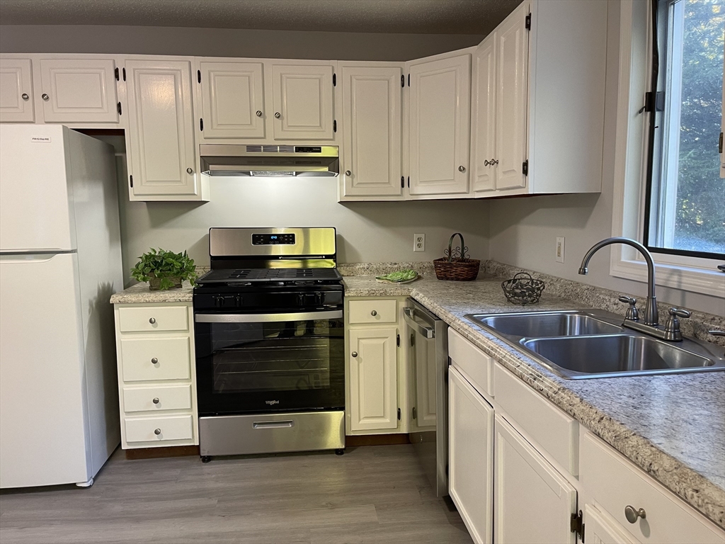 Bright, Sunny & Convenient – Adorable 2-Bedroom Ranch-Style End Unit: Enjoy the ease of one-level living in this charming, sun-filled 2-bedroom end unit. The spacious layout features a welcoming living room, an eat-in kitchen with direct access to a private covered patio, and a generous primary bedroom with its own private bath. A second full-size bathroom boasts a sleek Corian countertop, and the in-unit laundry includes a newer stackable washer and dryer for added convenience. Brand-new luxury laminate flooring flows throughout the home, paired with a brand-new stainless-steel dishwasher and stove in the kitchen for modern comfort. Located just minutes from downtown restaurants, shops, highways, schools, parks, and trails—this home offers the perfect blend of accessibility and tranquility. With a low HOA fee, it’s ideal for first-time buyers or those looking to downsize and relax. Don’t miss this delightful opportunity—schedule your visit today! OPEN HOUSE Sunday Oct. 5th 1-3 PM.
