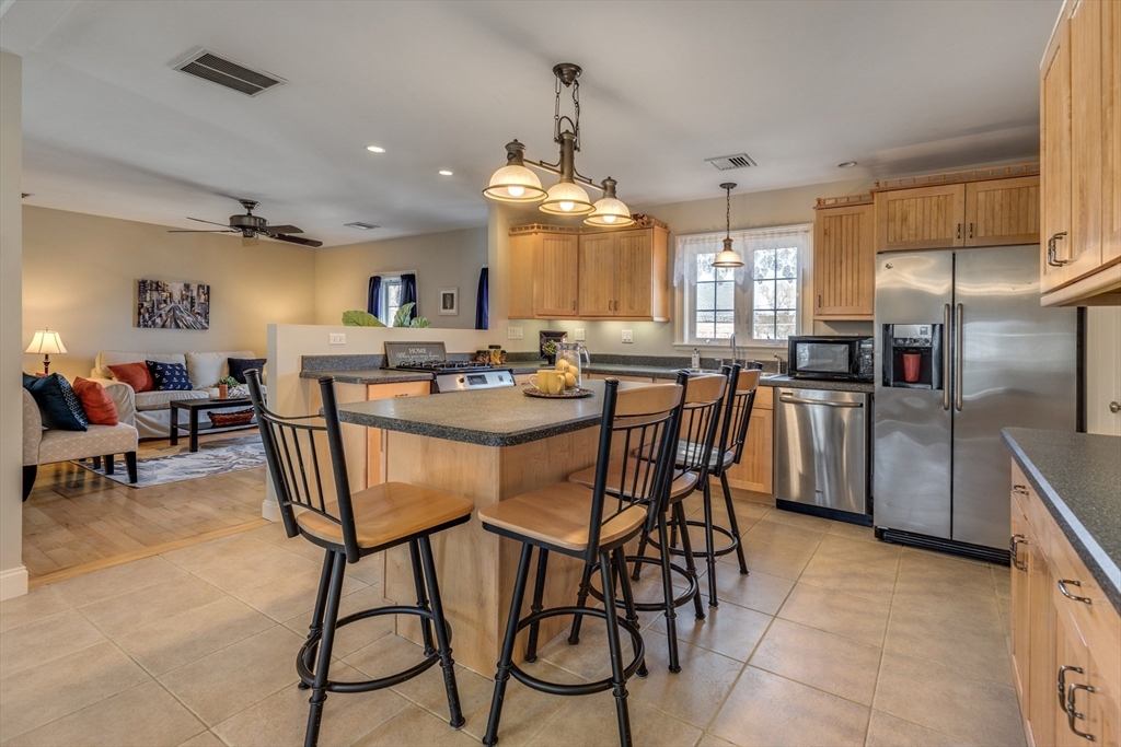 Fantastic rental in a prime location! Just a half mile to Shaw’s, restaurants, and everyday conveniences, and only a short distance to the commuter rail. This home offers direct entry, two parking spaces, and extra storage. Inside, enjoy central A/C and heat, in-unit laundry, and a bright open layout. The main floor features a spacious kitchen with brand-new quartz countertops, a large island, stainless steel appliances (including dishwasher), and abundant counter and cabinet space. The primary suite includes an en suite bath, complemented by two additional well-sized bedrooms, a second full bath, and a convenient half bath. A mudroom adds extra functionality. Pets allowed with restrictions. AVAILABLE NOVEMBER 1st.