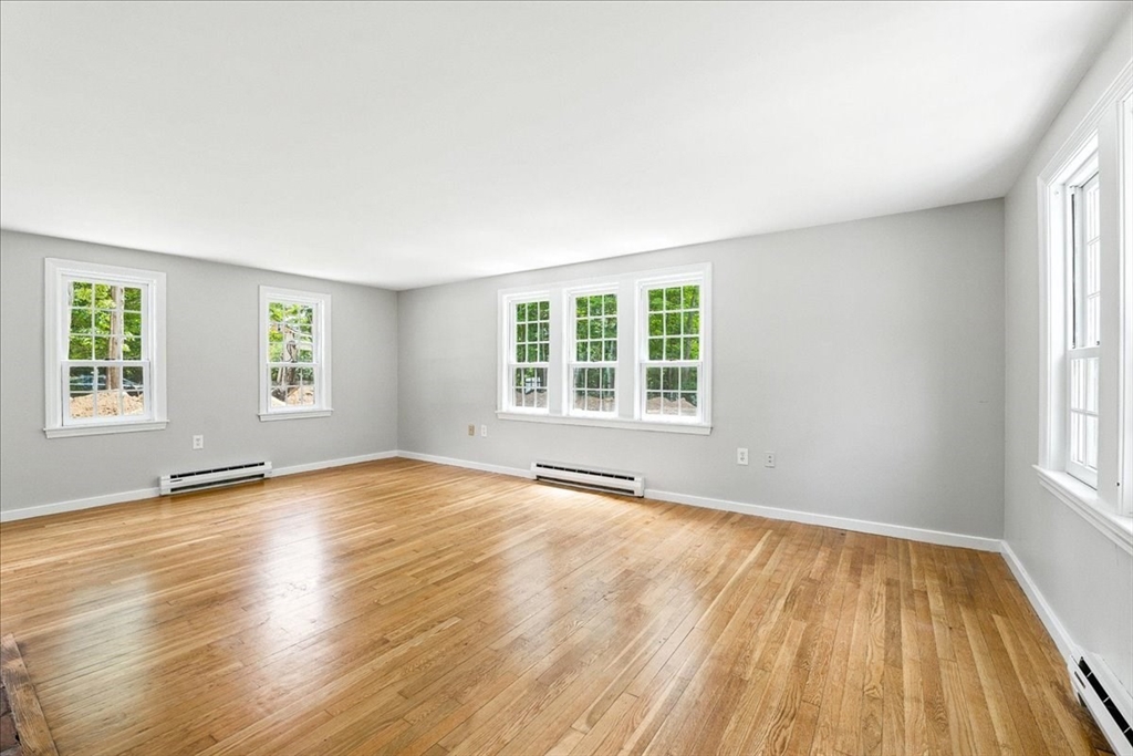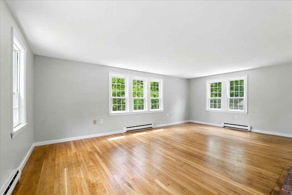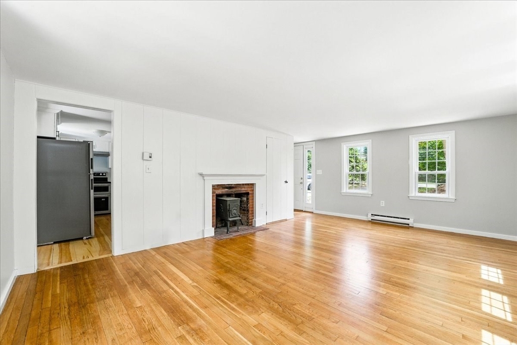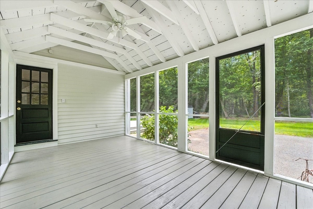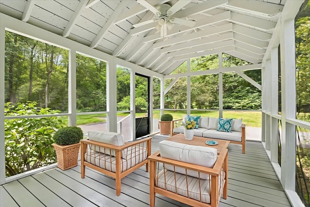 Welcome home to this classic center-entrance Colonial set on over an acre abutting Town Forest with access to scenic walking trails. Thoughtfully renovated top to bottom with a new roof, custom kitchen with granite counters, peninsula, and new cabinetry. The open kitchen/dining area flows to a spacious screened porch perfect for al fresco dining. Gleaming refinished hardwood floors throughout. New first floor half bath with new vanity and hardwood floors. The full bath features a stunning tiled double walk-in shower, new vanity, and tiled floor. The front-to-back family room offers refinished floors, a brick fireplace, and abundant natural light. Fresh paint T/O in a sophisticated neutral palette enhances every room. Enjoy privacy and nature views from the back deck. Located in the top-ranked Dover-Sherborn school district, this turnkey home offers modern updates, classic charm, and an exceptional setting. New three-bedroom septic system.