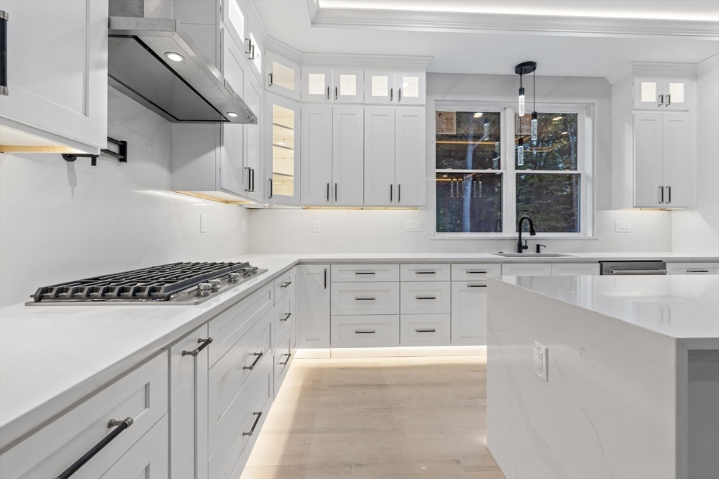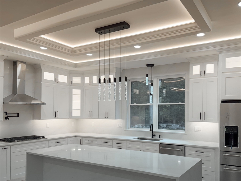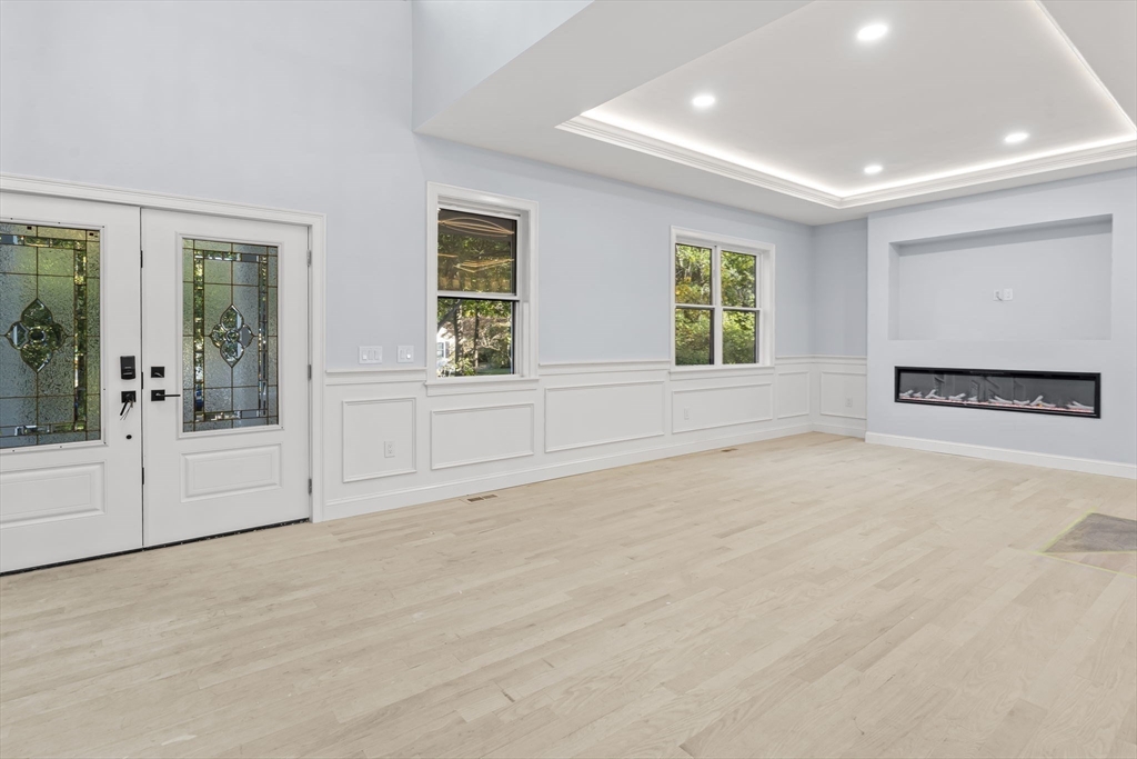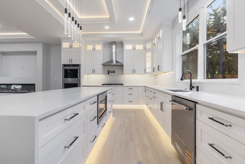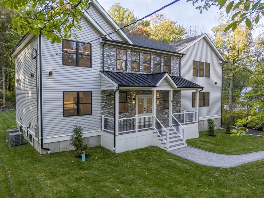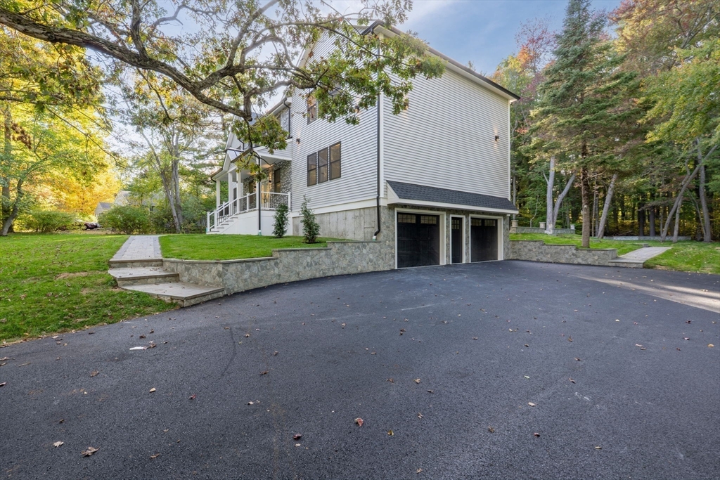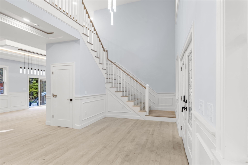 Sophisticated new Colonial blending timeless architecture with modern luxury in a premier Bedford location. Featuring 4BR, 4.5BA, and three statement fireplaces gracing the living room, dining room, and dramatic two-story foyer, this home radiates warmth and refinement. The chef’s kitchen showcases an oversized island, designer cabinetry, and custom lighting that flows into a spacious family room. A first-floor ensuite offers flexibility, while the primary suite impresses with a spa-inspired bath and dual walk-in closets. Outdoor living is equally remarkable with two stone patios, a full kitchen, and lush landscaping. With its distinctive stone façade, curated finishes, and proximity to top schools, shops, dining, and major routes, this residence defines elegant suburban living with easy access to Boston.