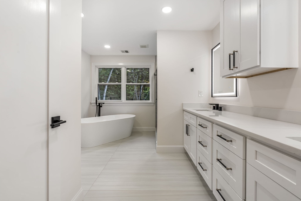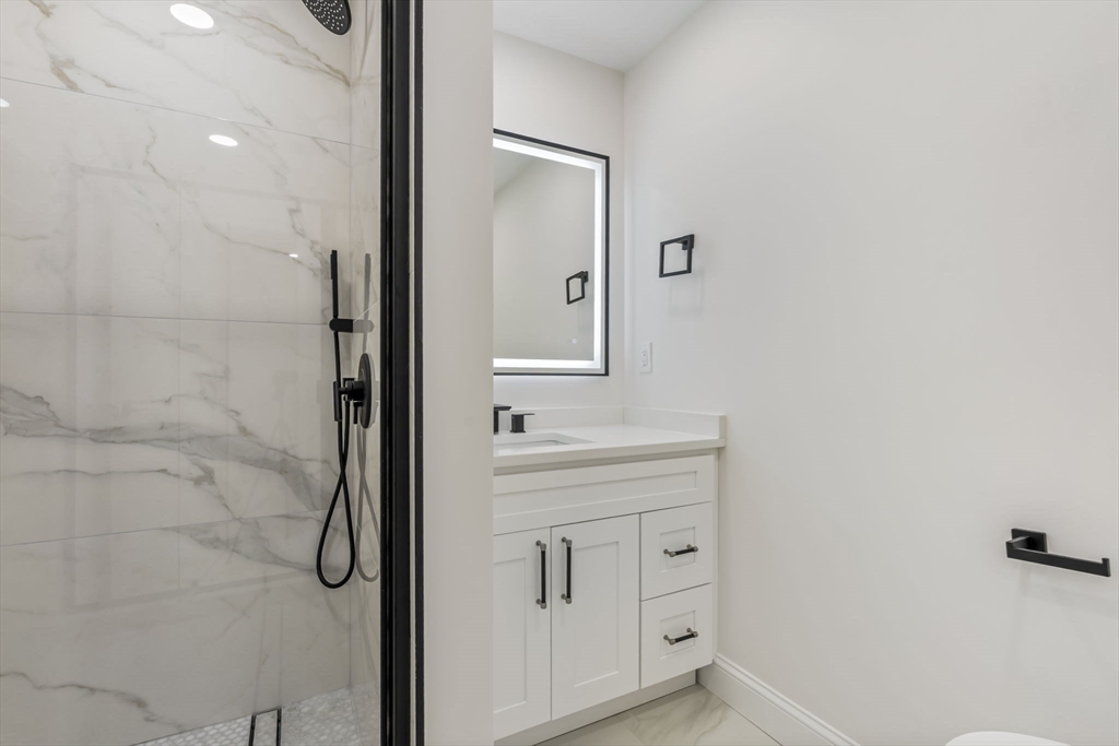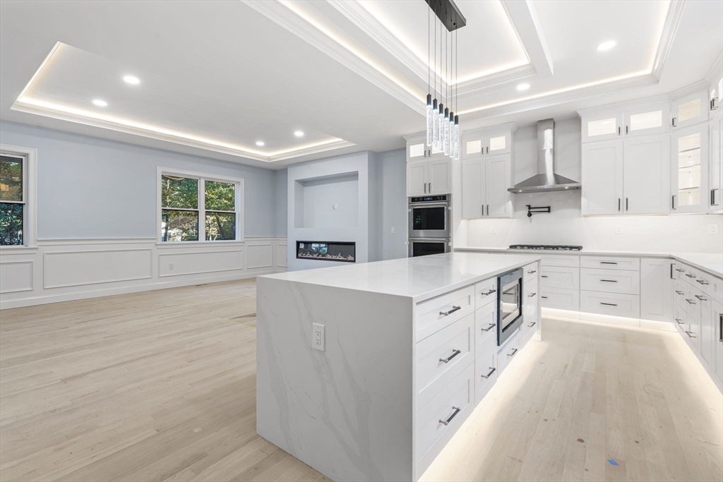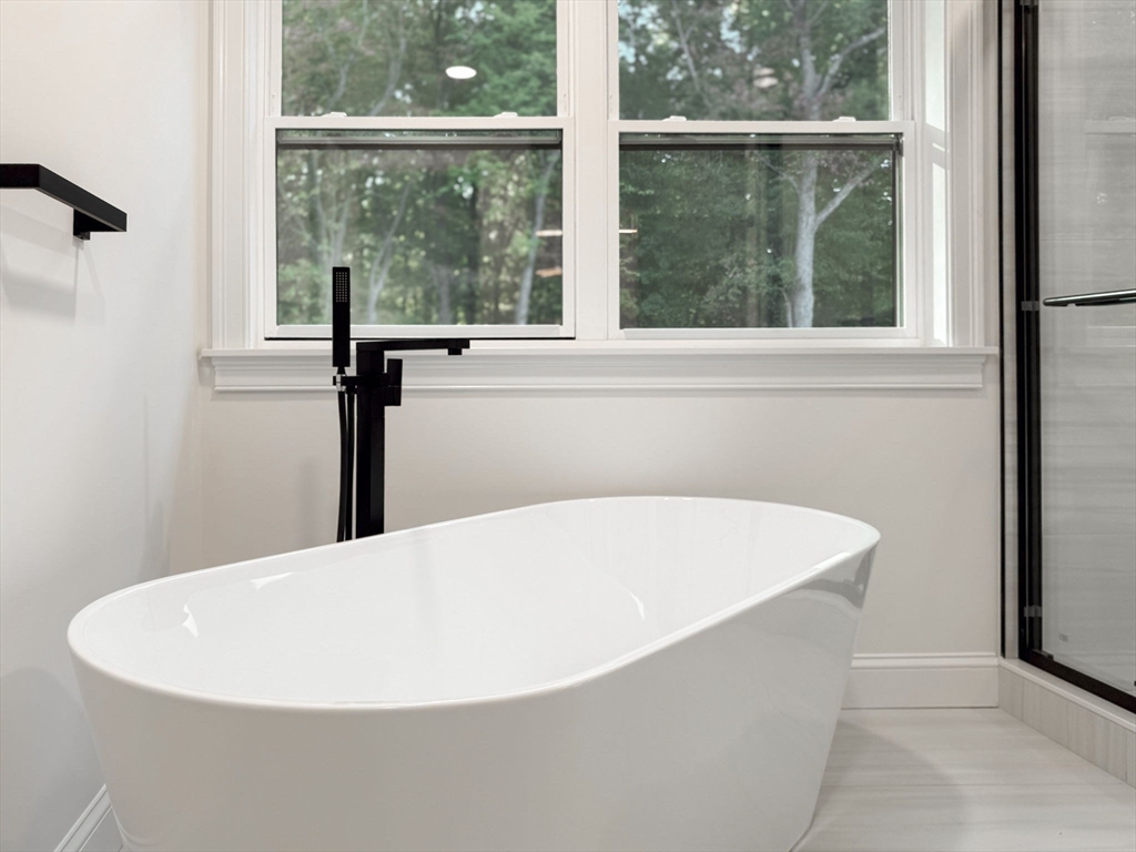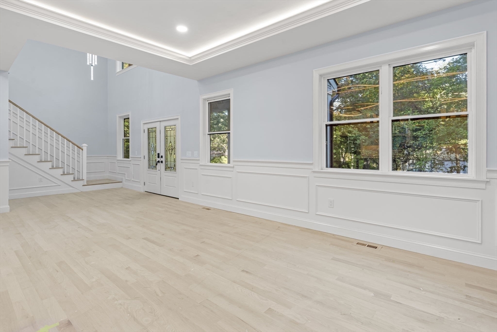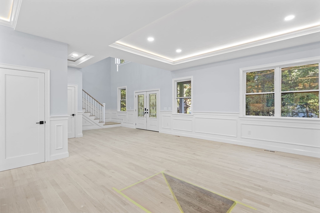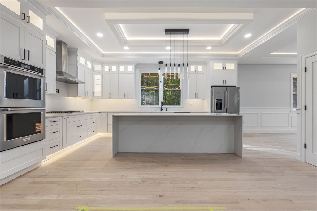 Sophisticated new Colonial blending timeless architecture with modern luxury in a premier Bedford location. Featuring 4BR, 4.5BA, and three statement fireplaces gracing the living room, dining room, and dramatic two-story foyer, this home radiates warmth and refinement. The chef’s kitchen showcases an oversized island, designer cabinetry, and custom lighting that flows into a spacious family room. A first-floor ensuite offers flexibility, while the primary suite impresses with a spa-inspired bath and dual walk-in closets. Outdoor living is equally remarkable with two stone patios, a full kitchen, and lush landscaping. With its distinctive stone façade, curated finishes, and proximity to top schools, shops, dining, and major routes, this residence defines elegant suburban living with easy access to Boston.