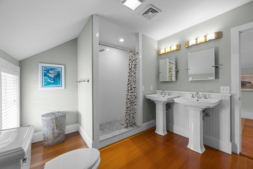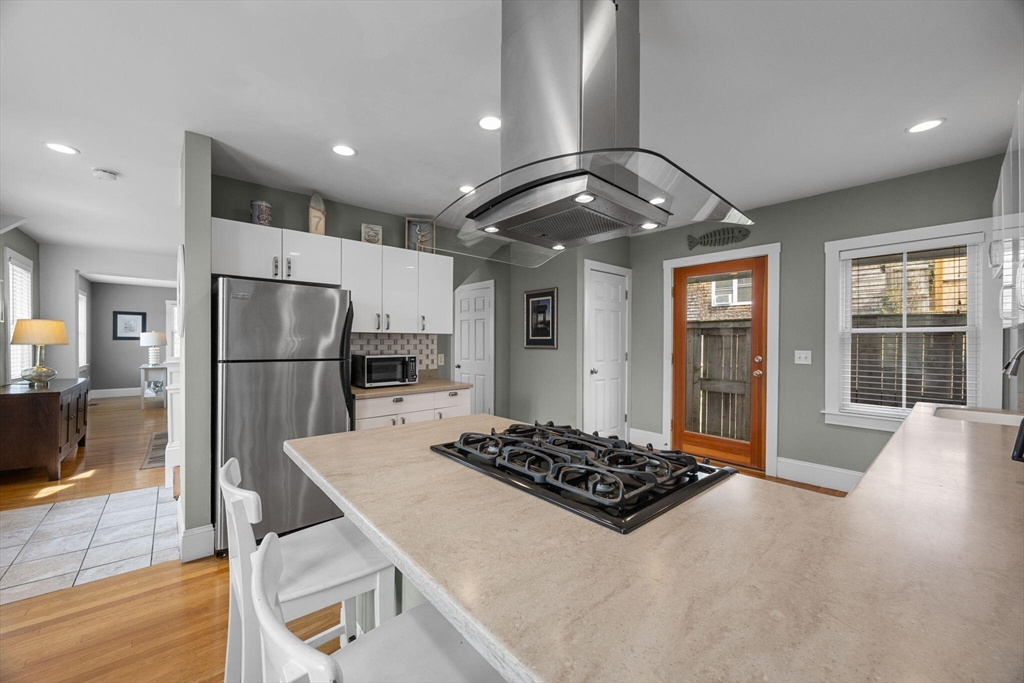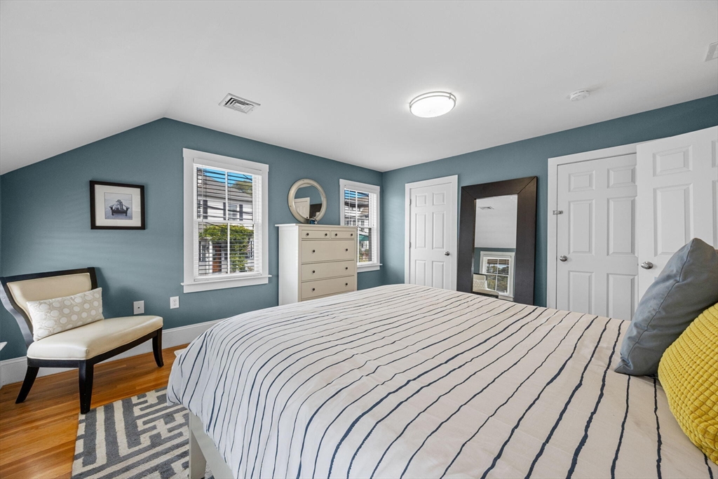 Spacious, sunny, and just moments from Provincetown’s vibrant center, this nearly 1,600 sq. ft. townhouse offers style, comfort, and strong rental appeal. A private, sunlit deck shaded by a classic arbor welcomes you inside to an open-concept living and dining area with hardwood floors and high ceilings. The kitchen features propane cooking, abundant cabinetry, a peninsula for casual dining, and a dry bar with extra storage. Upstairs, the primary suite includes a walk-in closet and tiled bath, while the guest bedroom and bonus area provide flexible space for work or relaxation. With private outdoor storage, basement storage, pet-friendly policies, and weekly rentals allowed, this home blends in-town convenience with year-round livability.