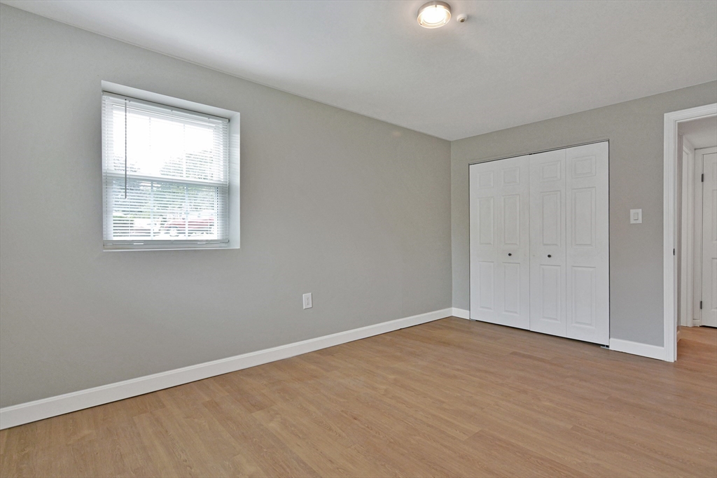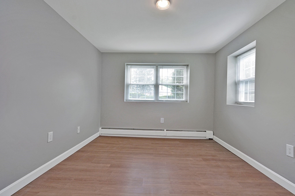 Do you need one level living and need to avoid stairs? Largest 2 bed, 1 bath end unit conveniently located near parking and stair-free walkway. This renovated unit offers a new custom eat in kitchen with white shaker cabinets, under cabinet lighting, new appliances & extended quartz counters. The spacious living room opens to a private patio perfect for dining al fresco or even a little gardening. The bedrooms are spacious, bright with new overhead lighting. The tiled bathroom features a new vanity, lighting & mirror. New lighting fixtures, window treatments, luxury vinyl flooring and painted throughout this unit offers single level living at its best. Laundry is conveniently located right outside unit. Heat, gas cooking, hot water/water/sewer included. Open & ample parking available for residents & guests. Complete application for every occupant 18+. Credit report/background check fee of $50 per applicant. No Smoking. Pets considered for a well referenced tenant. Short term considered