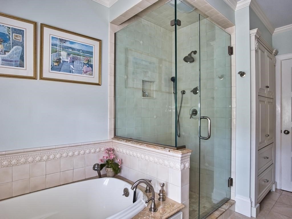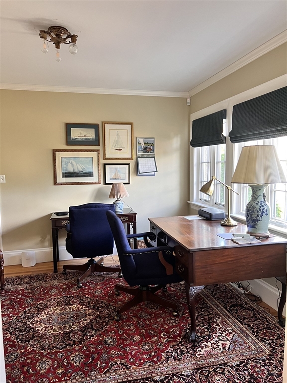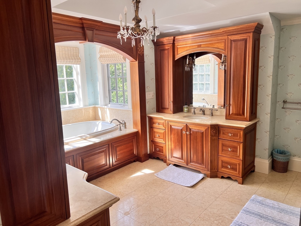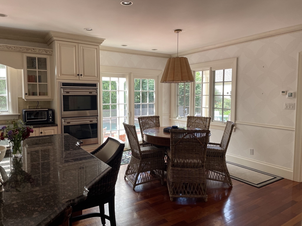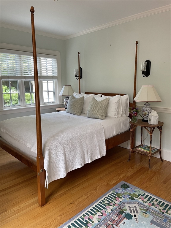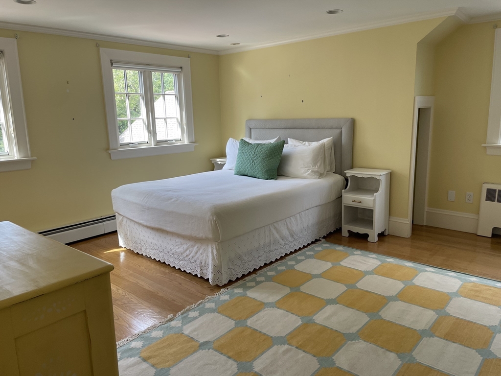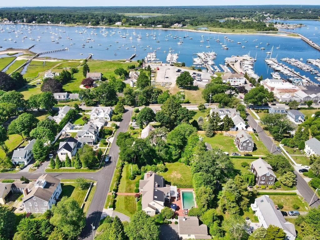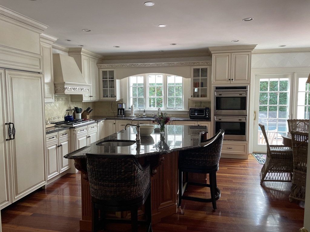 Located just one block from the New Bedford Yacht Club, this spacious and beautifully furnished home offers a rare opportunity to enjoy the off-season in the heart of Padanaram Village. Privately set behind stone walls and a picket fence, the property features professionally landscaped grounds and generous outdoor living spaces. Inside, the home offers a fireplaced living room, den, formal dining room, and a cathedral-ceilinged family room with a second fireplace. The open kitchen features a large island and casual dining area, all flowing out to a pergola-shaded brick terrace overlooking a private backyard and heated pool.The primary suite includes a fireplace, accent lighting, and a luxurious bath with soaking tub. Three additional bedrooms, gleaming hardwood floors, crown moldings, and wainscoting highlight the quality throughout. The finished lower level includes a playroom with fireplace, full bath. Just a short stroll to the harbor, shops, restaurants, and market.