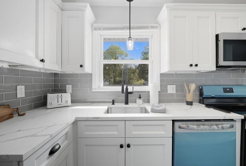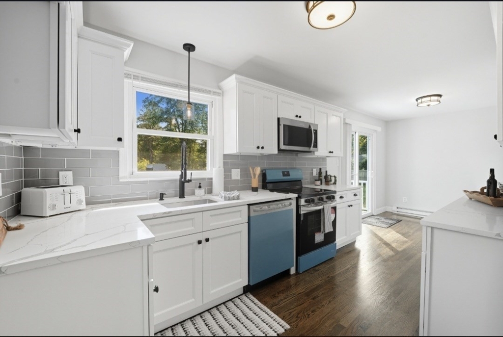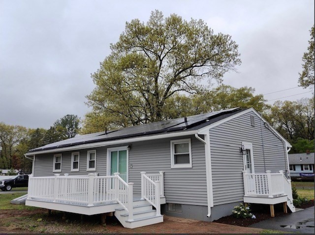 HIGHEST AND BEST OFFERS DUE BY FRIDAY OCTOBER 17 12:00 PM. Like NEW NEW NEW Pristine Adorable 3 or 4 bedroom Ranch with two full baths and a finished basement on a nice lot in Wilbraham. Beautiful NEW kitchen with quartz counters, all wood stylish white cabinets, stainless steel microwave, stove and dishwasher with sliders to NEW deck overlooking the NEWLY fenced in yard. NEW bathrooms with Kohler fixtures, marble floors and tile showers! Gorgeous NEW hardwood floors throughout. There are 4 bedrooms with nice size closets or use one room as an office! Finished basement for added space! New septic system! Town Water. Installed solar system which provides significant savings. THIS HOUSE IS LIKE A NEW HOME! Meticulously completed. It will not last! Schedule your showings today!