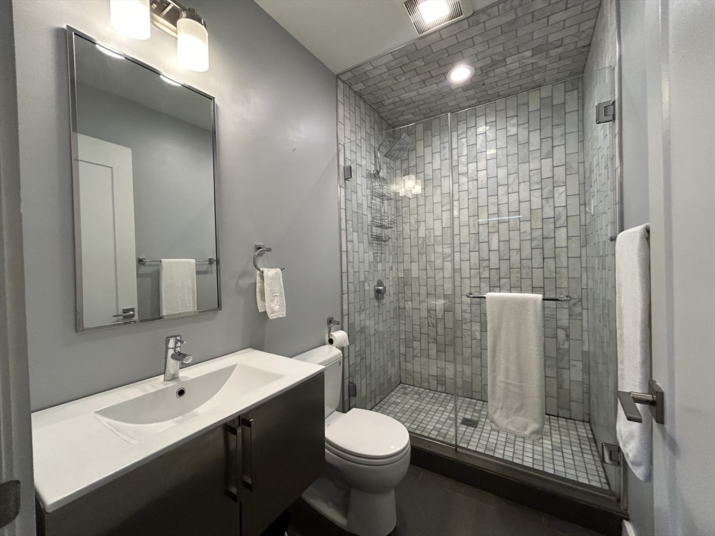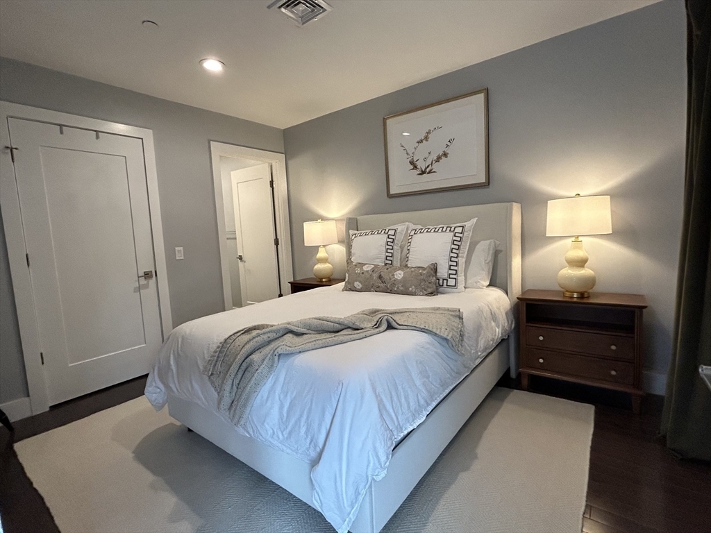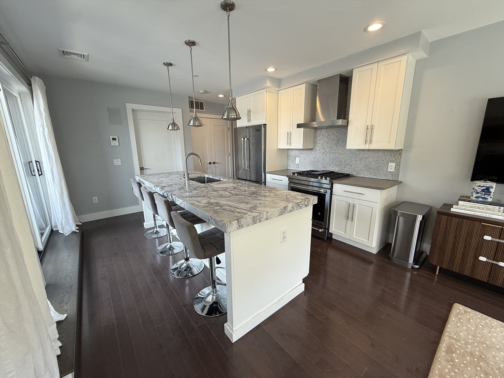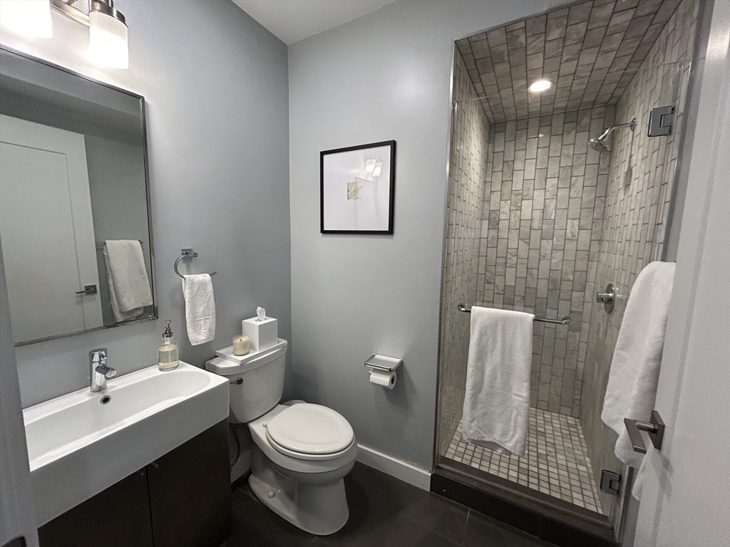 Rarely available sun-drenched corner condo in the desirable 2018-built 150 West Broadway. This modern 2 bed, 2 bath unit features an open-concept kitchen and living area with white shaker cabinets, quartz countertops, and Jenn-Air stainless steel appliances. The primary suite includes an en-suite bath and large closet, while the spacious second bedroom is perfect for an additional bedroom or a home office. Additional features include in-unit laundry, central air, elevator access, and a covered balcony exclusive to the unit, along with access to a large common roof deck with a shared grill. Unbeatable location just two blocks from the Broadway T Stop, close to the Seaport and South End. One garage parking space available. Available 12/1/2025.