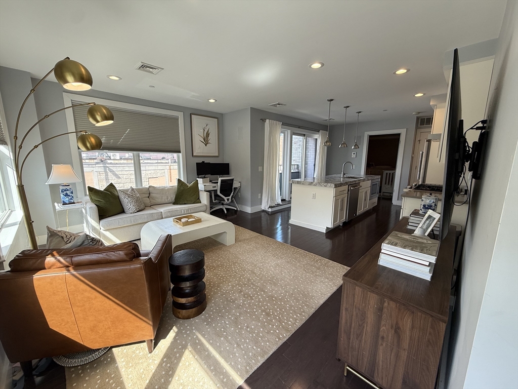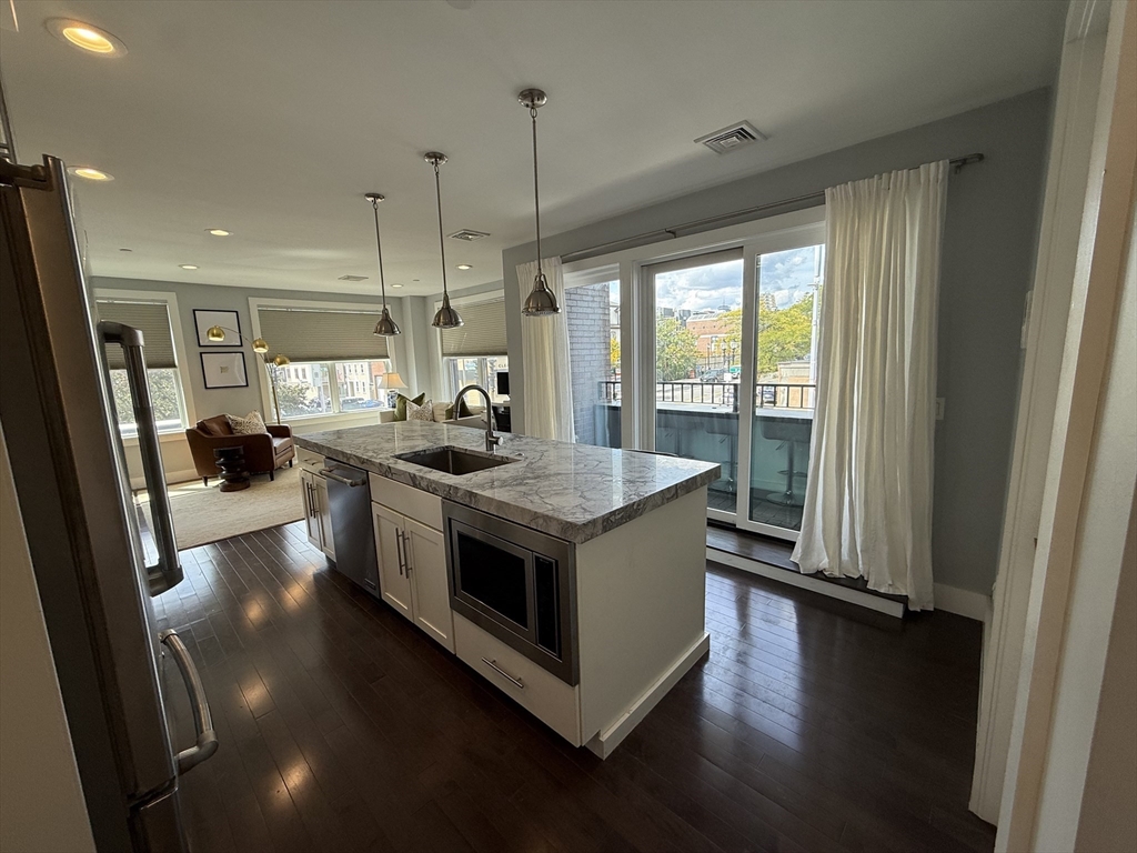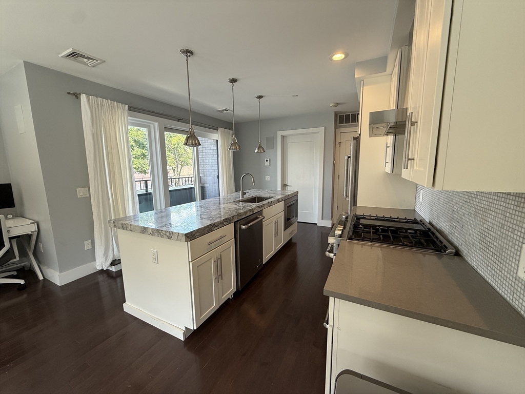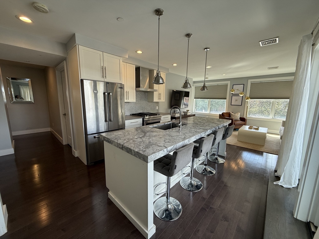 Rarely available sun-drenched corner condo in the desirable 2018-built 150 West Broadway. This modern 2 bed, 2 bath unit features an open-concept kitchen and living area with white shaker cabinets, quartz countertops, and Jenn-Air stainless steel appliances. The primary suite includes an en-suite bath and large closet, while the spacious second bedroom is perfect for an additional bedroom or a home office. Additional features include in-unit laundry, central air, elevator access, and a covered balcony exclusive to the unit, along with access to a large common roof deck with a shared grill. Unbeatable location just two blocks from the Broadway T Stop, close to the Seaport and South End. One garage parking space available. Available 12/1/2025.