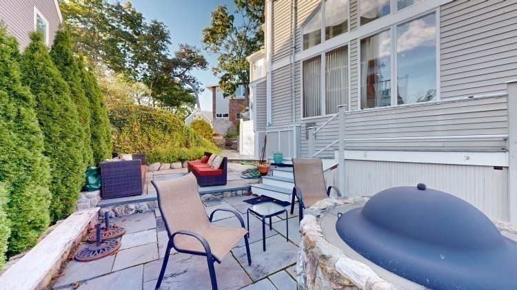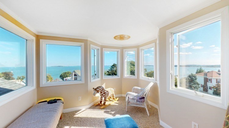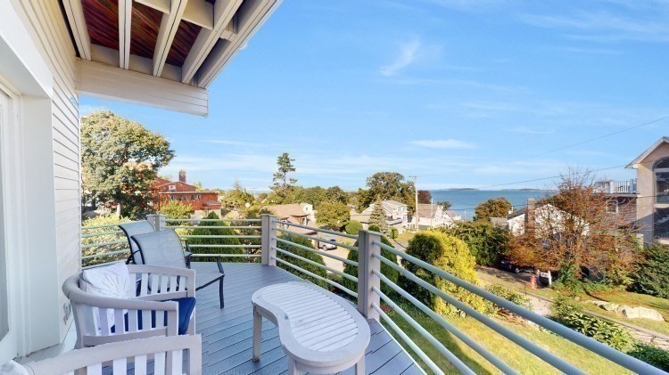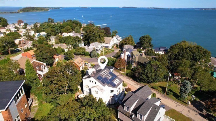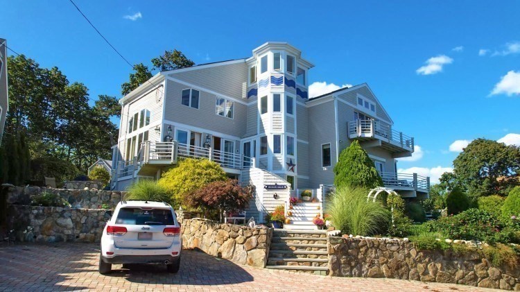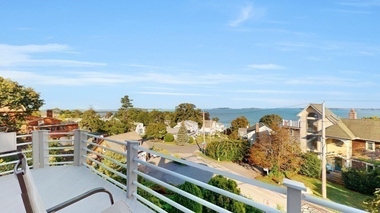 Welcome to Squantum's Seaside Escape! You've been searching for a home that breaks out of the traditional colonial mold and at last you've found it! This stunning contemporary, custom-built home has so many intriguing details it will be difficult to fit them all in this description. Sitting atop one of the highest points in the exquisite neighborhood of Squantum, you'll marvel at the panoramic ocean/bay views from your 3 huge wrap around balconies. The interior boasts 5 fireplaces, 4 bedrooms, 4.5 bathrooms and a giant 3rd floor bonus room! This home was custom built with loving attention to every detail. Throughout you'll find recessed lighting, cathedral and beamed ceilings and skylights. The office even has skylights!. The kitchen features a sub-zero refrigerator and island with cooktop.Solar panels offset 48% of electric bill. Multi-leveled flagstone patio off the kitchen, featuring large gas-fired, built-in stone fire pit. No need to take a vacation when you live in paradise!