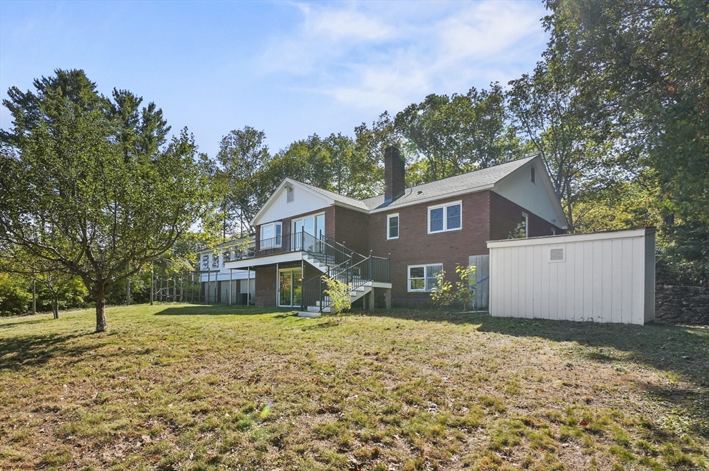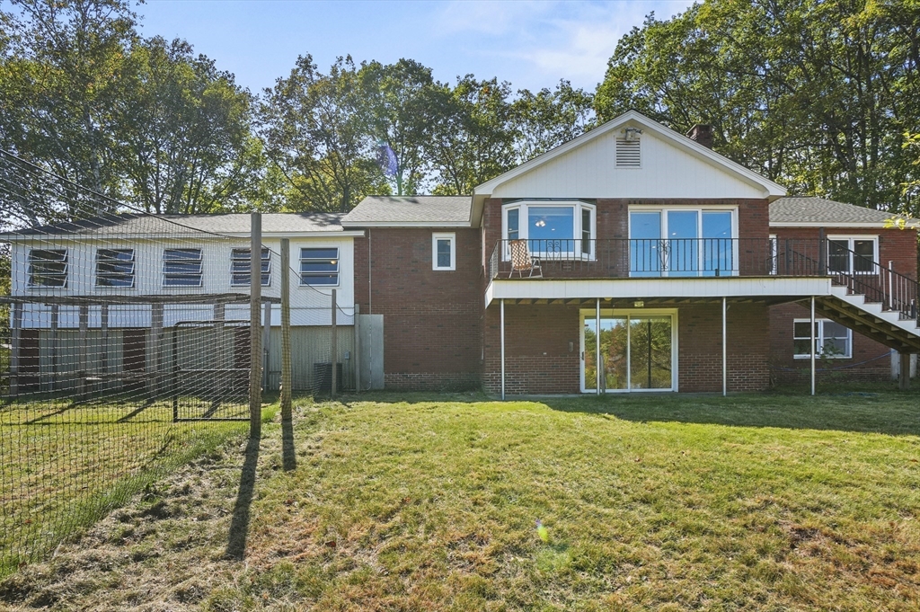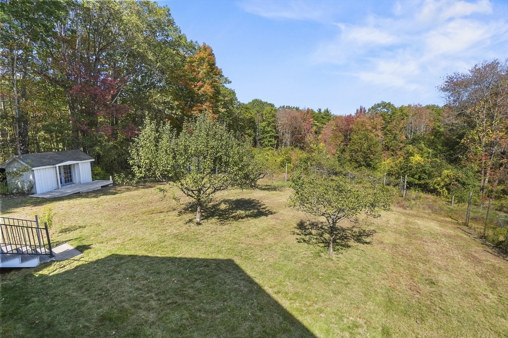 Welcome to this charming ranch-style home nestled on over 3 acres of picturesque land. Enter to a spacious formal living & dining area, filled w/ natural light through a large picture window. A comfortable den w/ fireplace & sliding glass doors opens to your back deck. The kitchen boasts a farmhouse sink & a dining area w/ a bay window overlooking your vast backyard. This home offers a convenient laundry room w/ access to a walk-up attic for easy storage. The primary bedroom features recessed lighting, a walk-in closet & a private bath, while two additional bedrooms & a second full bath provide plenty of space for family or guests. Enjoy the bright three-season sunroom or head down to the versatile partially finished walkout lower level, complete w/ a full bath & sauna plus a huge workshop. Outdoors, you’ll find mature apple trees, gardening area plus two electrified sheds. Additional highlights include central air, central vacuum, and the peaceful privacy of your expansive lot.