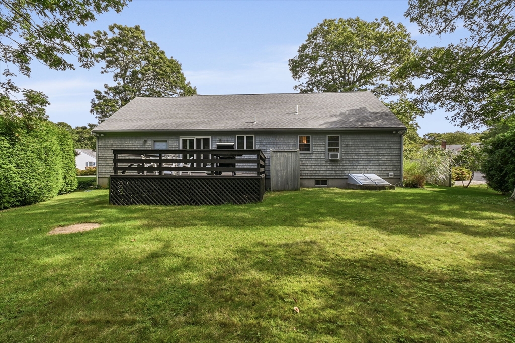 Welcome to Whidah Drive, where you can enjoy the convenience of a central location close to shopping and the tranquility of a quiet, private neighborhood. This charming home, built in 1986 and lovingly maintained by the same family since then, features three bedrooms and two full bathrooms. The kitchen, living, and dining rooms boast vaulted ceilings, creating an open, airy, and bright space. Downstairs, you'll find additional living space with a partially finished basement, offering ample storage and utility space as well. The home features a Humidex humidity control and ventilation system and has conveniently already been connected to town sewer. Step outside to enjoy the private, well-established yard from the back deck complete with irrigation system. After a day at the beach, rinse off in the backyard outdoor shower. This home is ready for your updates and could serve as the perfect Cape house or year-round home.