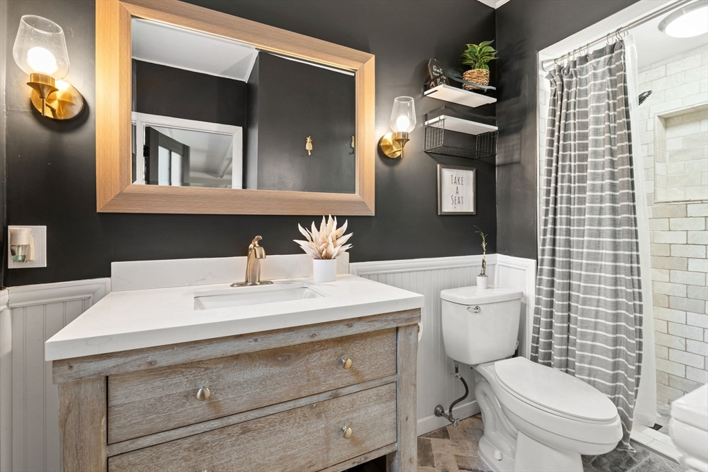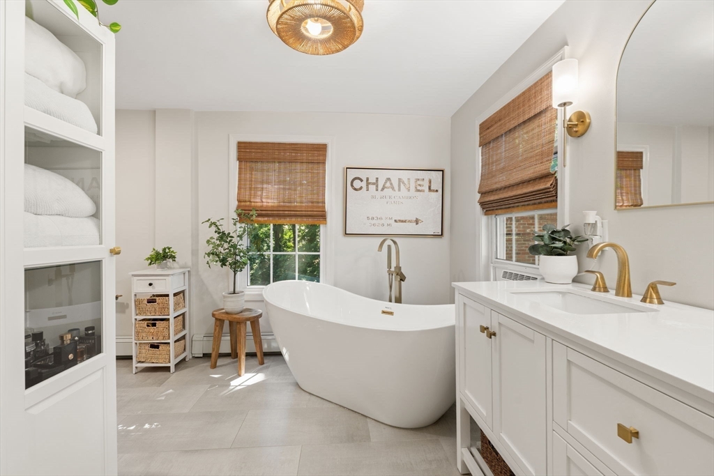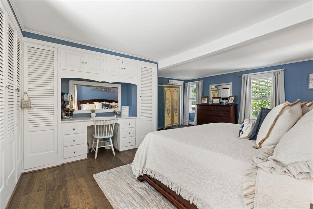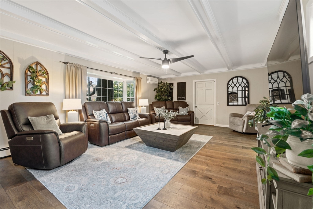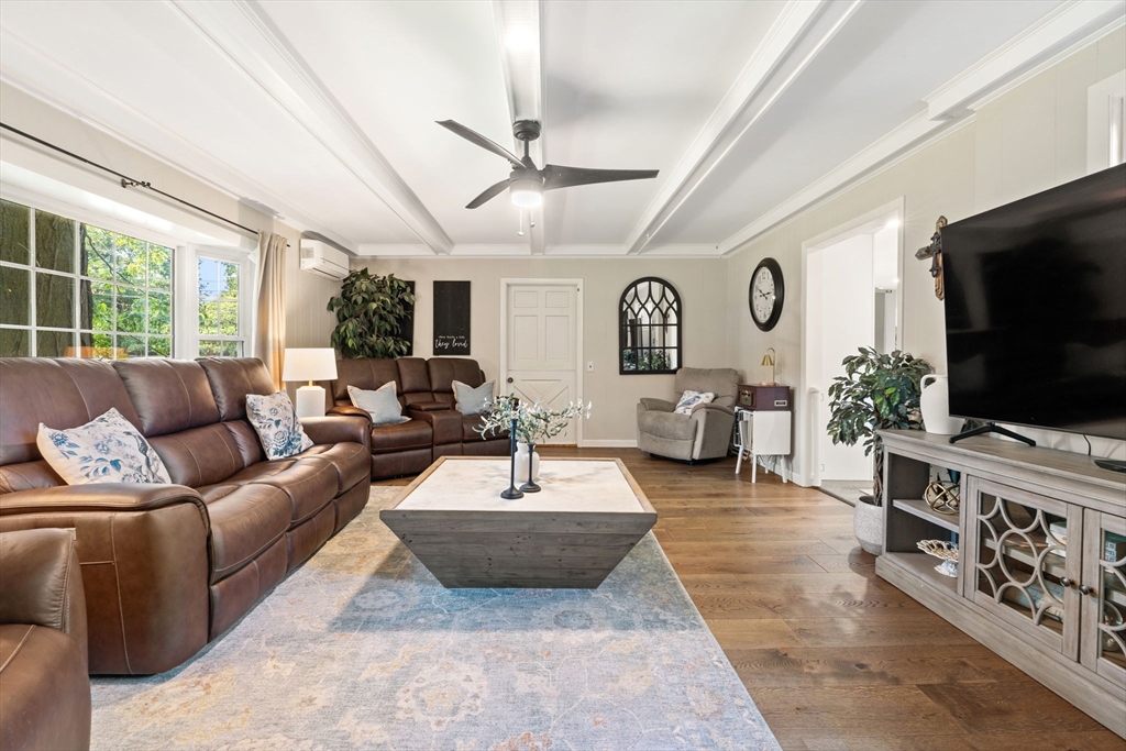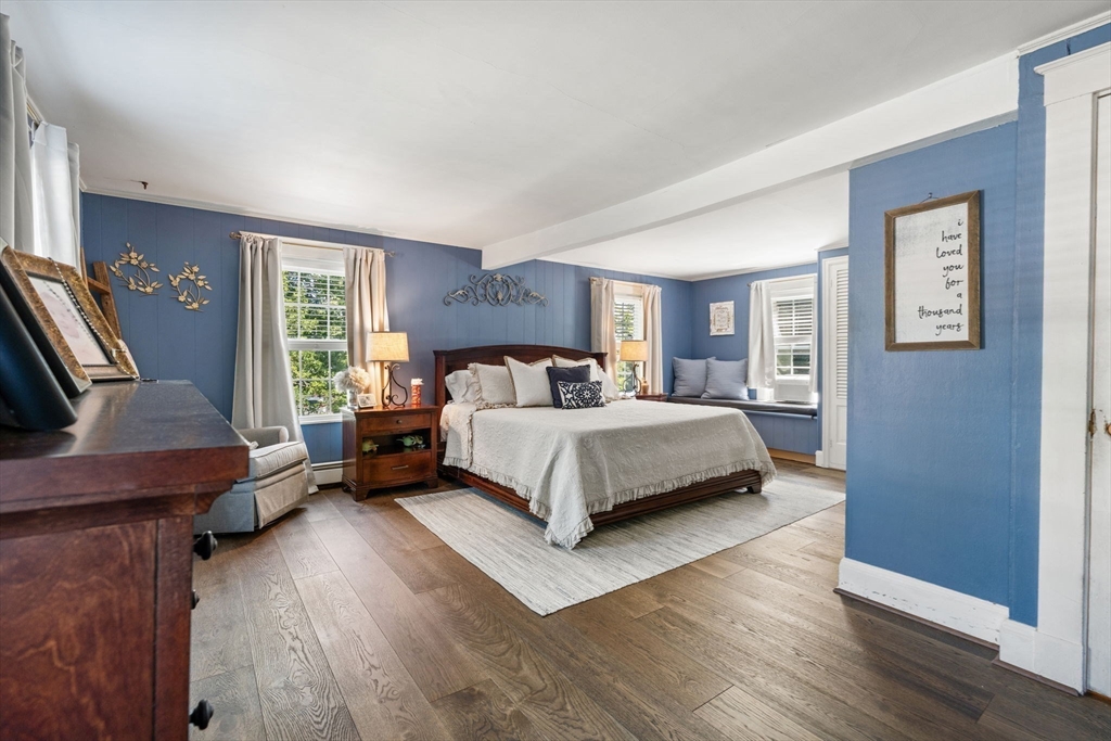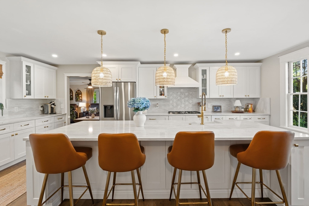 Beautifully maintained and spacious Colonial offering incredible flexibility, including an in-law suite with its own entrance, full kitchen, living room with gas fireplace, bedroom, full bath, and laundry. The main home features four additional bedrooms, two updated baths, a bright living room with pellet stove, and a formal dining room with fireplace. The chef’s kitchen shines with quartzite countertops, stainless steel appliances, gas range, and an oversized island perfect for entertaining. Two sunrooms add light and comfort year round. Upstairs, enjoy a luxurious primary suite with soaking tub, marble walk in shower, and double vanity. Situated on a double lot, the fenced in backyard is your own private oasis—complete with an in ground pool, fire pit, gazebo, and BBQ area—ideal for gatherings or relaxing weekends. Additional highlights include a two-car attached garage, ample parking, and convenient access to shopping, dining, and Routes 128/95